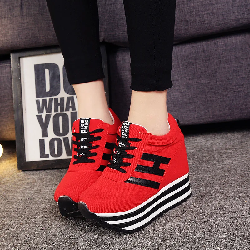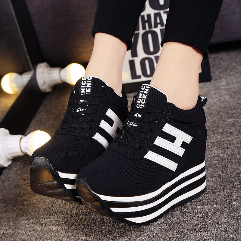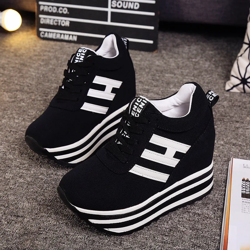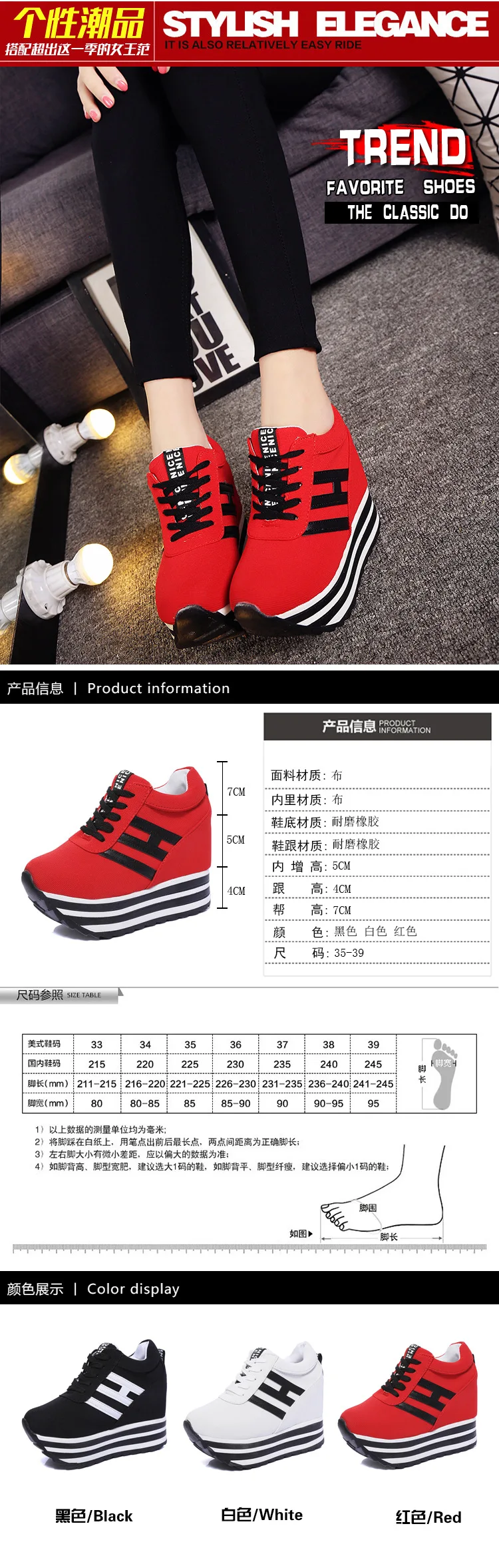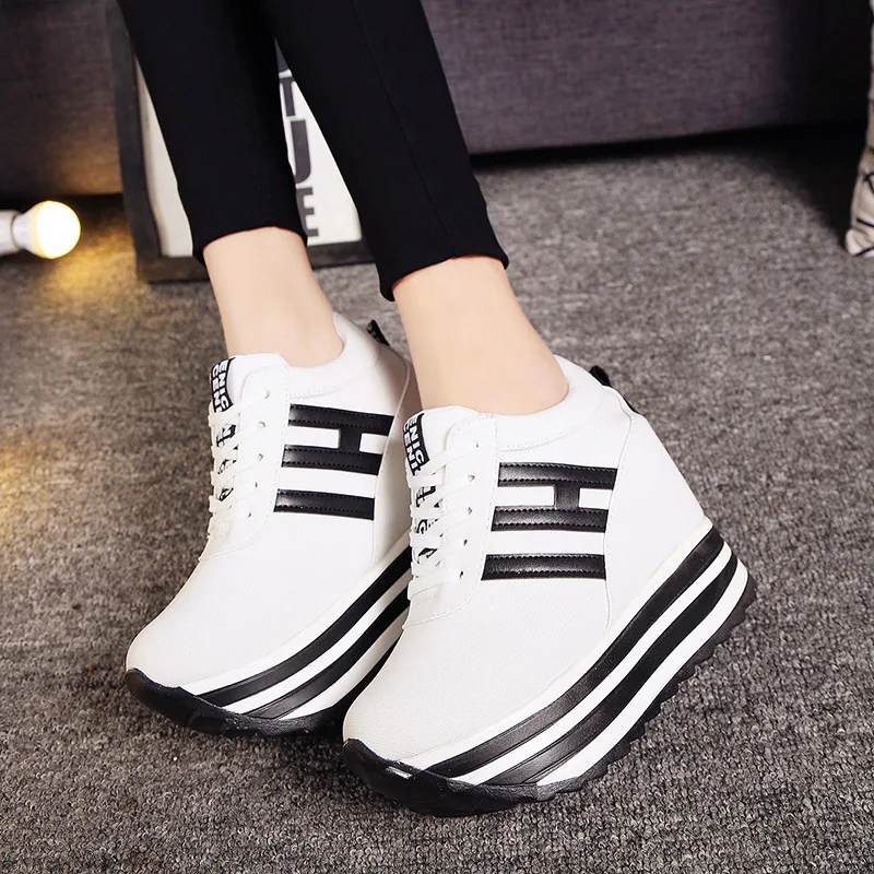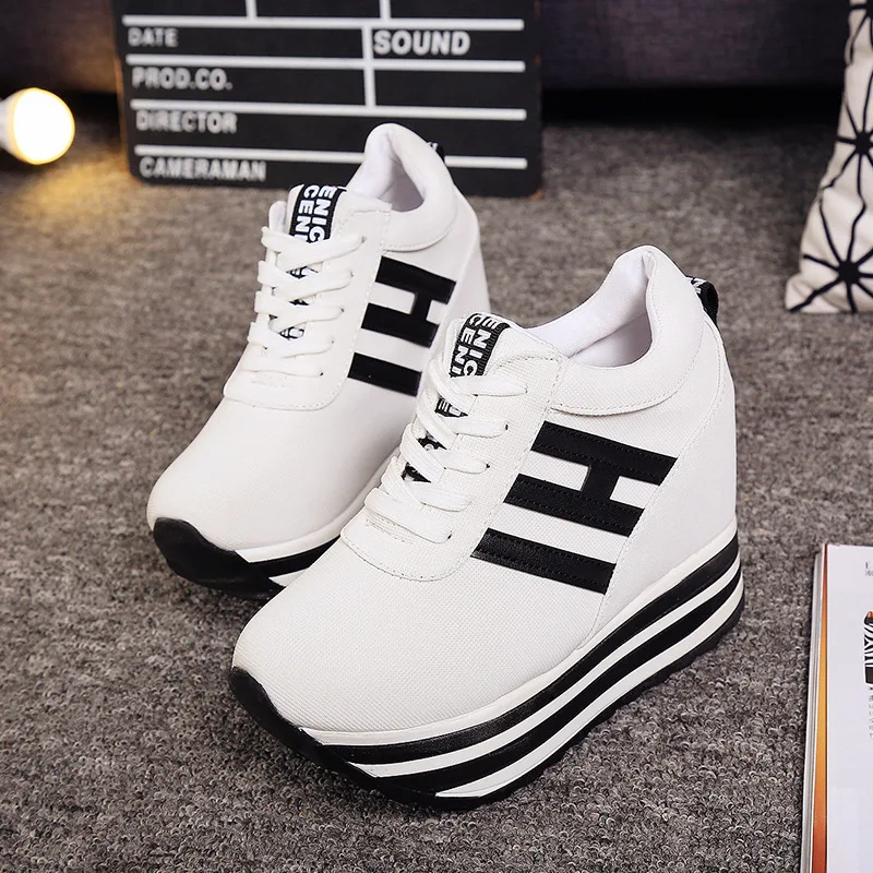 2021 High Flat Platform 9cm Height Increasing Casual Shoes Woman Spring New Hidden Wedge Sneakers Female Vulcanize Shoes