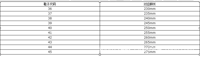 NOTE: Please choose the shoes size according to your foot length or insole length.
