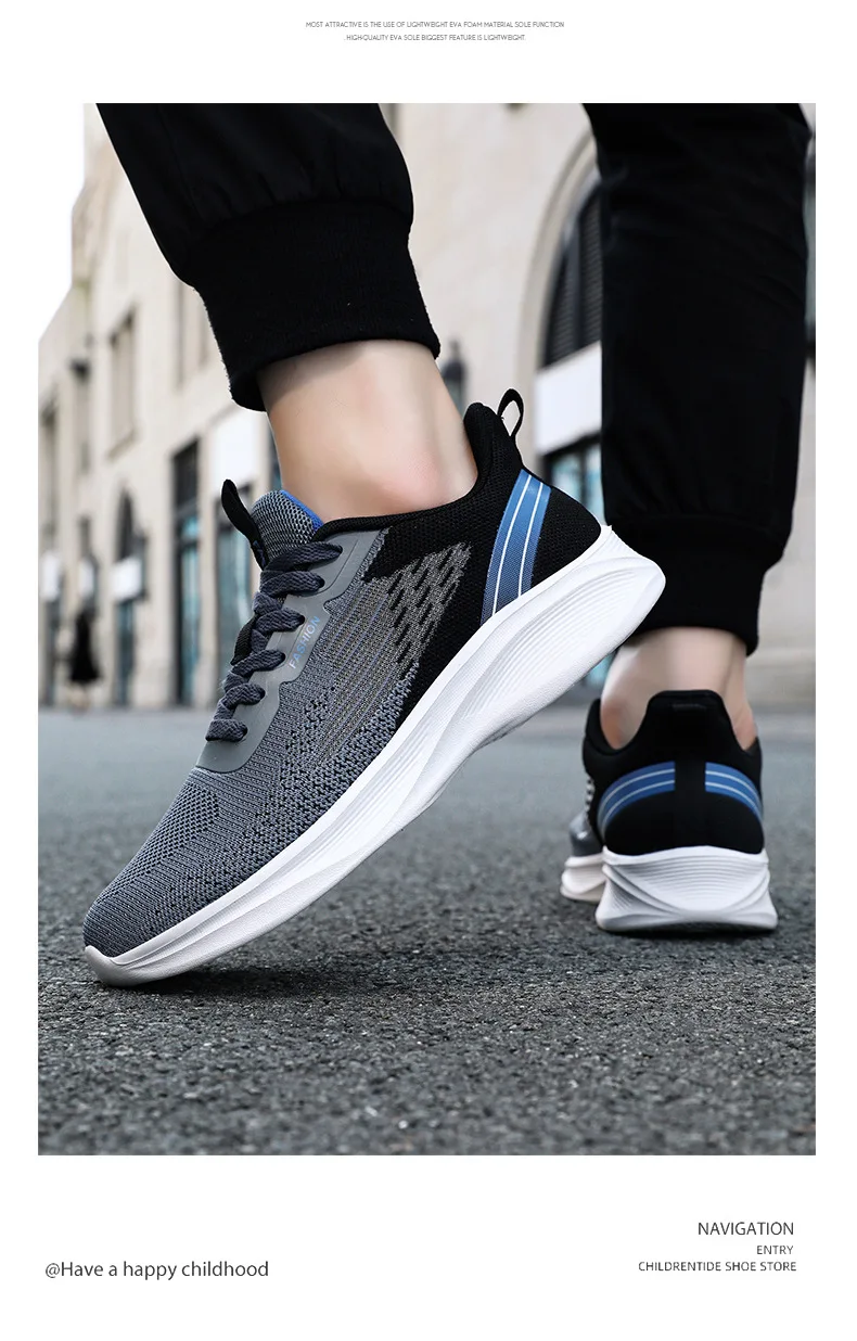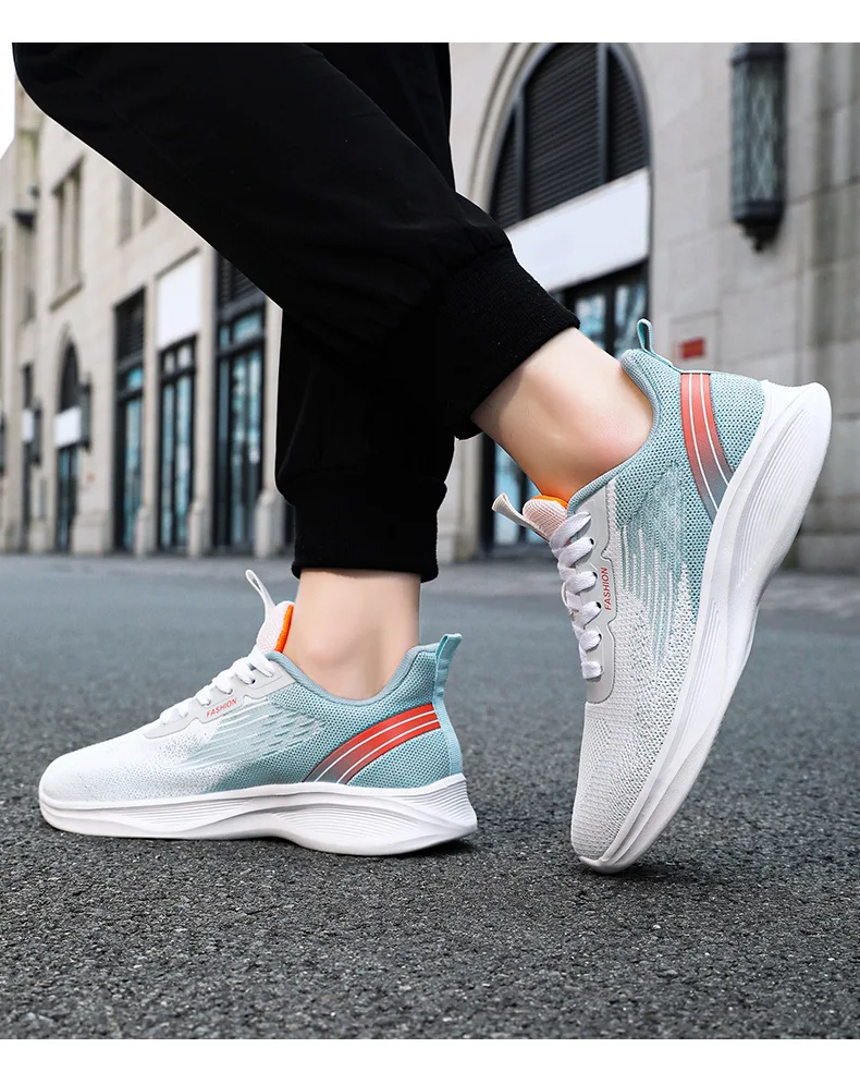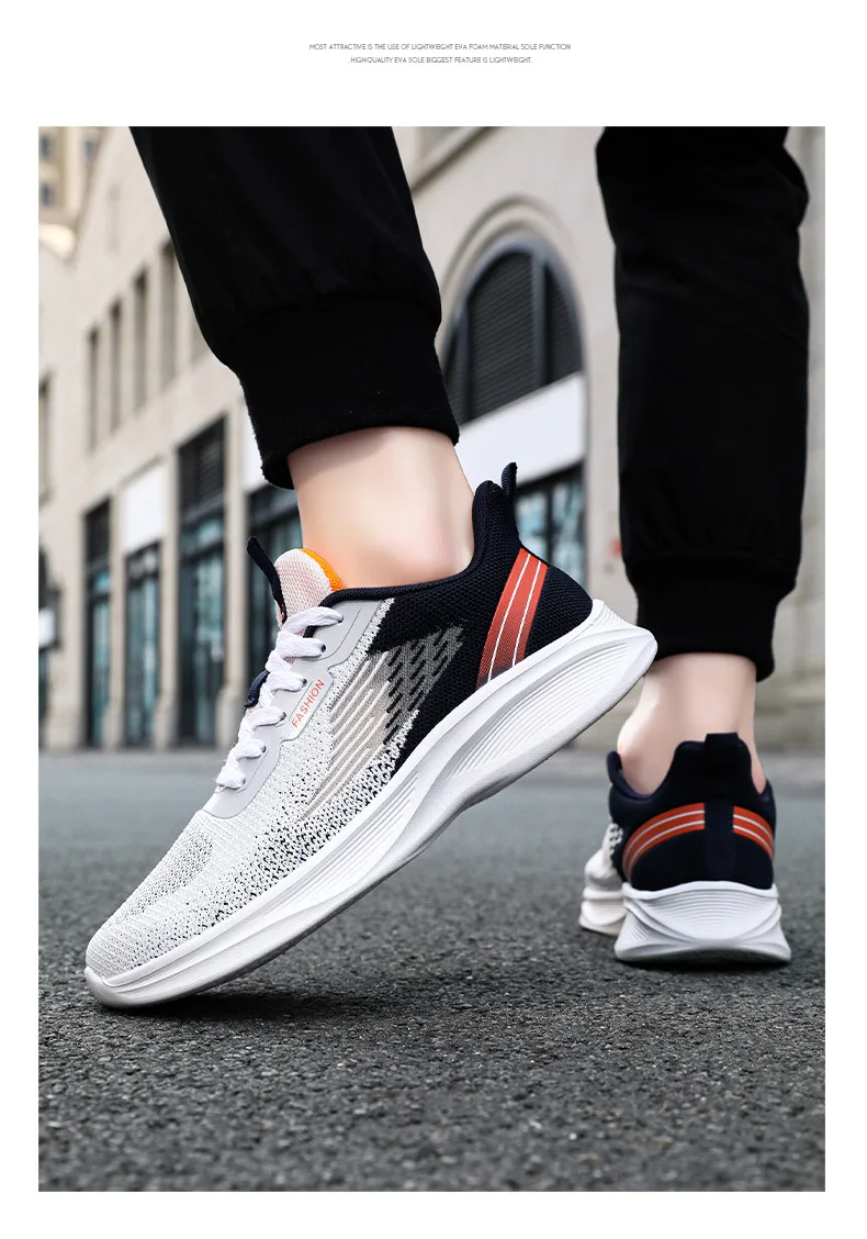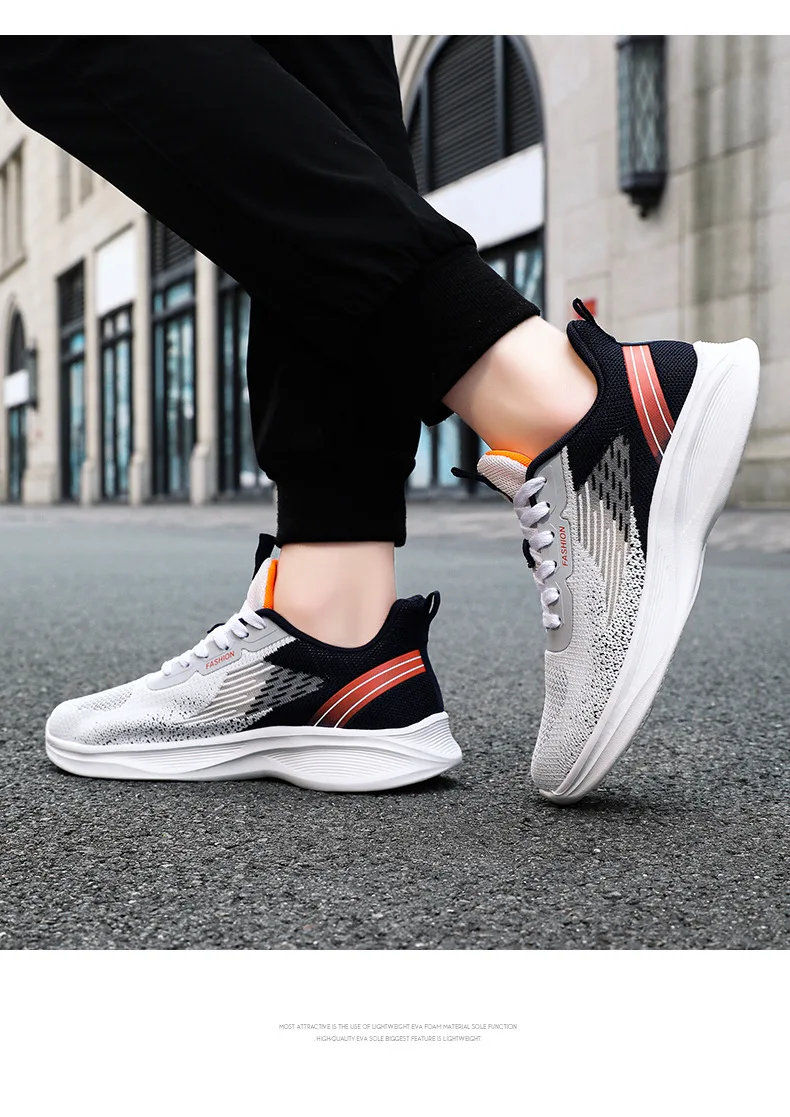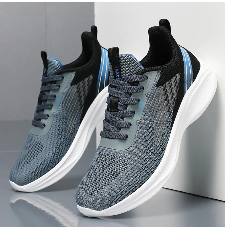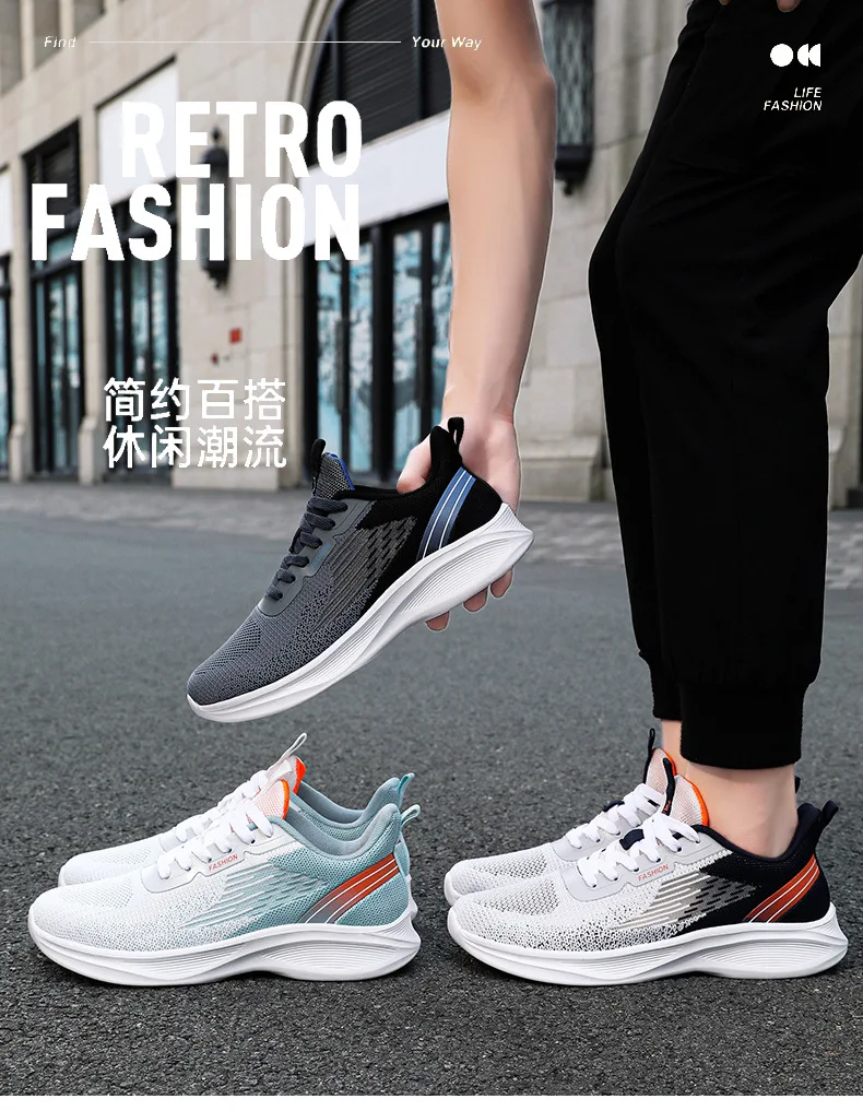 2024 Men's Shoes Spring fashion 2024 lace-up Soft sole sports single shoes flying woven Casual style men's Running shoes sneaker