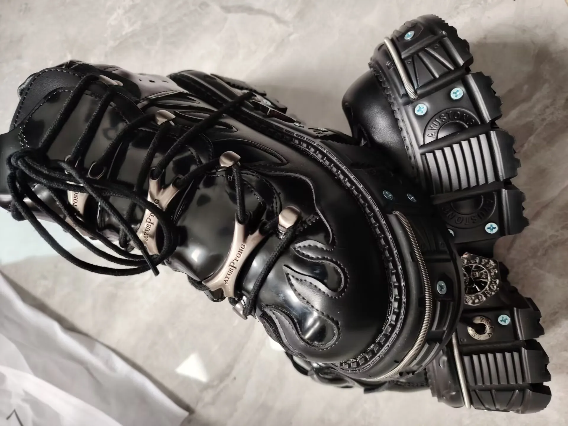 2024 New Retro Spanish Rock Dark Platform Punk Leather Metal Men and Women Same Dad Platform Shoes