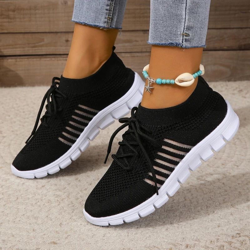 2024 Summer Mesh Casual Shoes Breathable Slip on Lightweight Sports Sneakers Women Lace Up Fashion Comfortable Walking Shoes