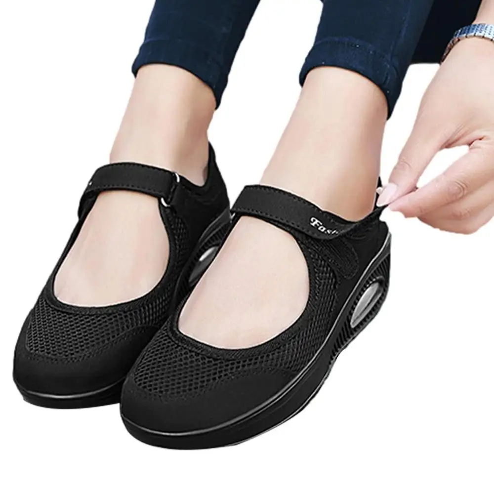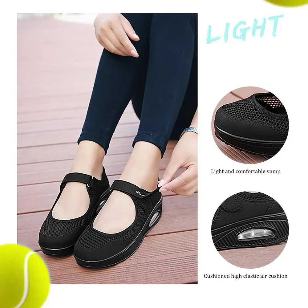 Air Cushion Slip-On Women Walking Shoes Orthopedic Diabetic Ladies Mules Mesh Lightweight Slippers Wedge Female Sneaker