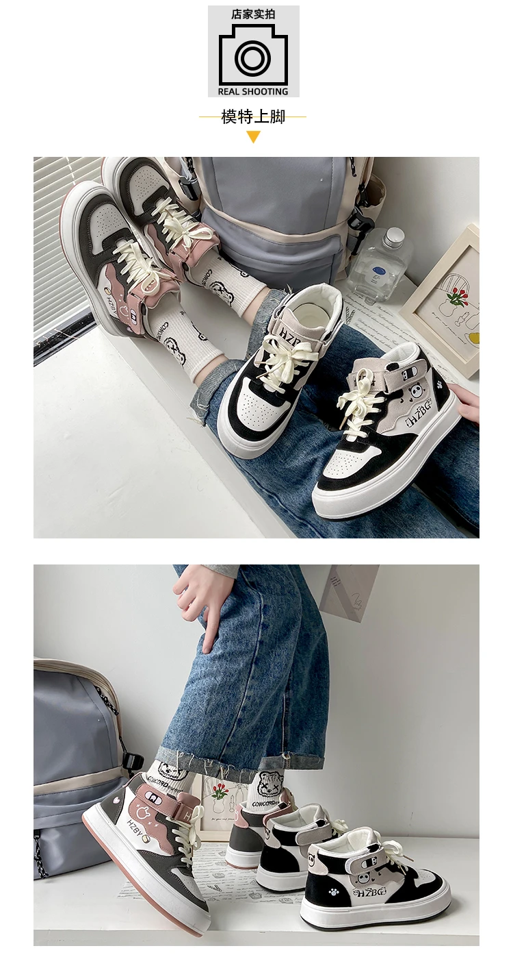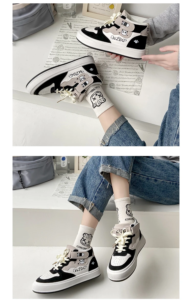 Autumn Winter High Top Sneakers Women Panda Sneakers for Teenage Girls Cute Womens Sports Shoes Kawaii Luxury Trend Ladies Shoes