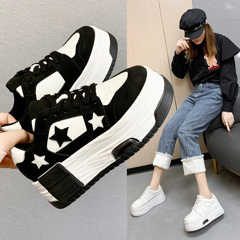 Autumn Women's Casual Platform Sneakers Stars Skateboard Trainers Running Sport Shoes Tennis Shoes Thick-Sole Walking Sneakers