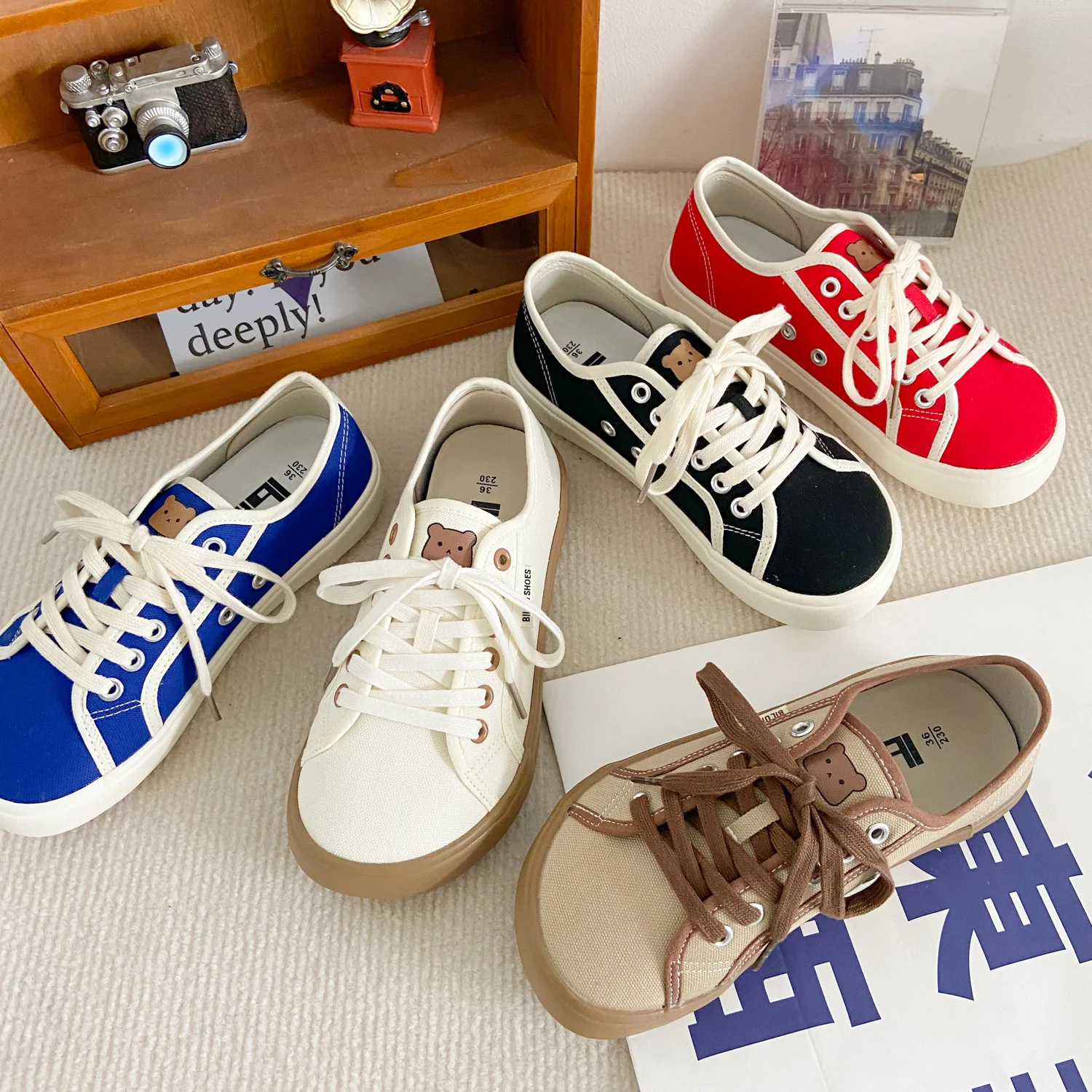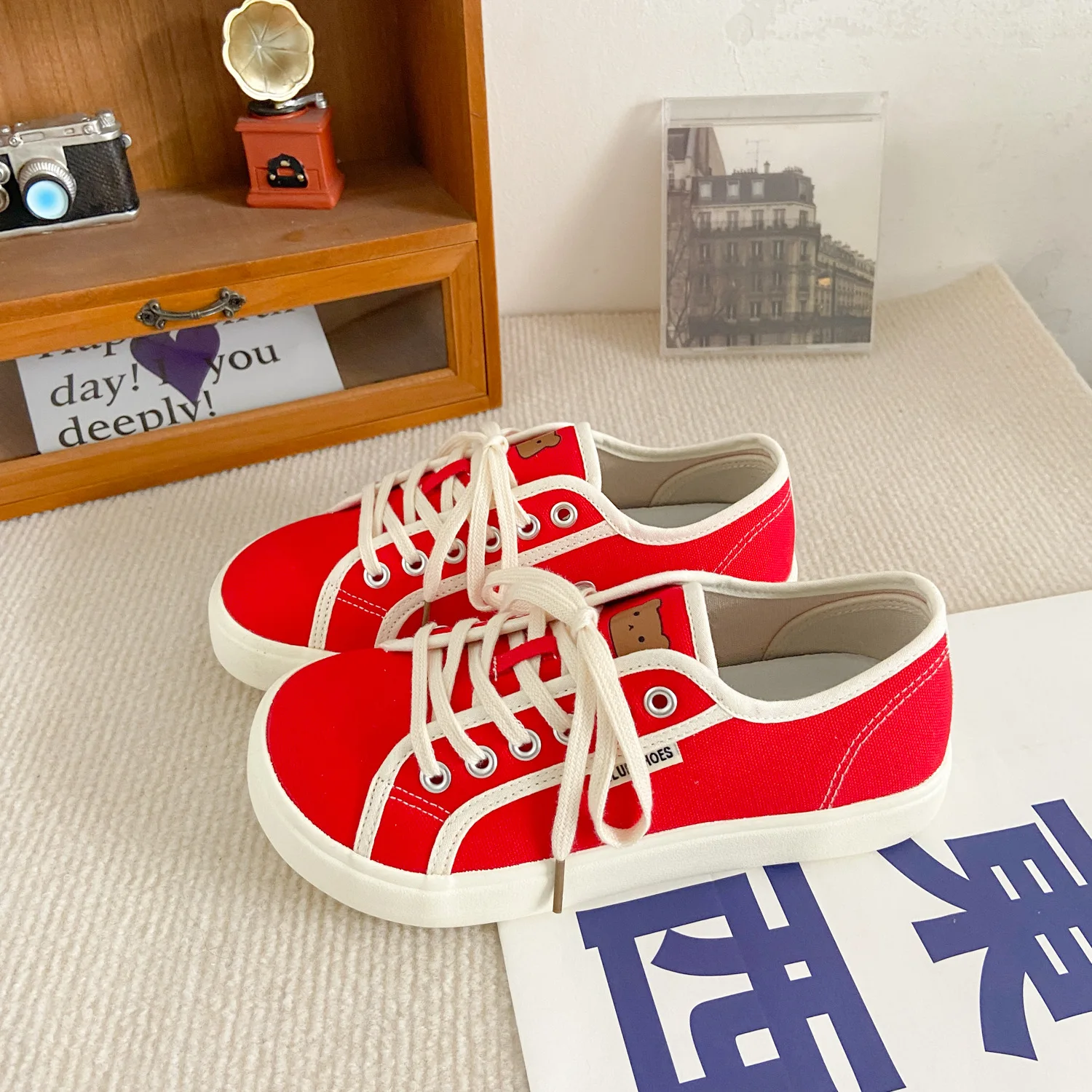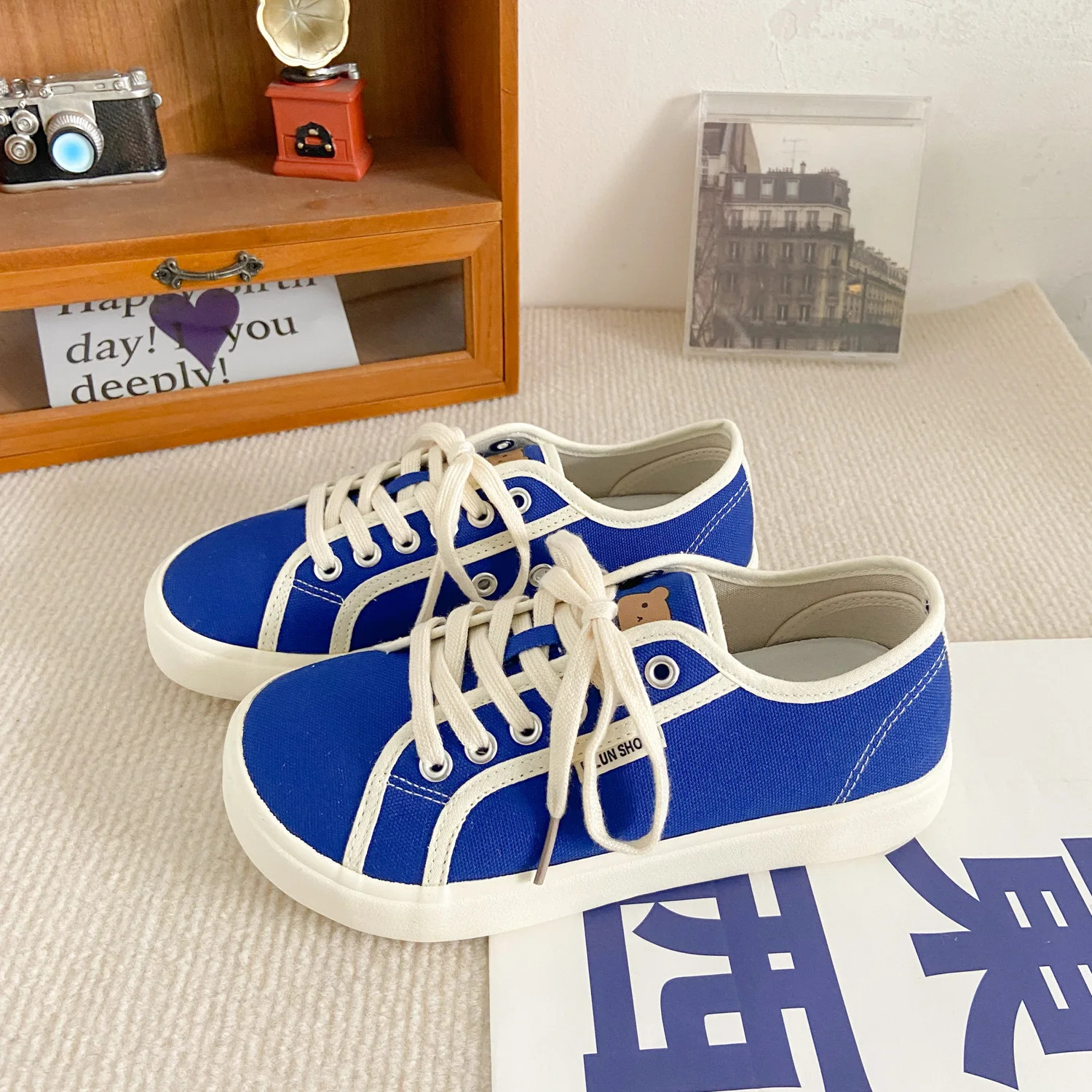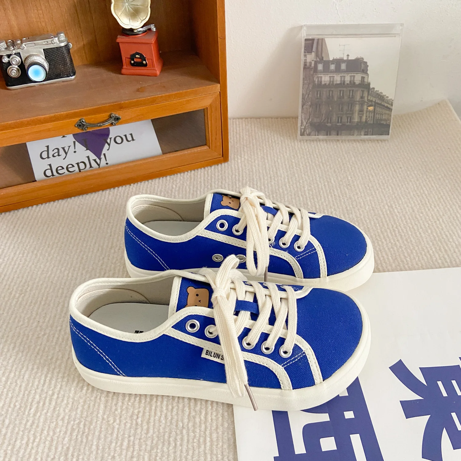 Designer Canvas Shoes Women Low Top Sneakers Wide Toe Lace Up Trainers Shoes Brand Girls Red Blue Sneakers Girls Tenis Plimsolls