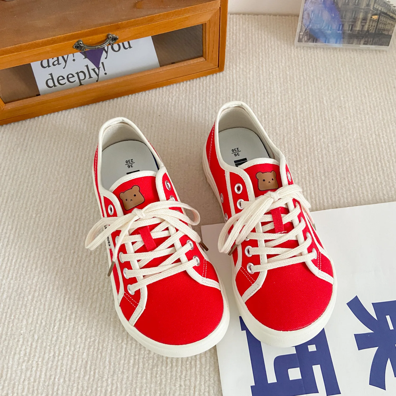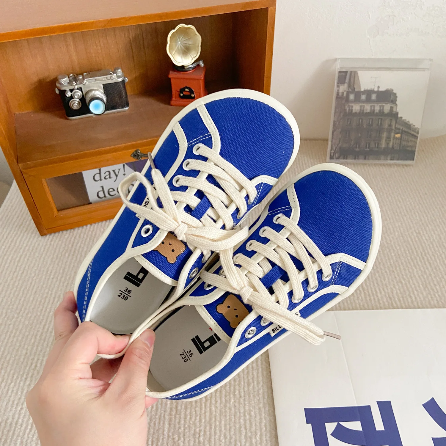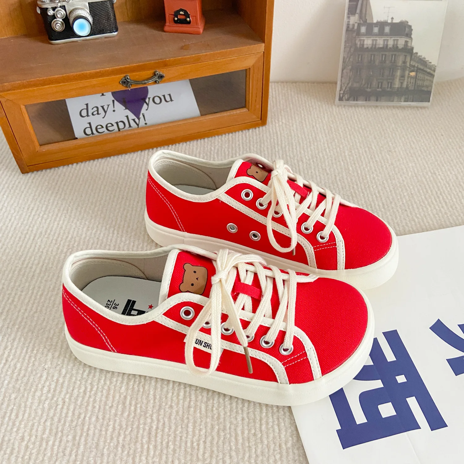 Designer Canvas Shoes Women Low Top Sneakers Wide Toe Lace Up Trainers Shoes Brand Girls Red Blue Sneakers Girls Tenis Plimsolls