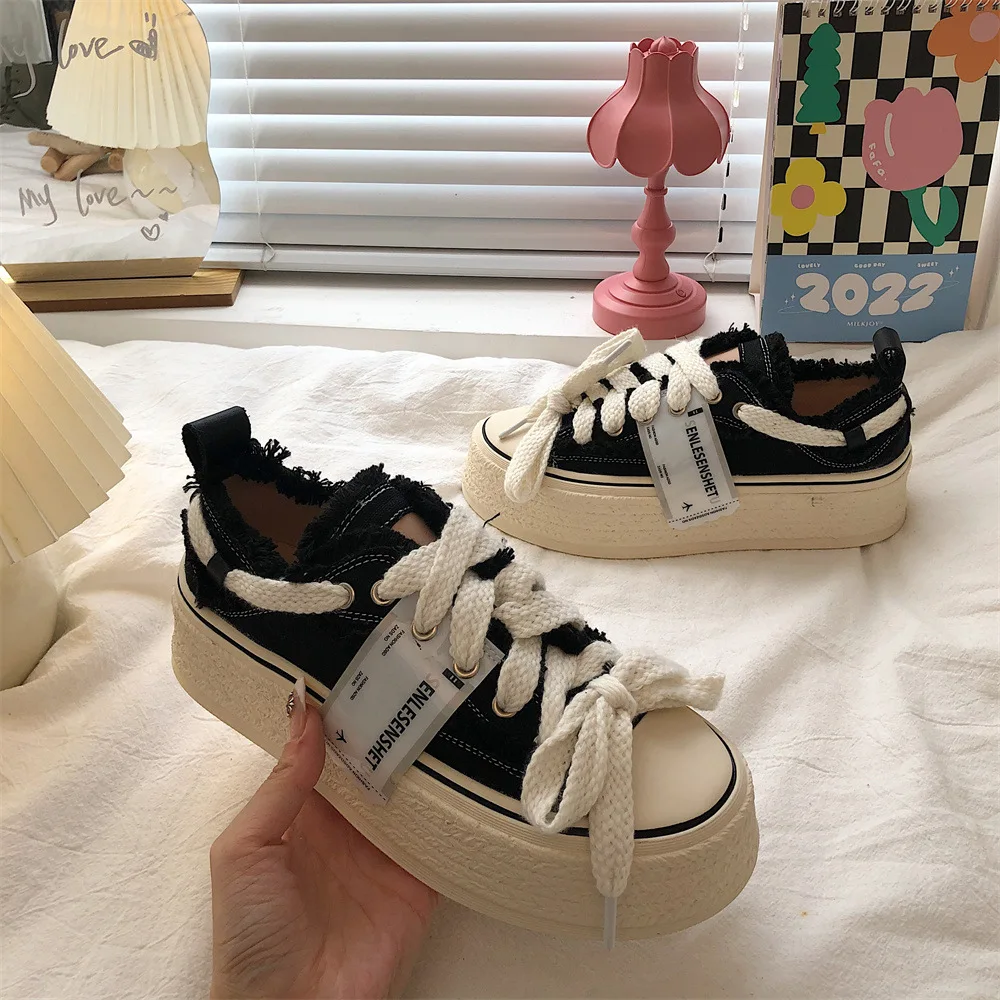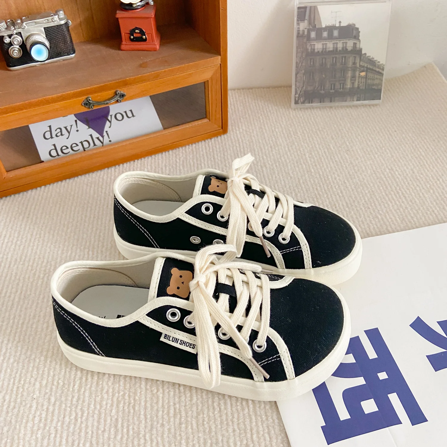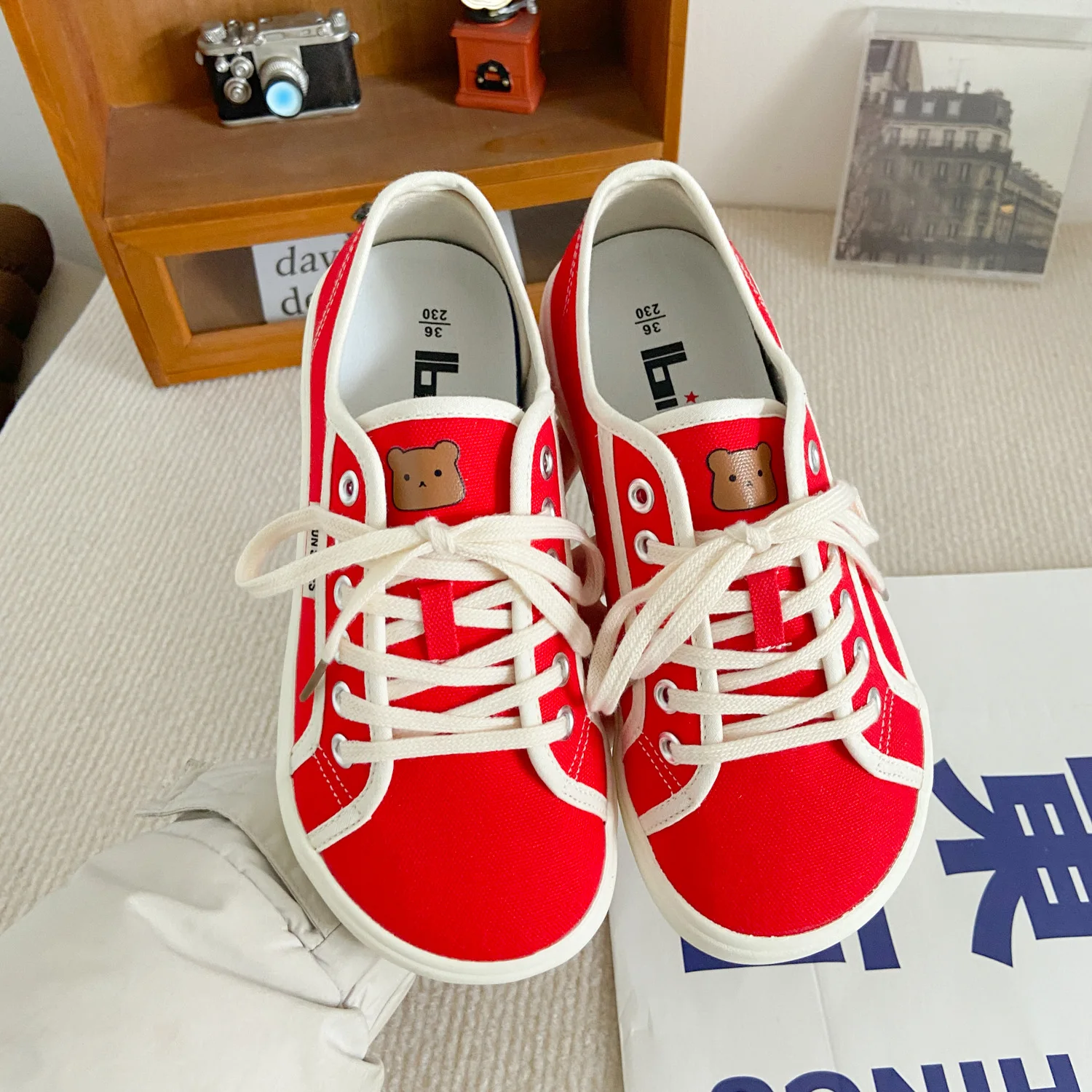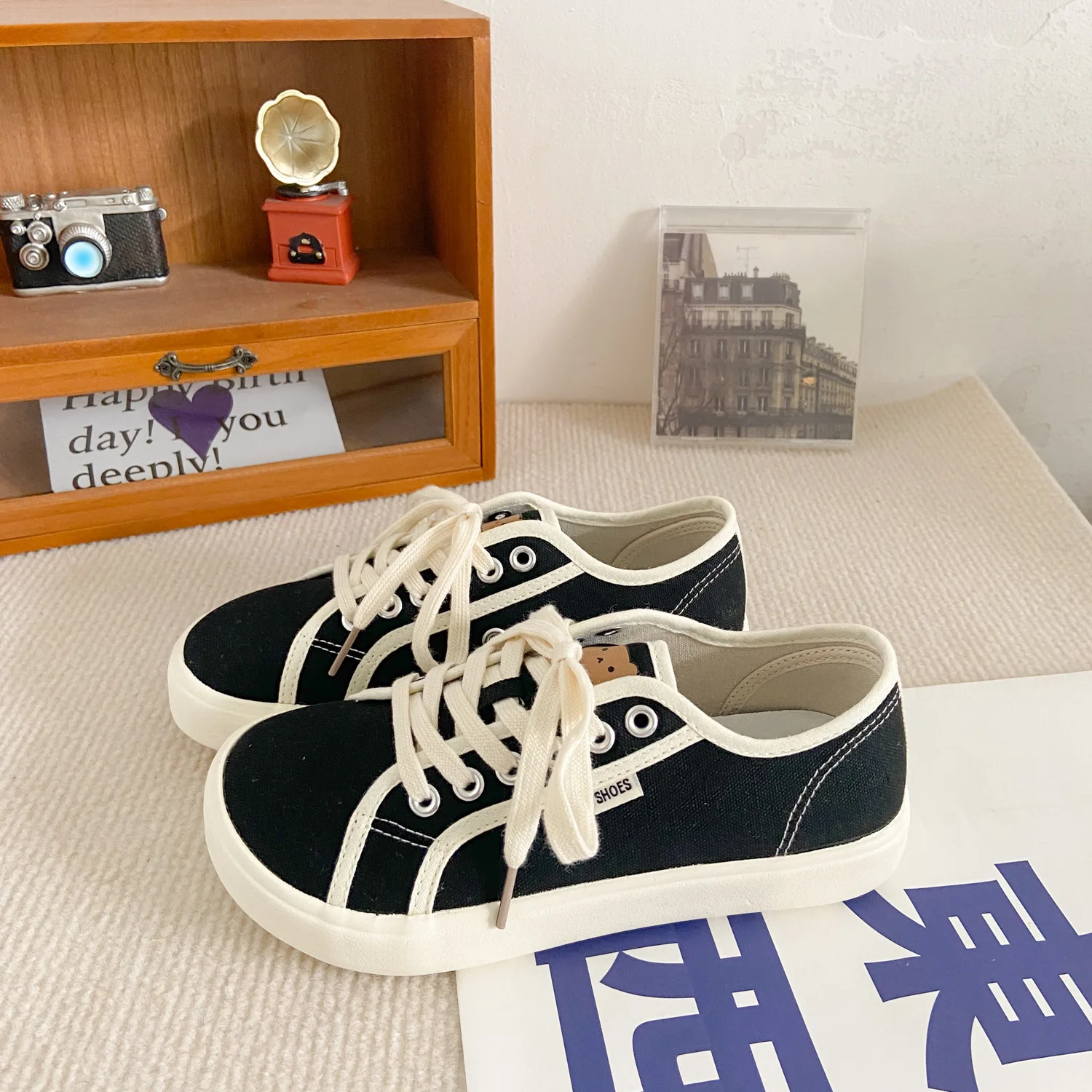 Designer Canvas Shoes Women Low Top Sneakers Wide Toe Lace Up Trainers Shoes Brand Girls Red Blue Sneakers Girls Tenis Plimsolls