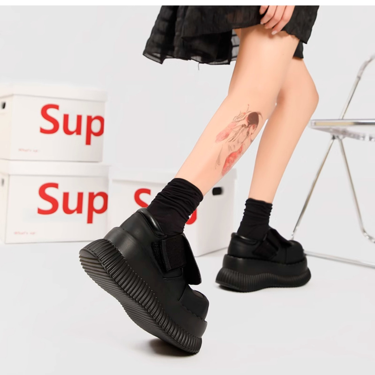 Dopamine Japanese Leather Female Millennium Hot Girl Y2g Muffin Big Head Small Man Raise the Bottom Mary Jane Shoes