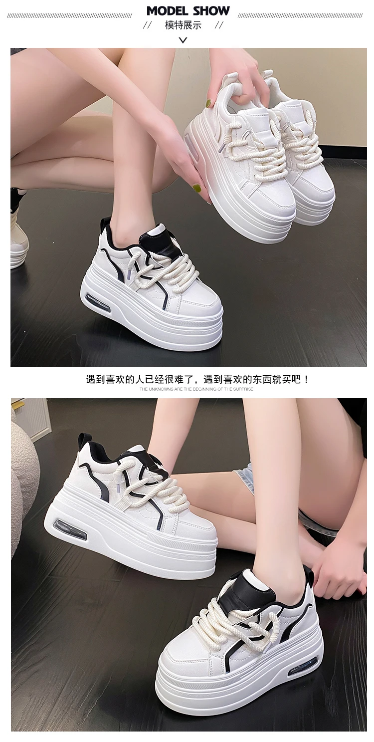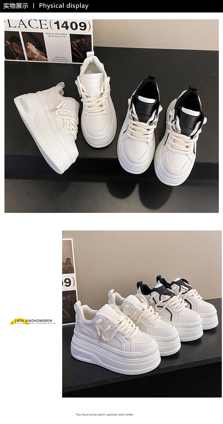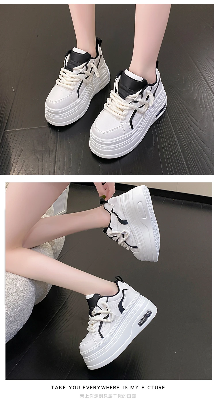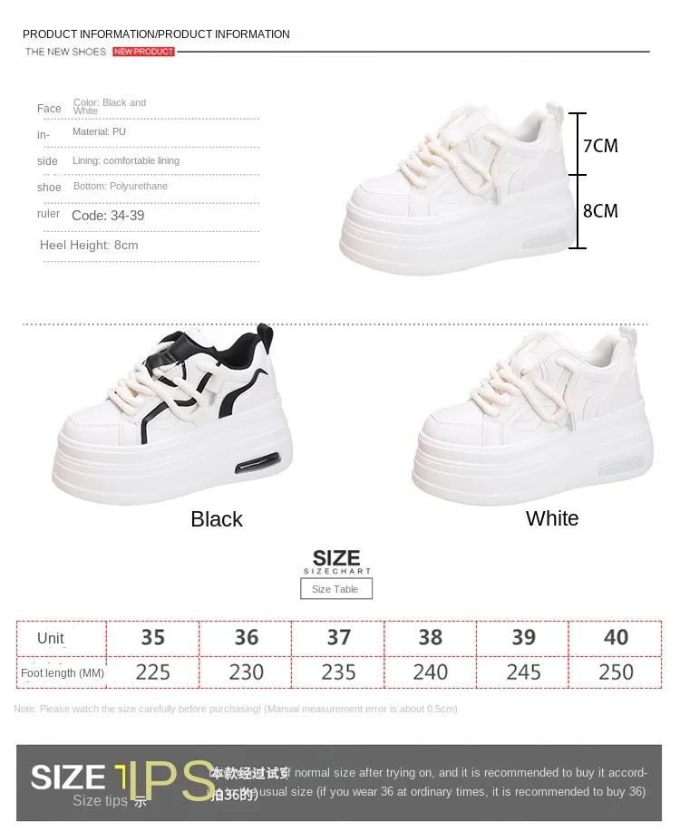 Fashion Tide Platform Sneakers Women Spring Autumn Round Toe Lace-up Comfort 8CM Thick Bottom Sport Shoe Black White Casual Shoe