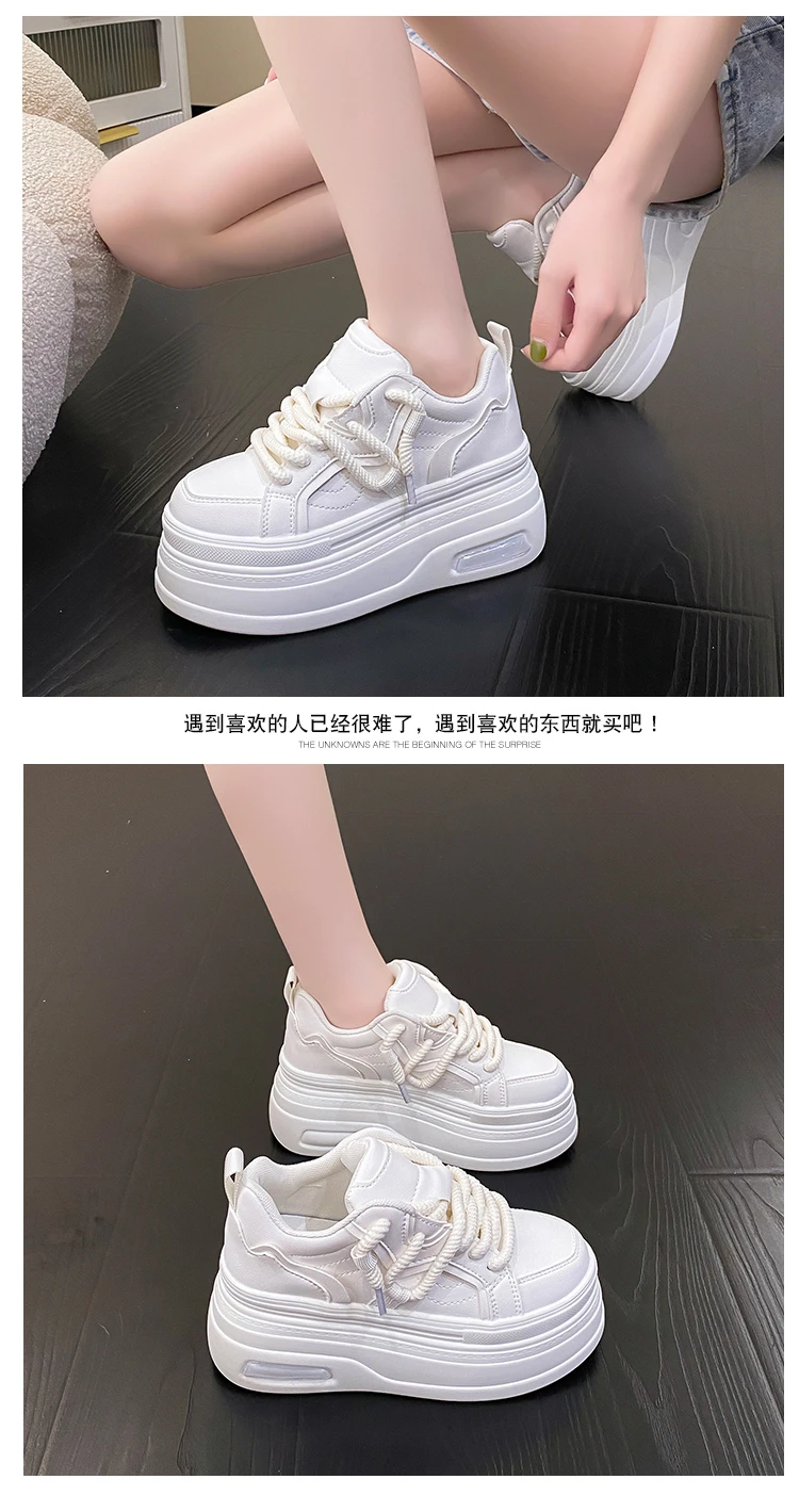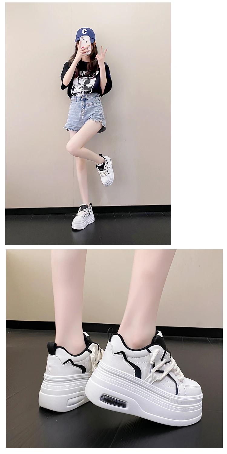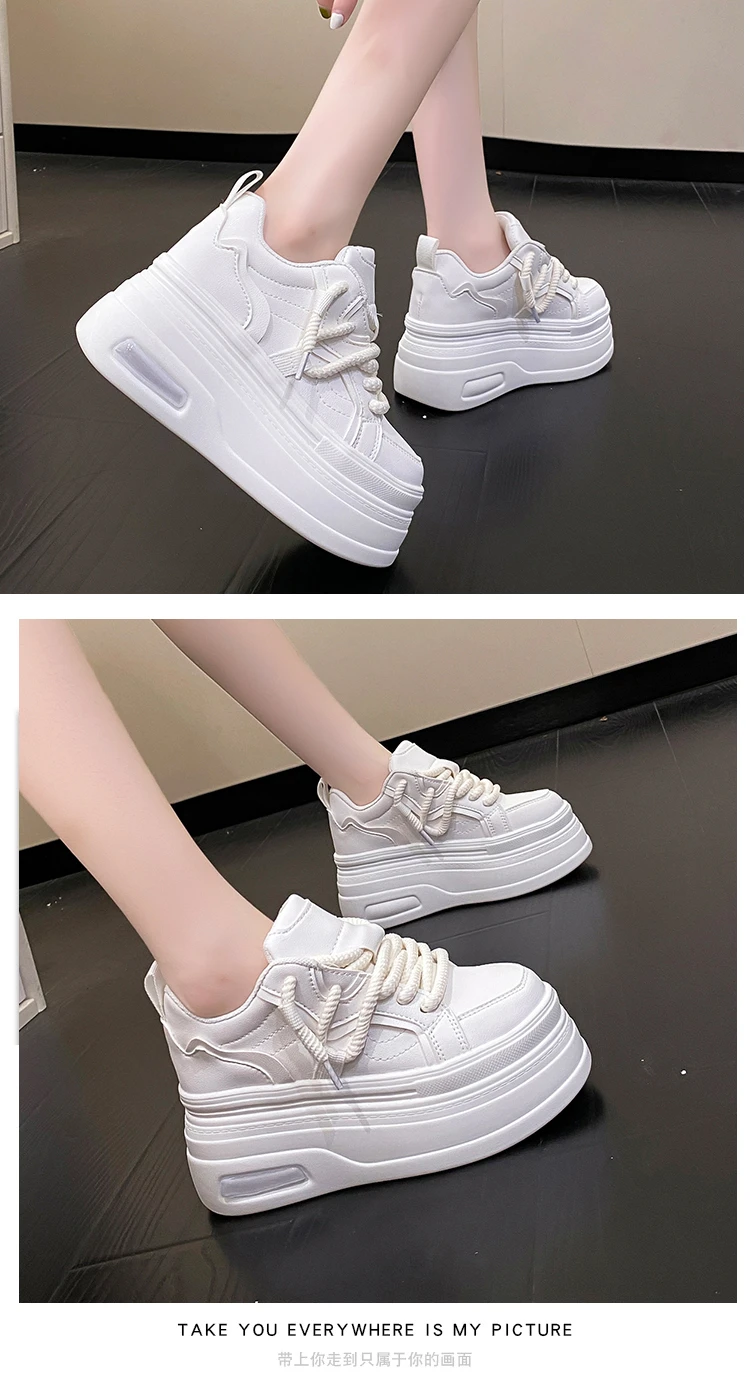 Fashion Tide Platform Sneakers Women Spring Autumn Round Toe Lace-up Comfort 8CM Thick Bottom Sport Shoe Black White Casual Shoe