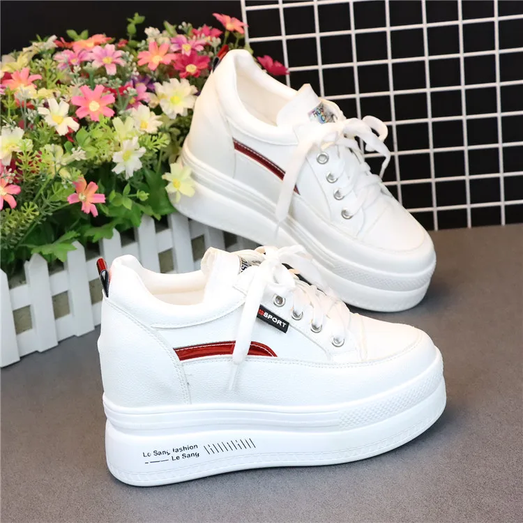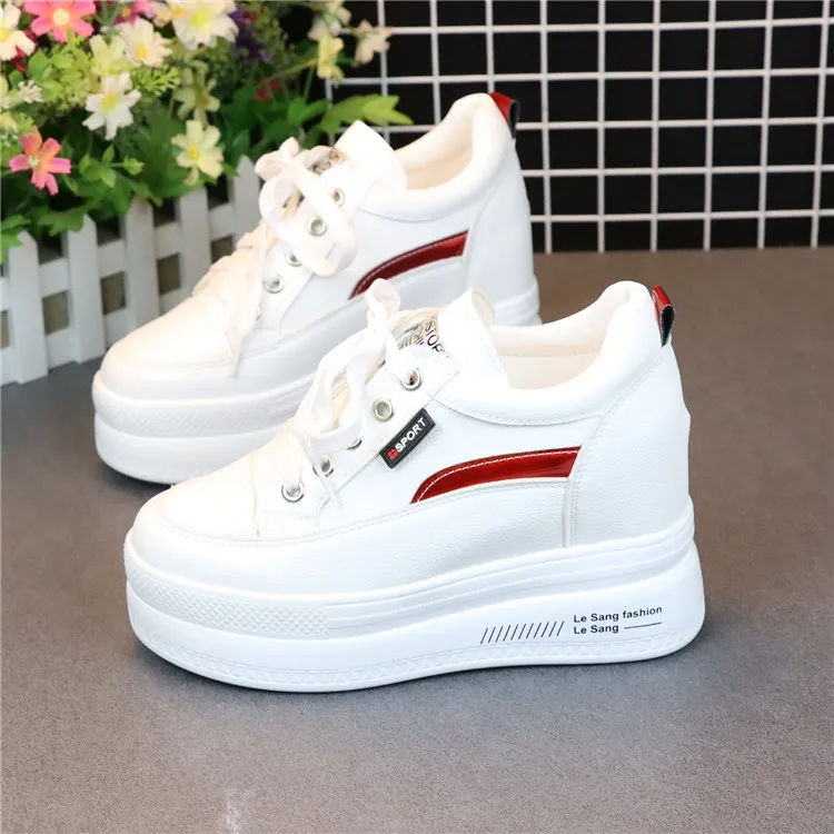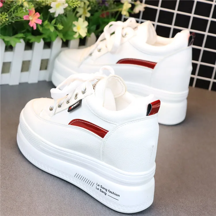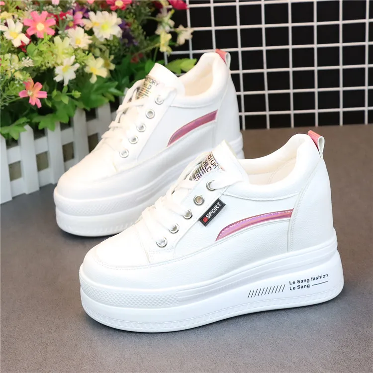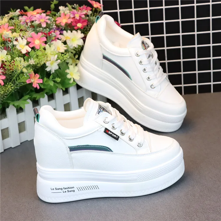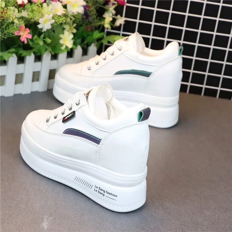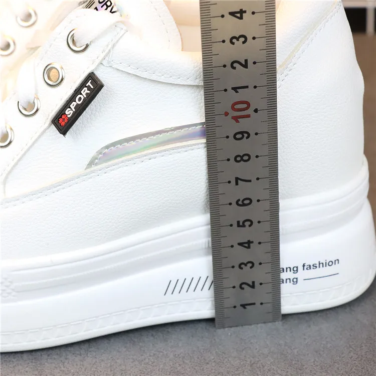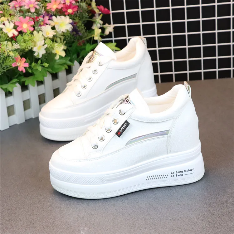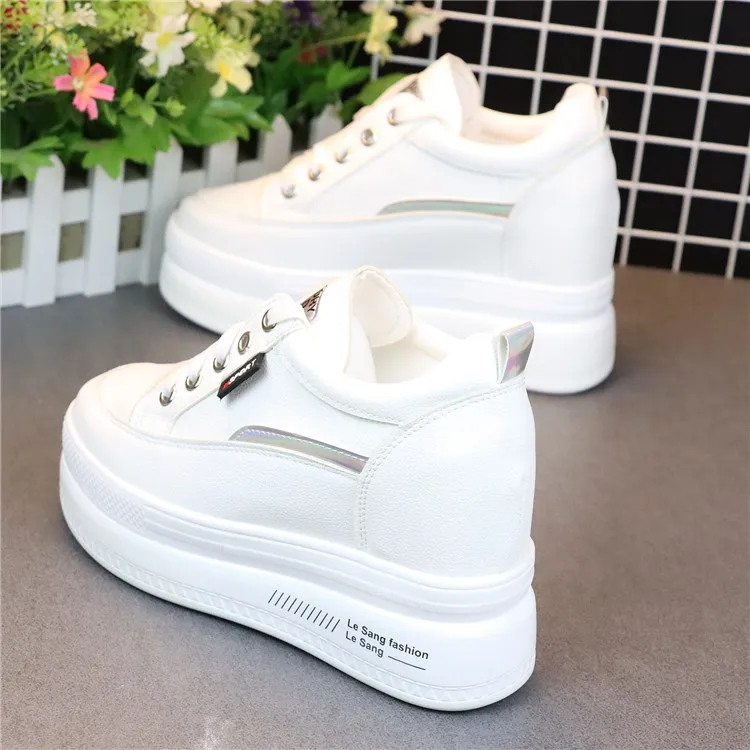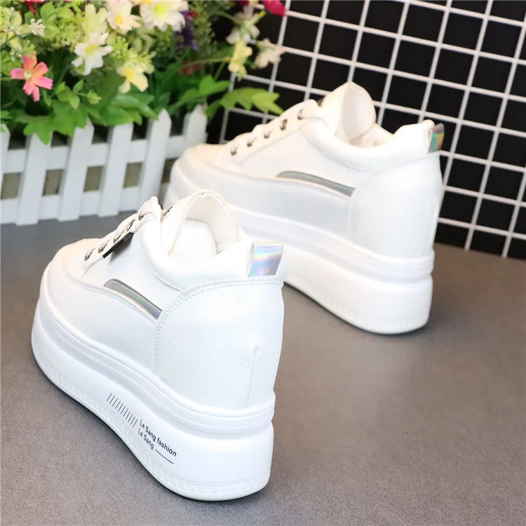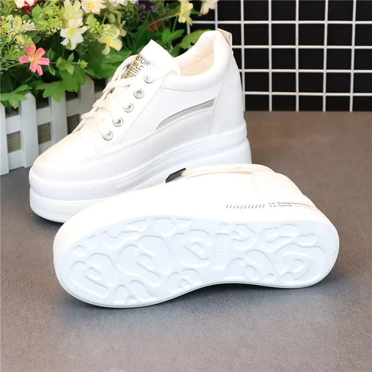 Fashion Women's High Platform Casual Shoes Height Increasi leathe Shoes 10 CM Thick Sole Trainers Lady Shoes White Sneakers