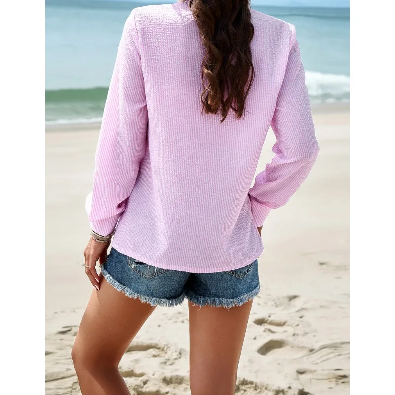 Female Clothes Women's Fashion Stripe Long Sleeve Shirt Temperament Commuting New Spring/Summer Stand Neck Lace Elegant Blouses