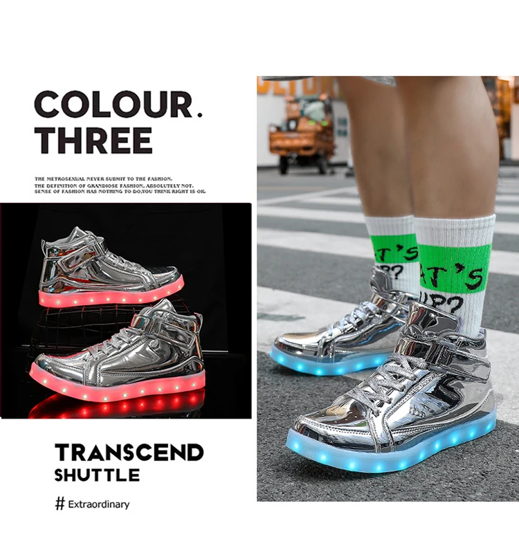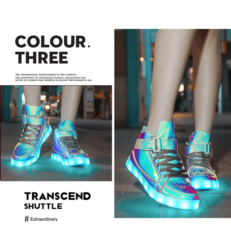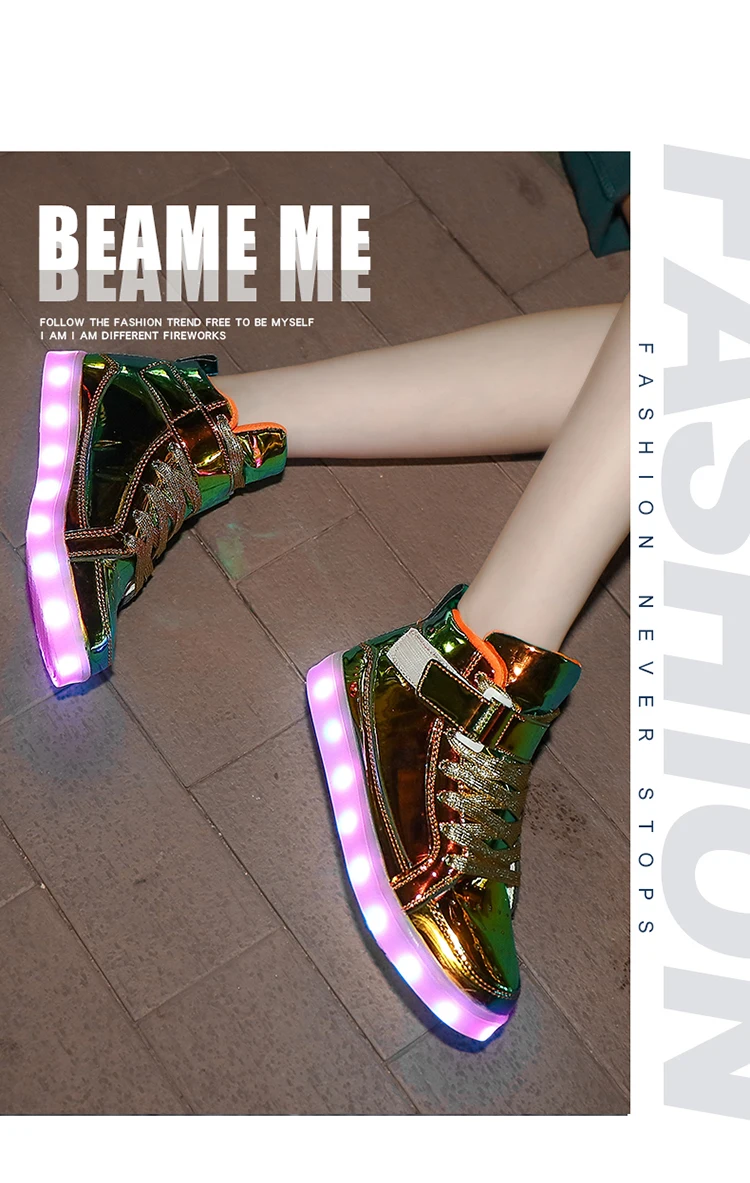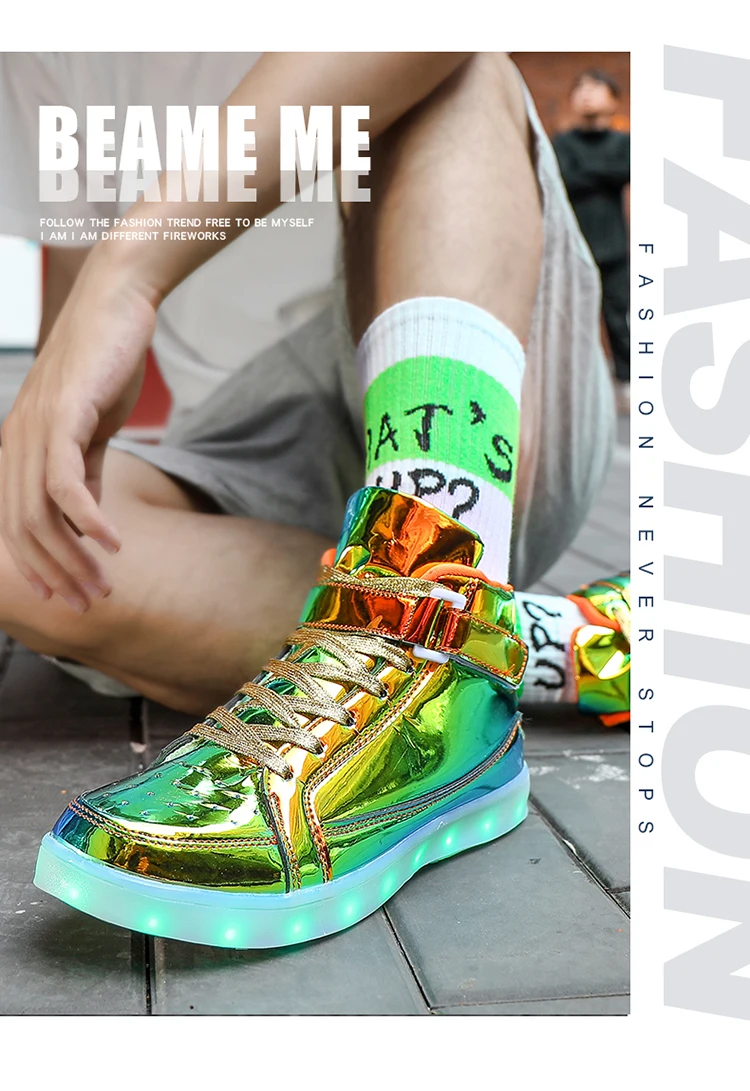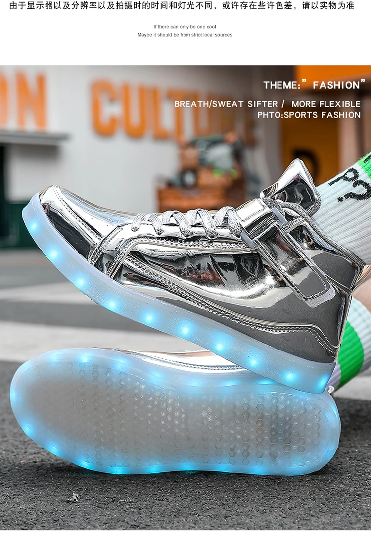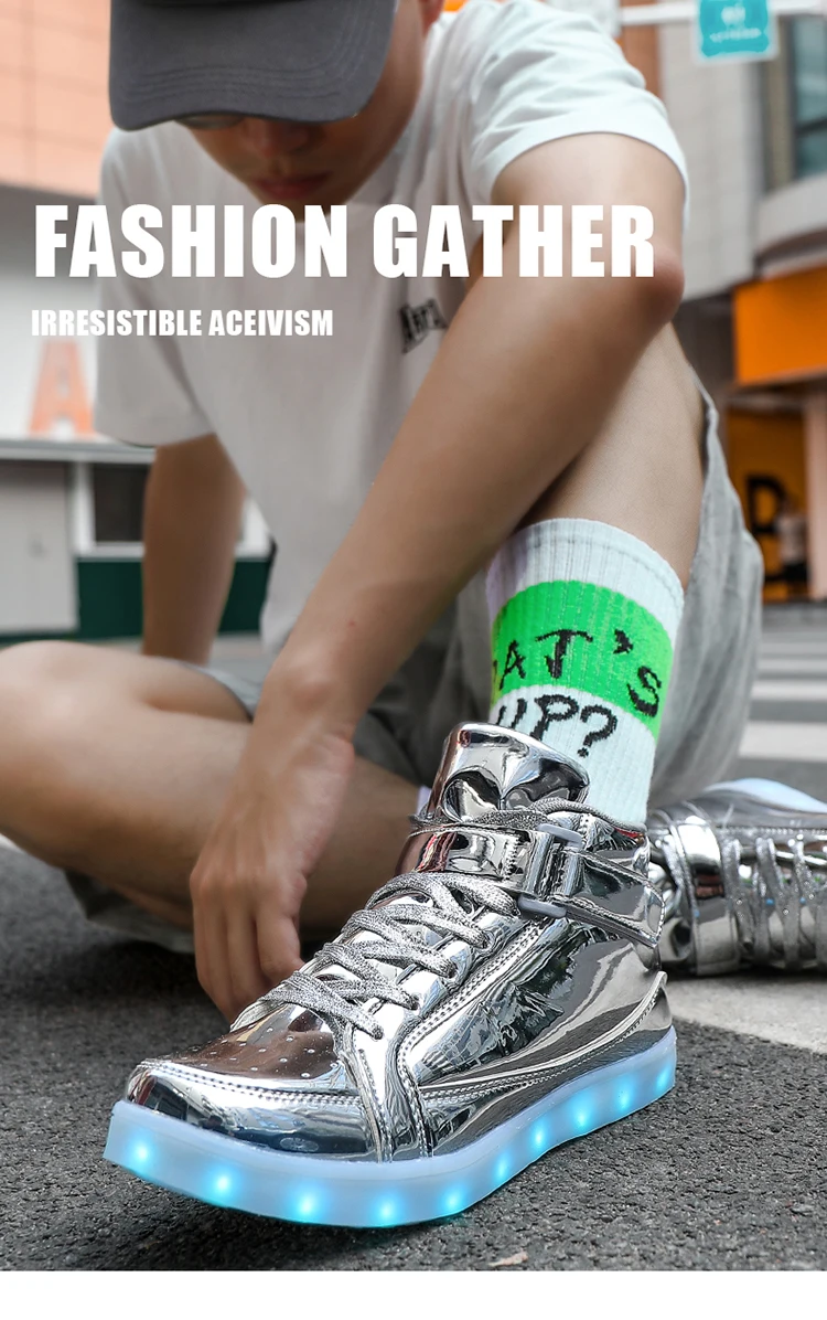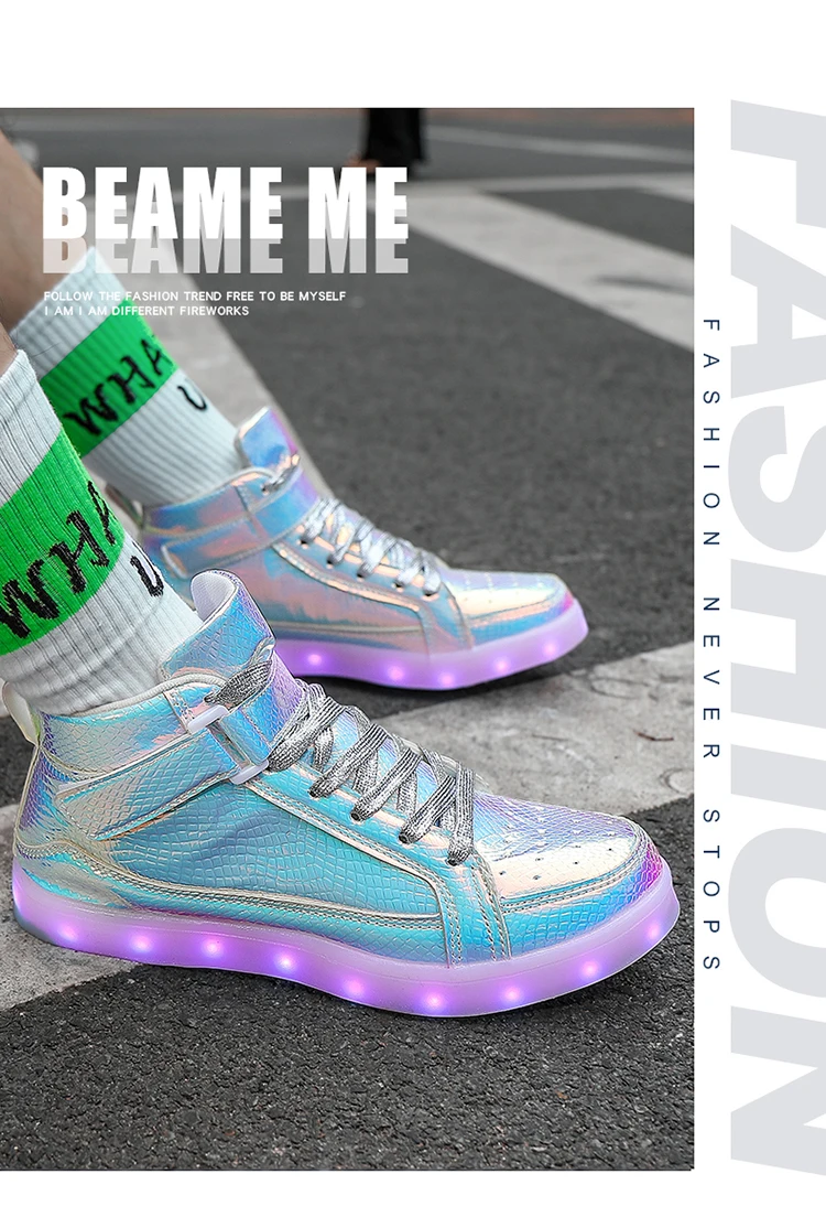 High Top Board Shoes for Men Women Color-changing Luminous Shoes LED Light Shoes Sneakers Mirror Leather Panel Shoes Large 35-46