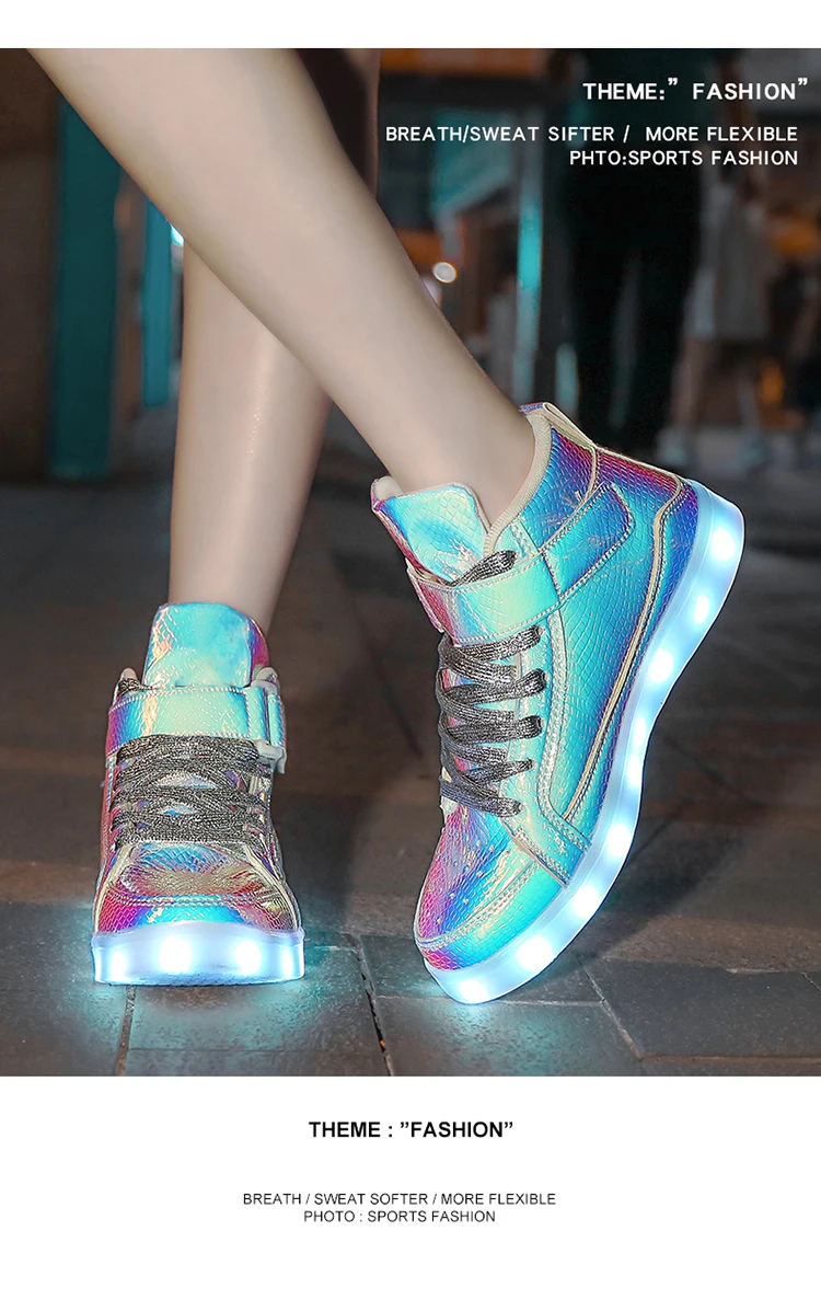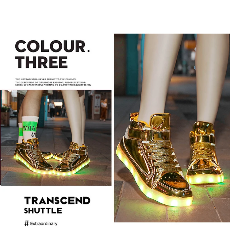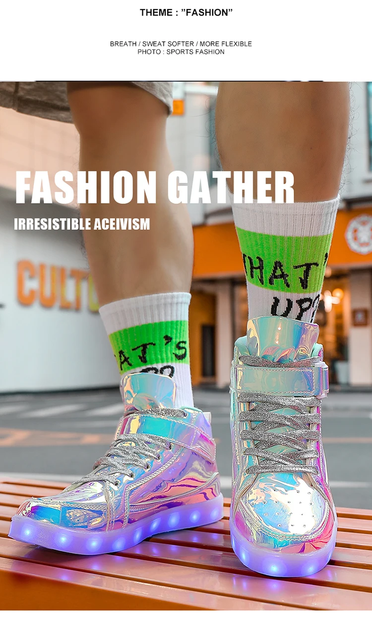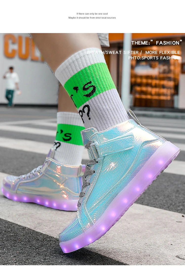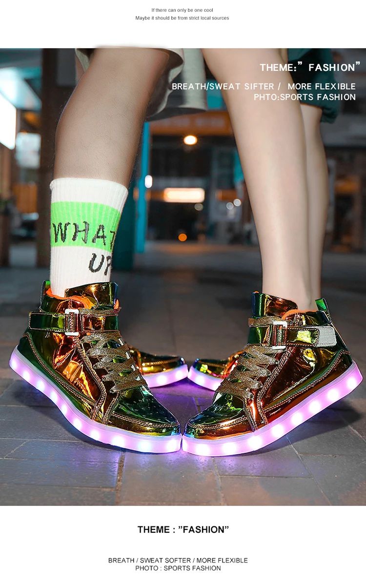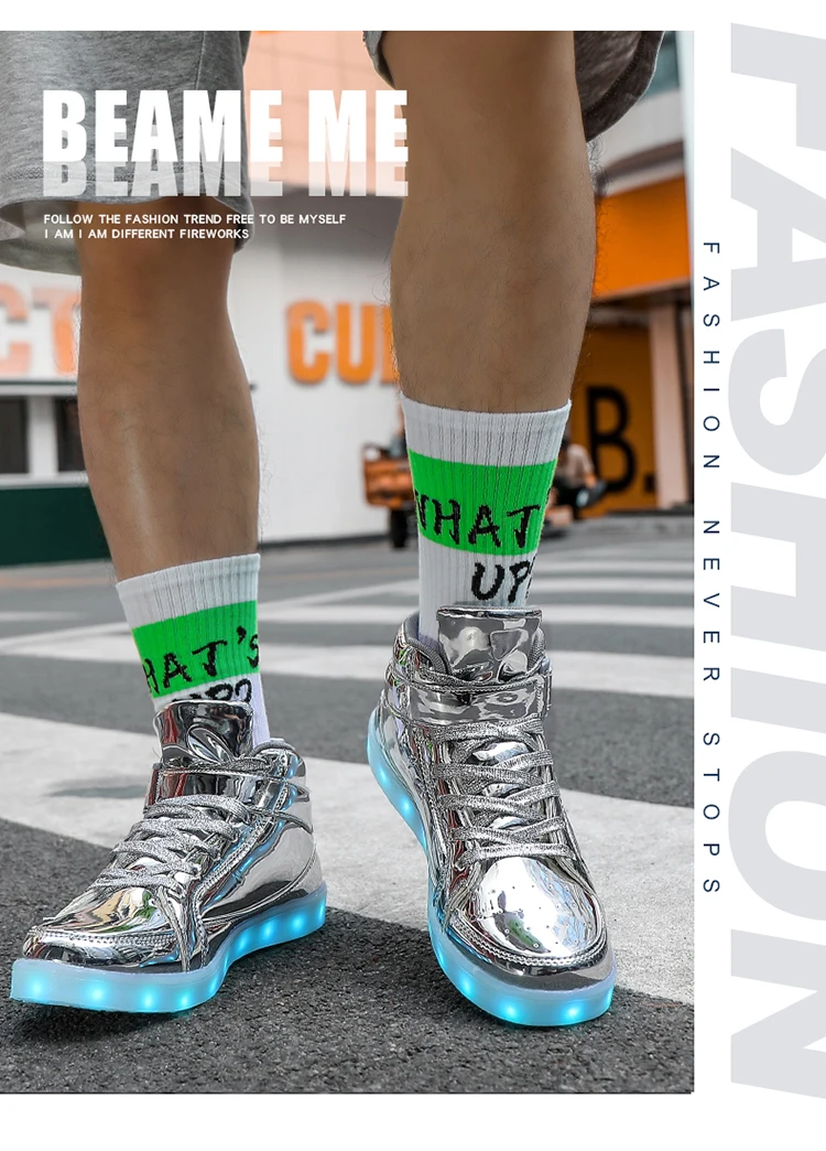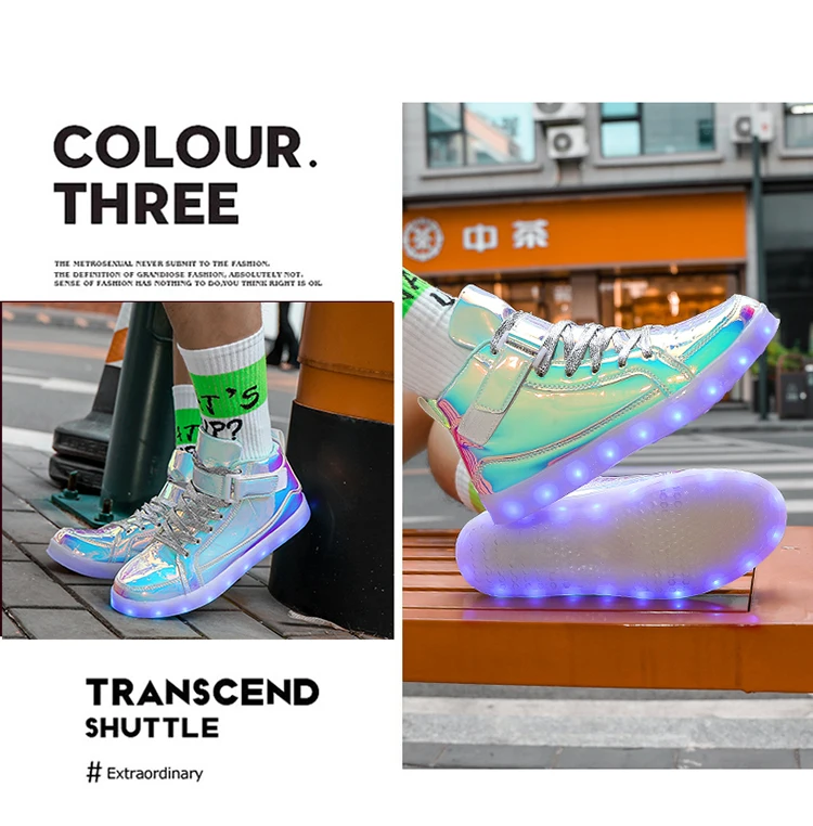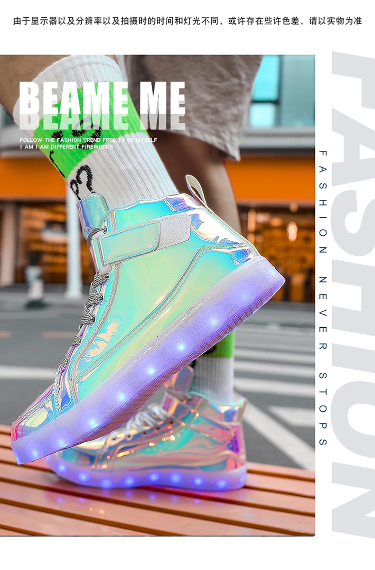 High Top Board Shoes for Men Women Color-changing Luminous Shoes LED Light Shoes Sneakers Mirror Leather Panel Shoes Large 35-46