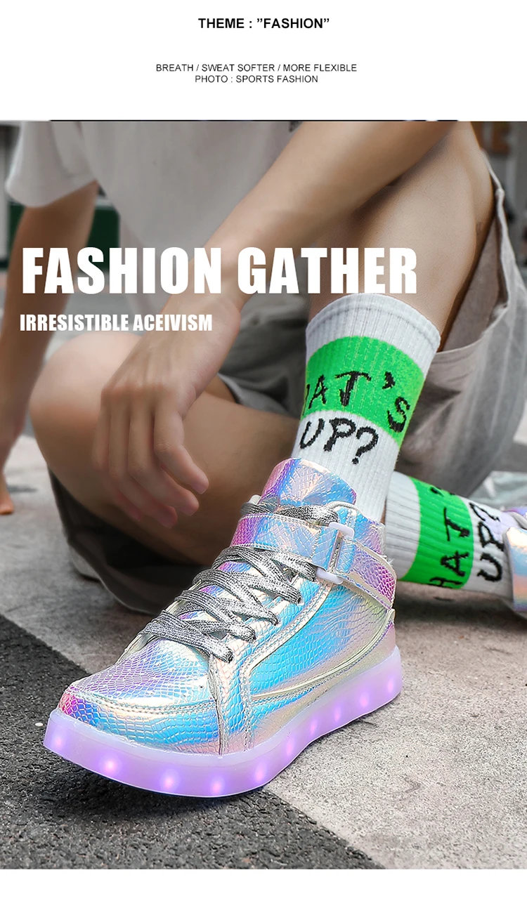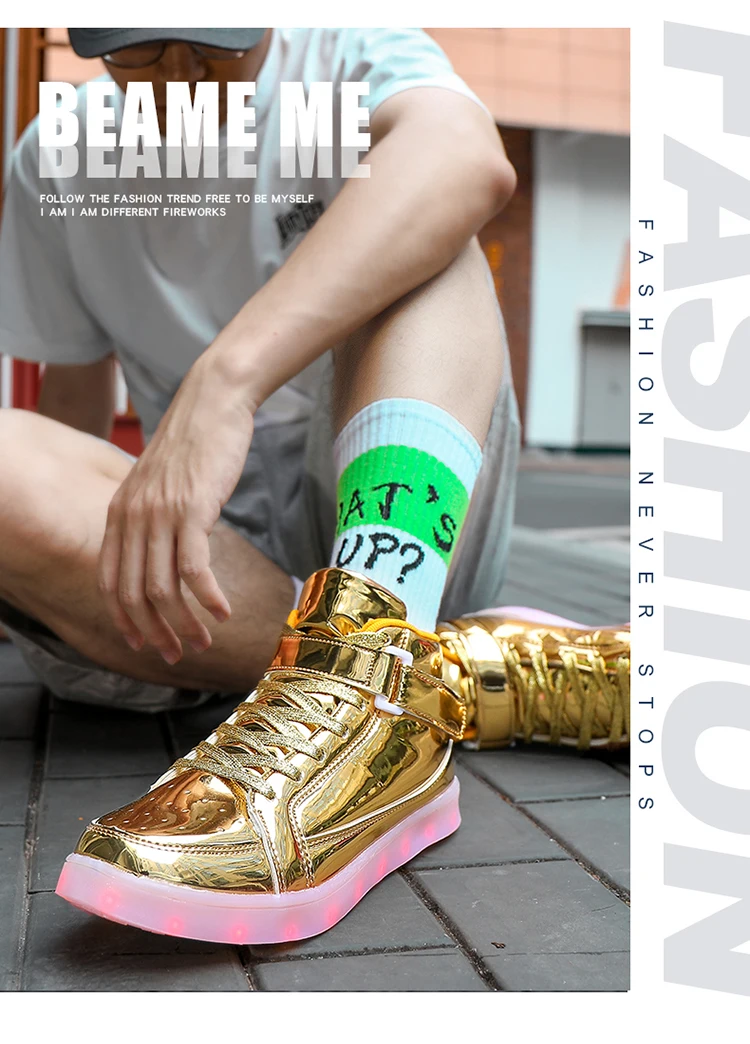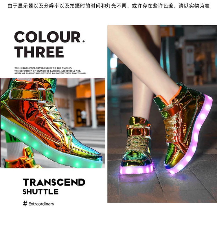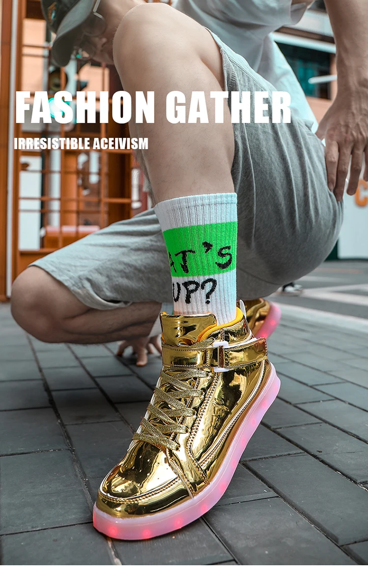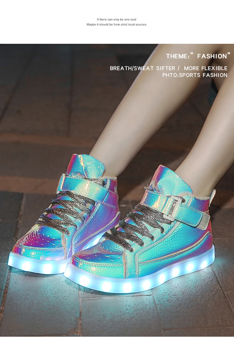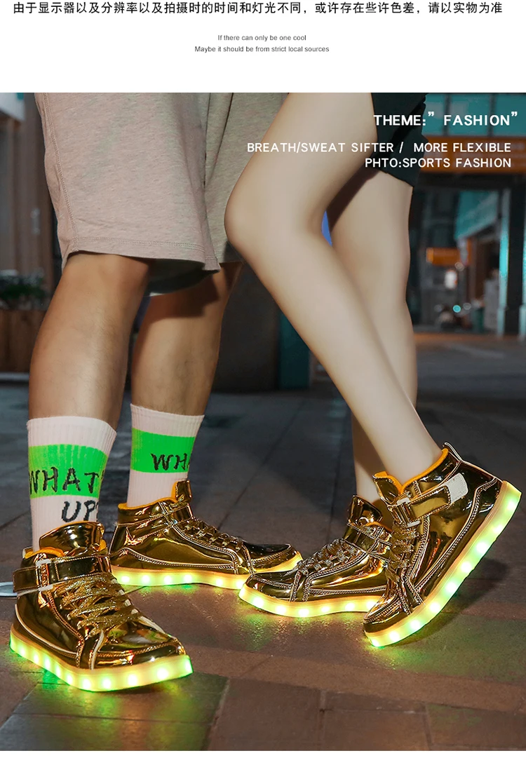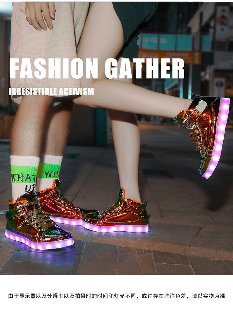 High Top Board Shoes for Men Women Color-changing Luminous Shoes LED Light Shoes Sneakers Mirror Leather Panel Shoes Large 35-46