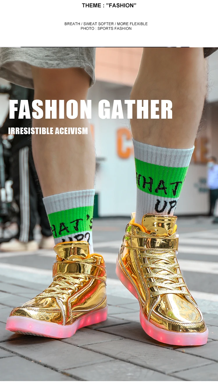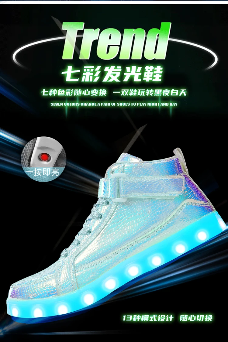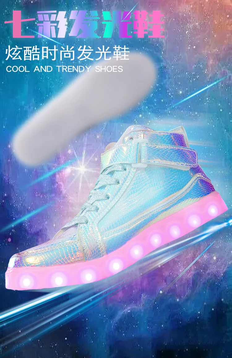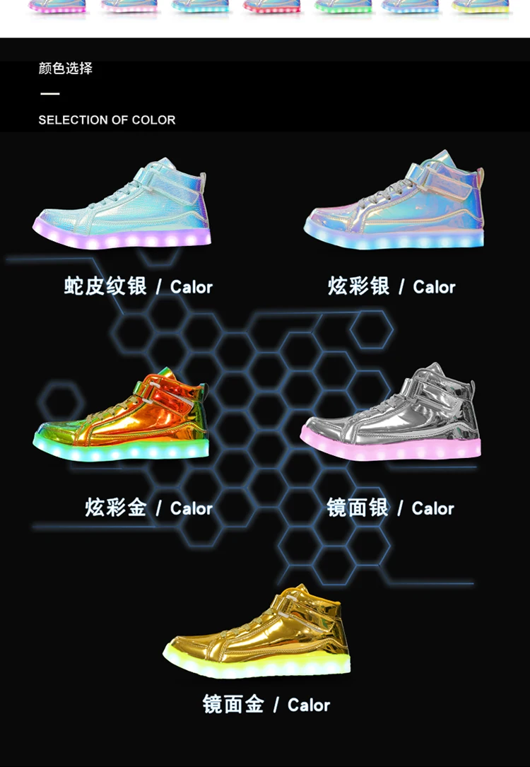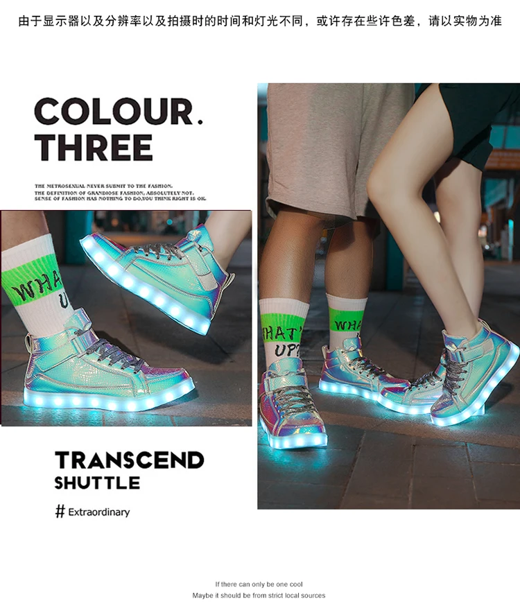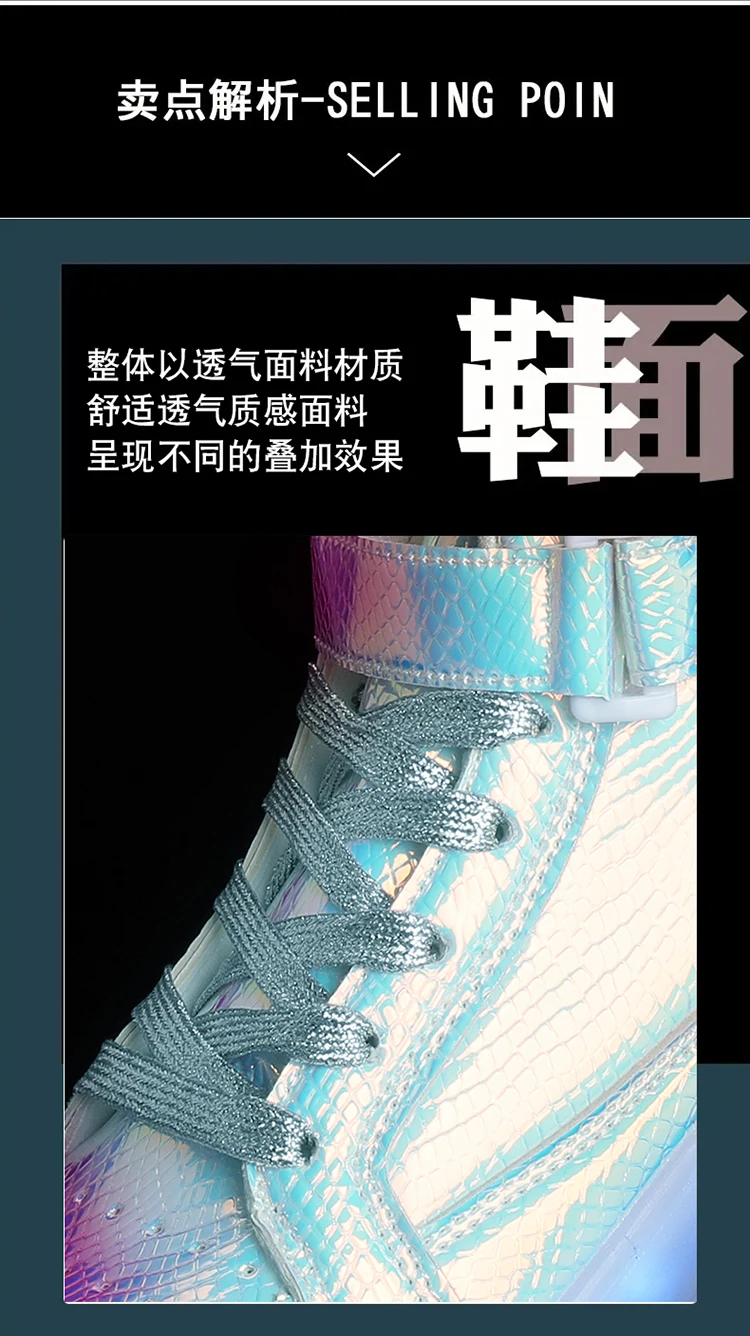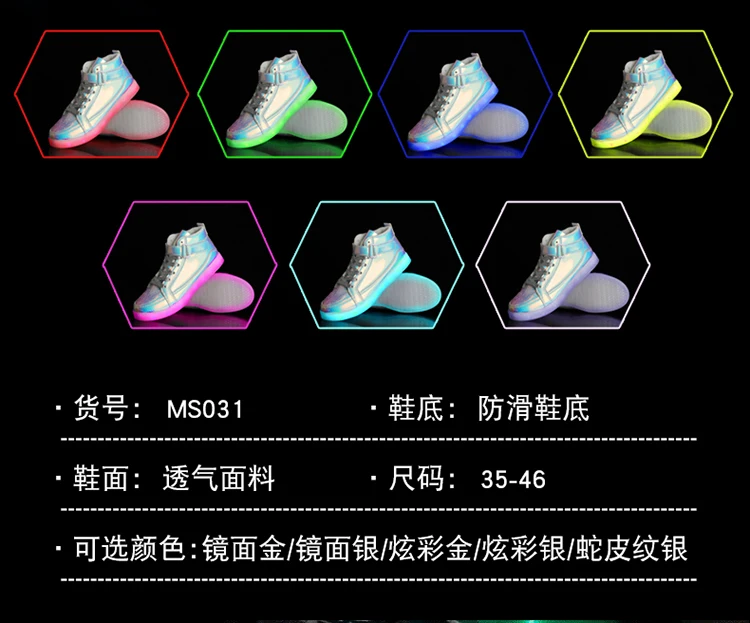 High Top Board Shoes for Men Women Color-changing Luminous Shoes LED Light Shoes Sneakers Mirror Leather Panel Shoes Large 35-46