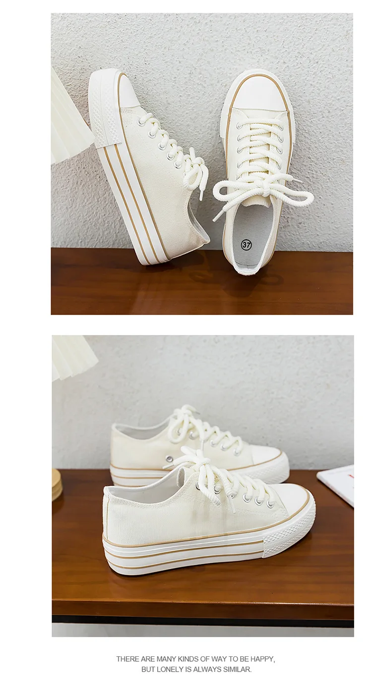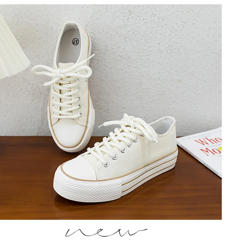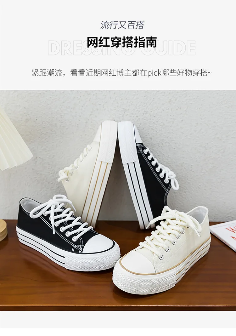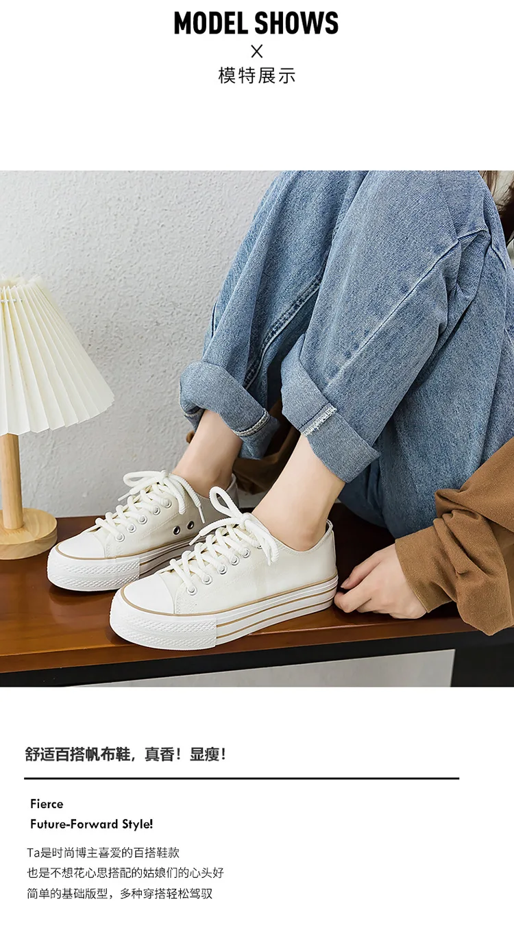 Hot Sales Thick-soled Canvas Shoes 2023 Spring Ins New Preppy Women's Fashion Shoes Wholesale Soft Soled Shoes Zapatos De Mujer