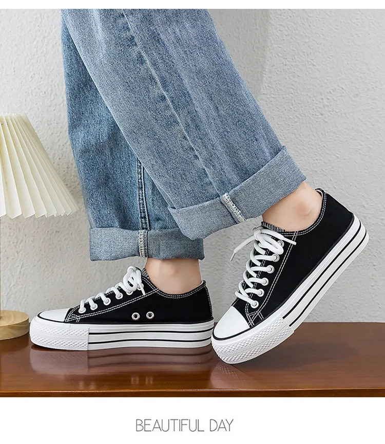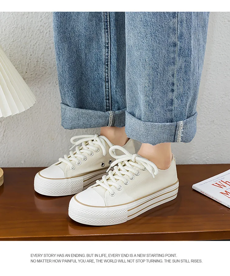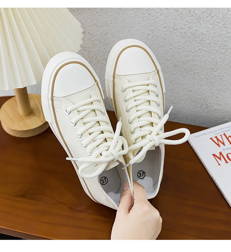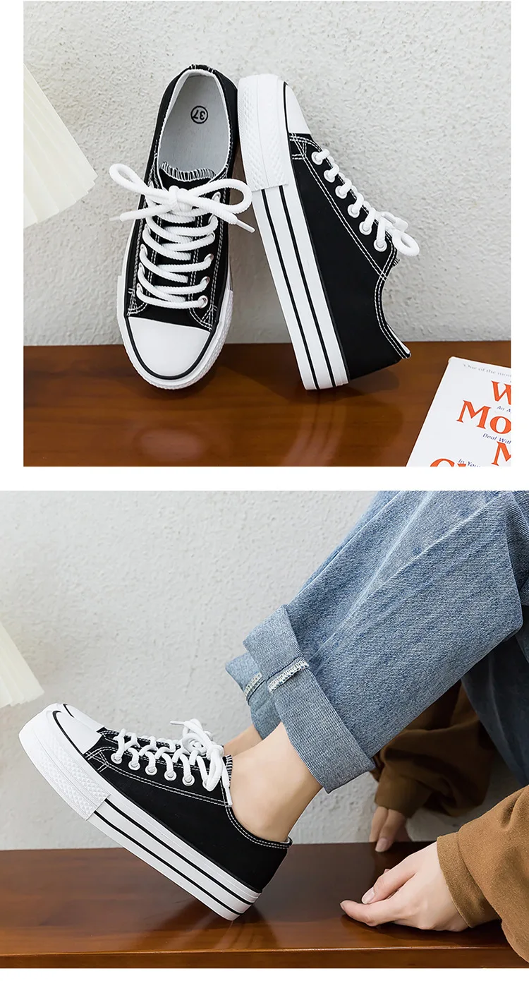 Hot Sales Thick-soled Canvas Shoes 2023 Spring Ins New Preppy Women's Fashion Shoes Wholesale Soft Soled Shoes Zapatos De Mujer