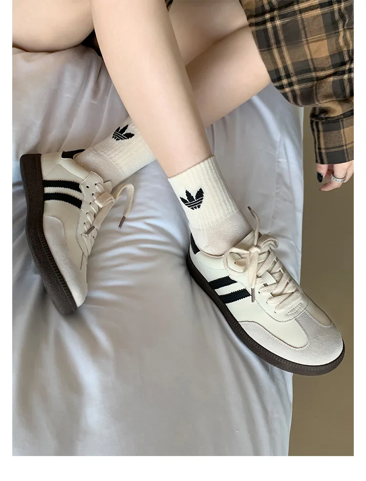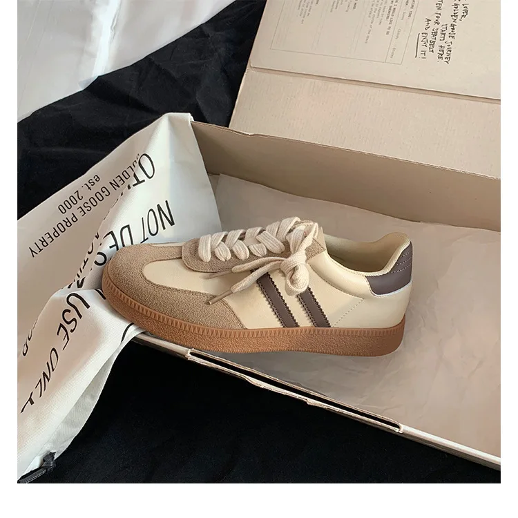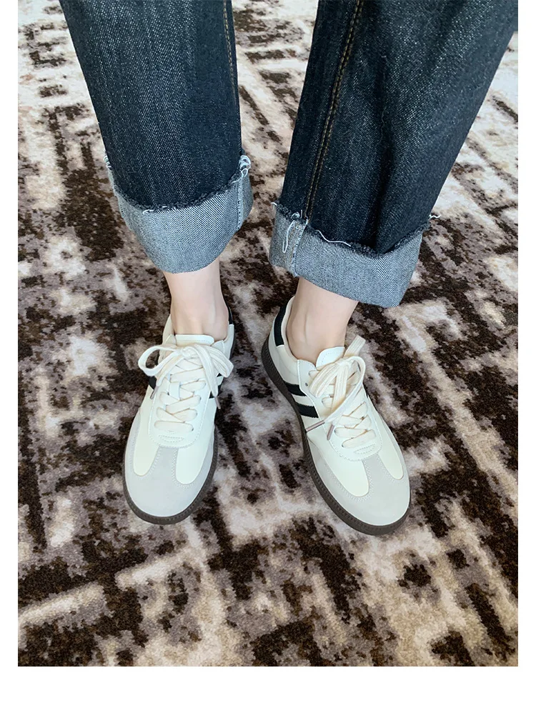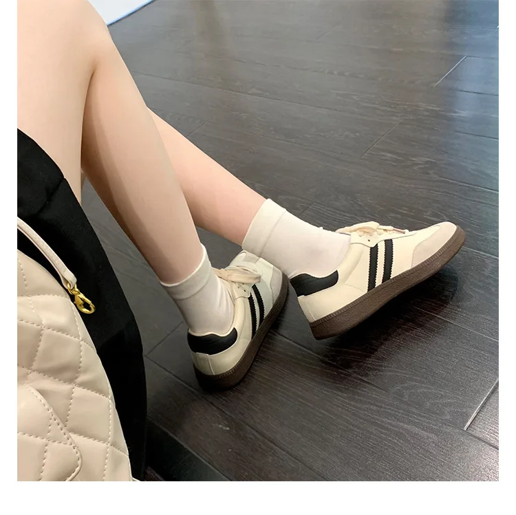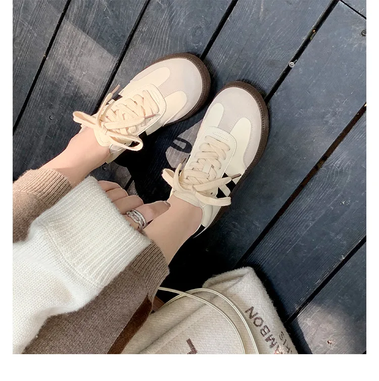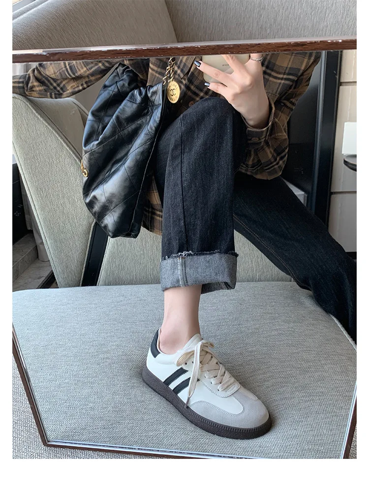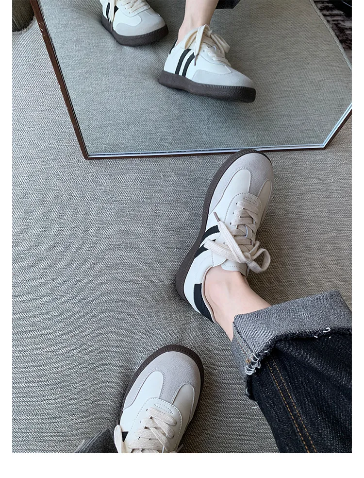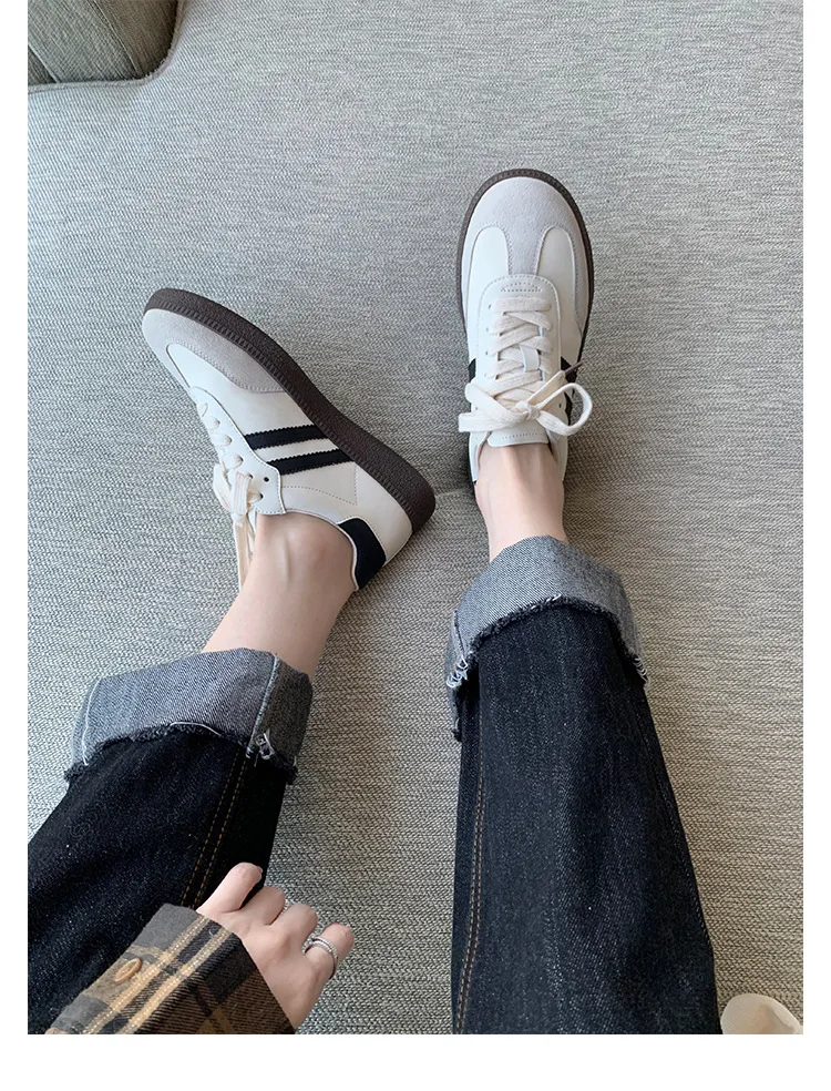 Jenny&Dave 2024 British Fashion Shoes Students Vulcanized Shoes Casual Sports Flat Shoes Women's Leather Retro Training