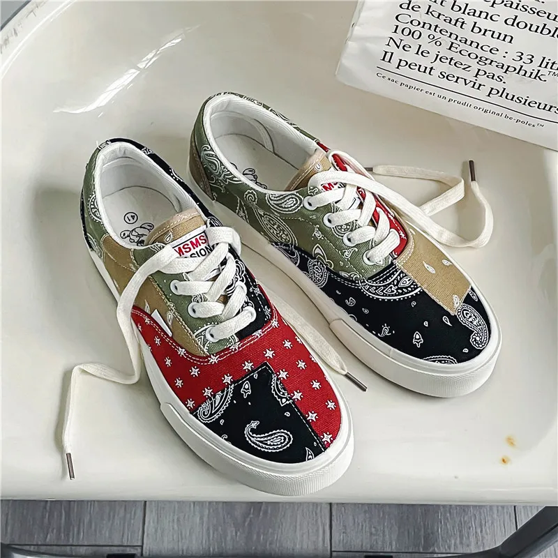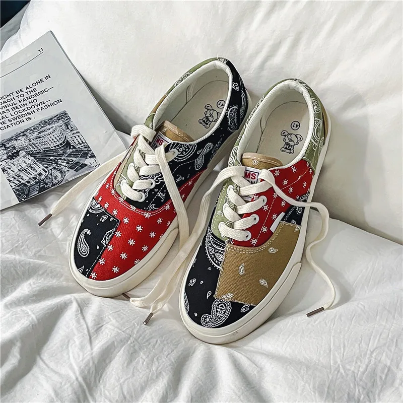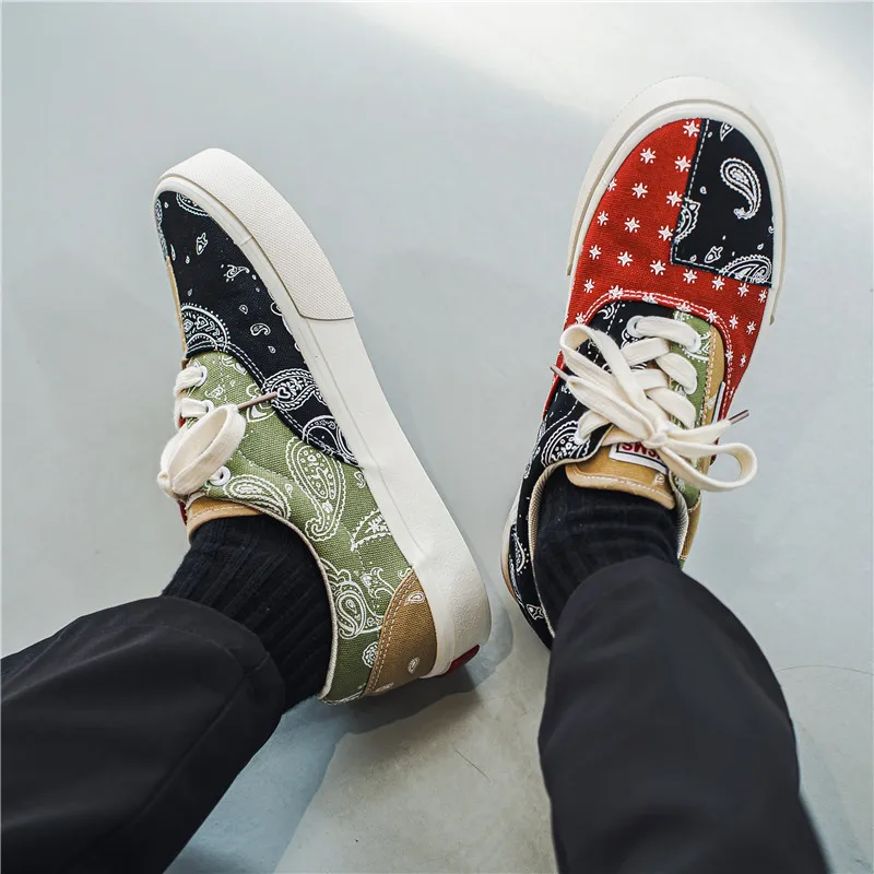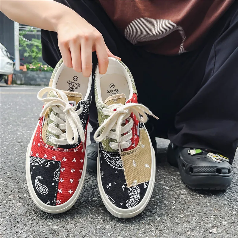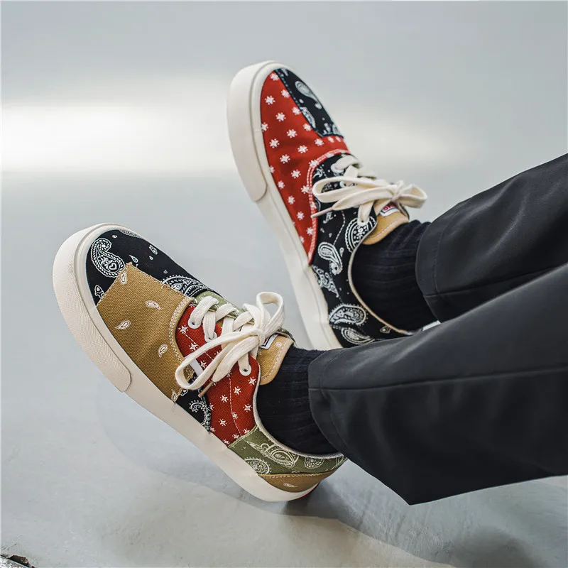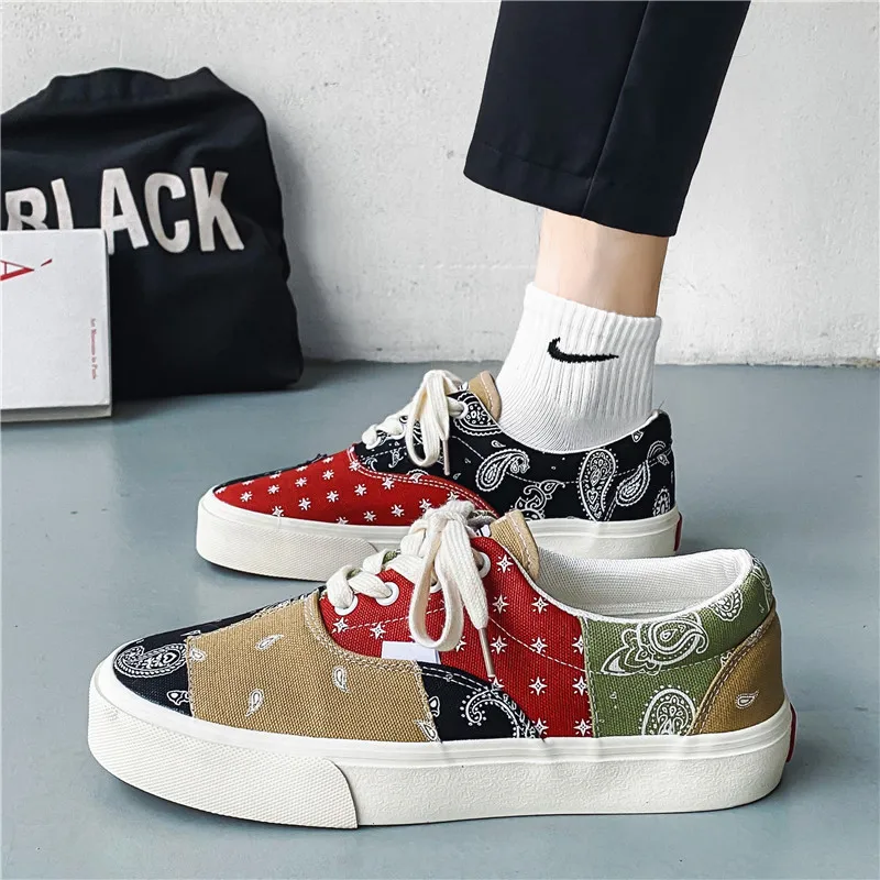 Men Casual Canvas Shoes Patchwork Design Skateboard Tennis Trainers Running Sport Shoes Mixed Colors Skate Flats Sneaker 39-44