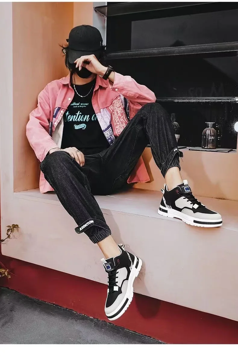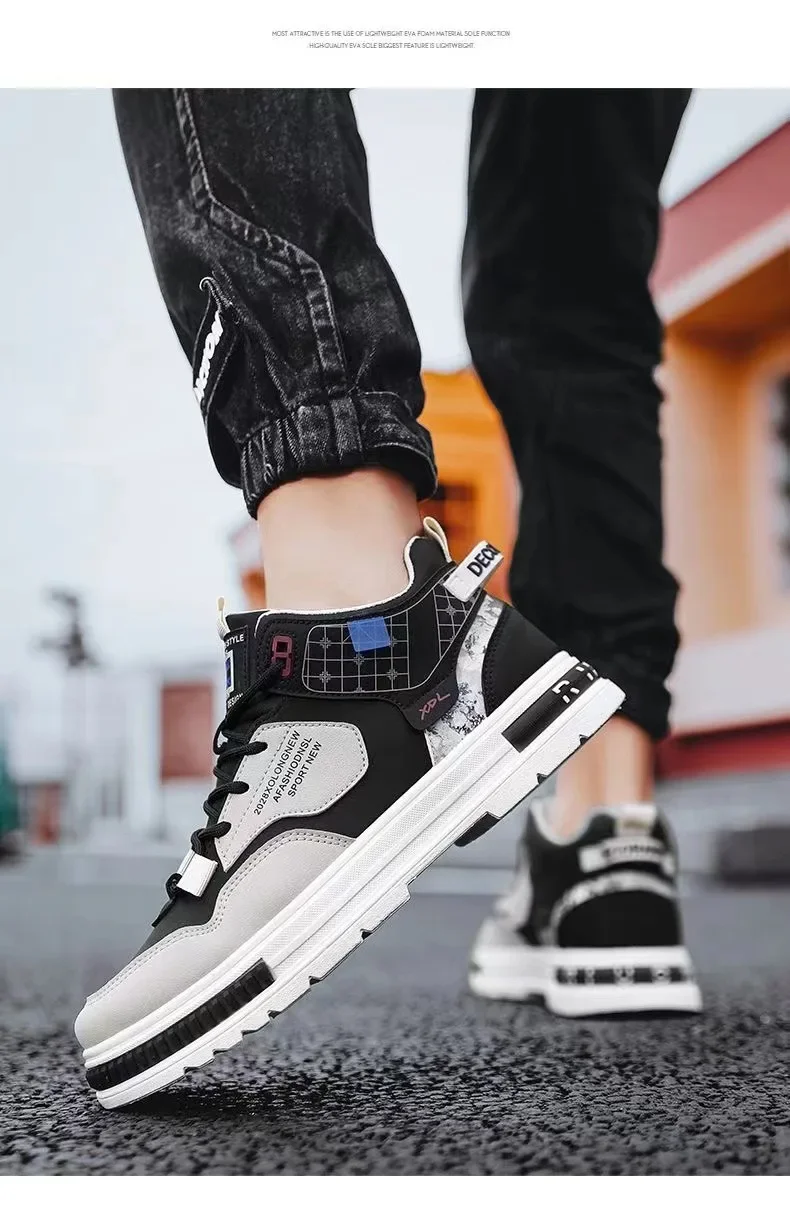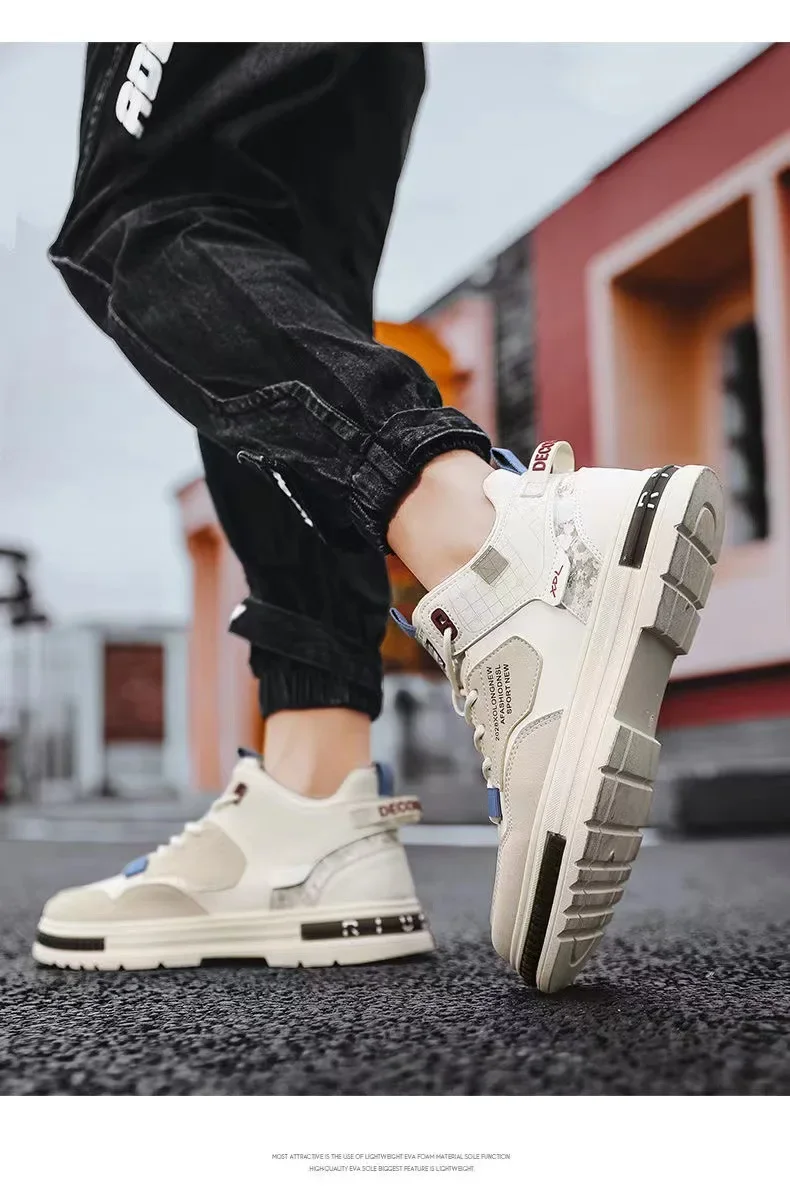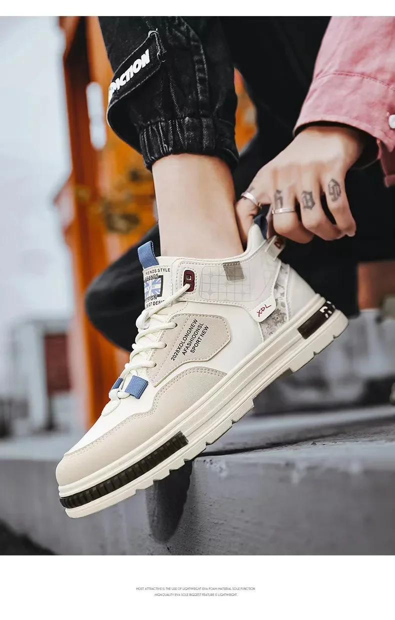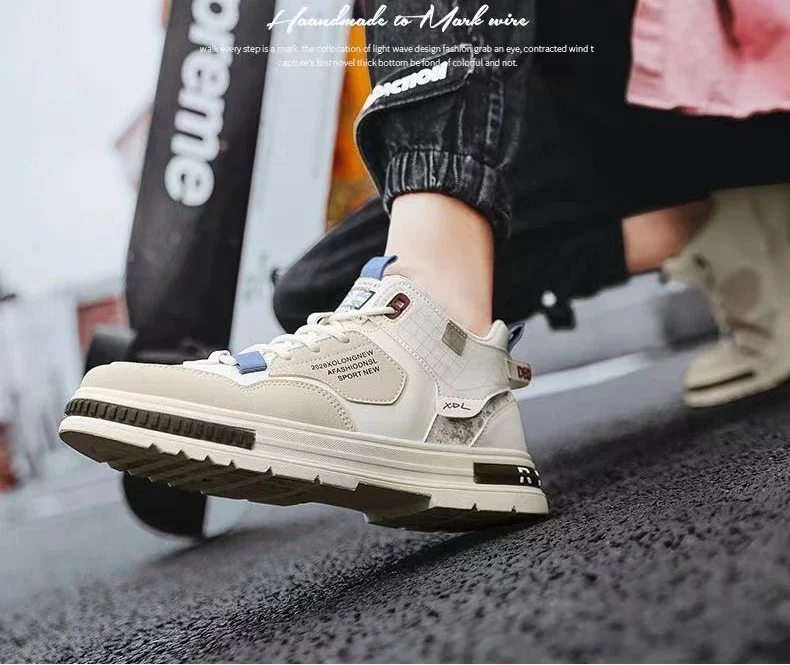 Men Casual Sports Board Shoes British Style Leather Work Attire Outdoor Walking Fashion Boots Lightweight Breathable 2024