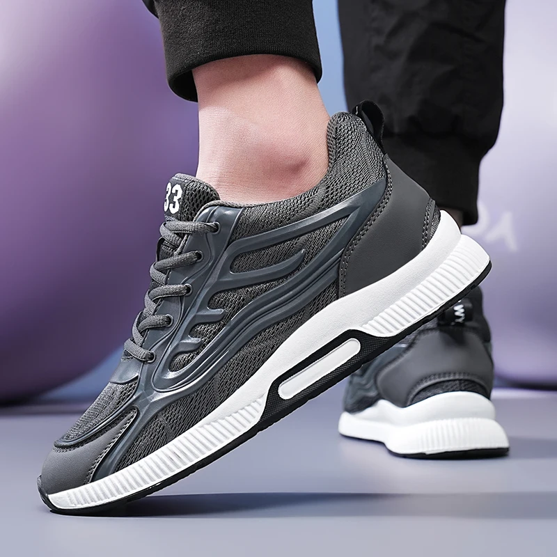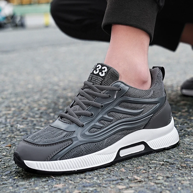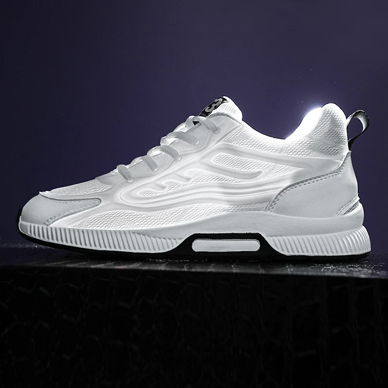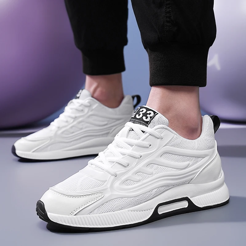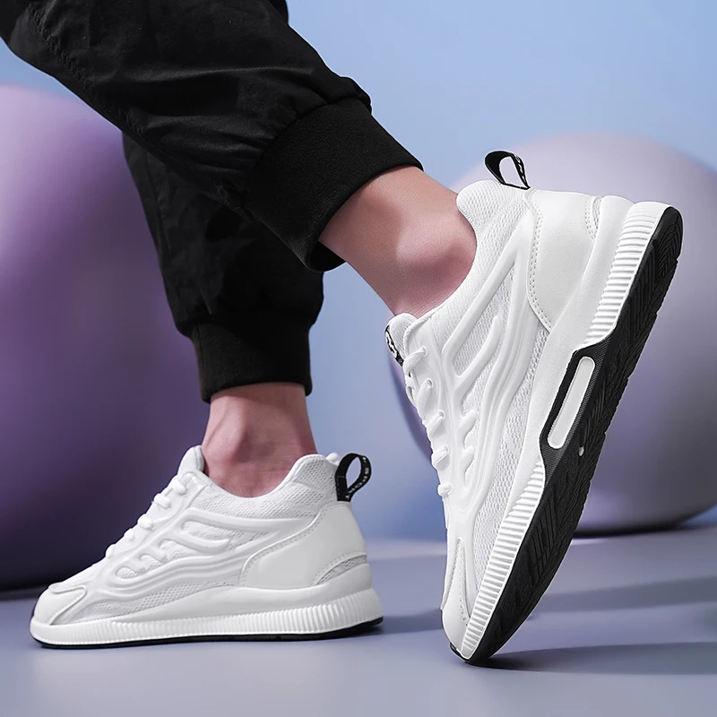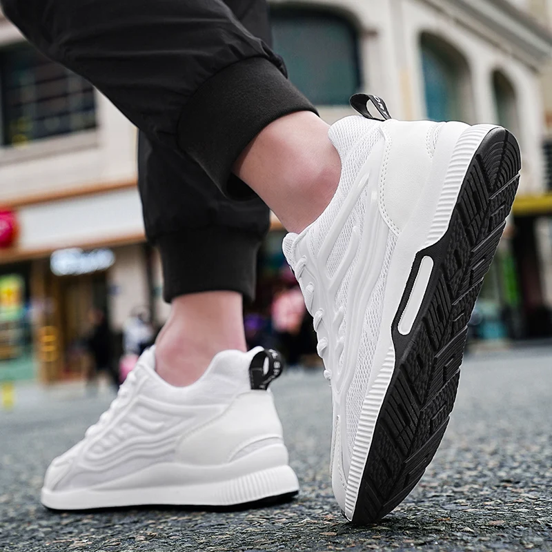 Men Chunky Sneakers Lift Height Increase Insole 6cm Elevator Mesh Sports White Plus Size 37-46