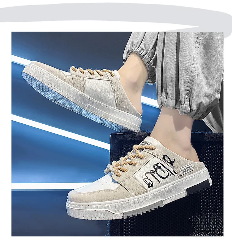 Men Slippers Men's Sneakers Couple Half Slippers for Men Loafers Slip-On Shoes Male Walking Shoes Flip Flops Sandalias Zapatos