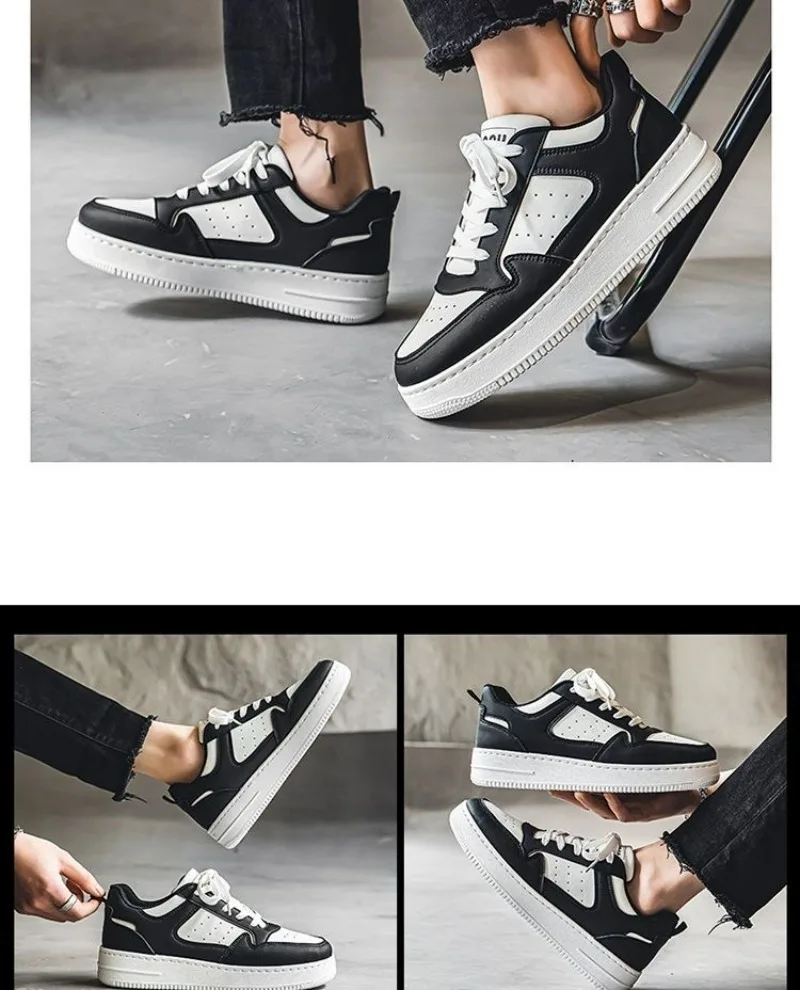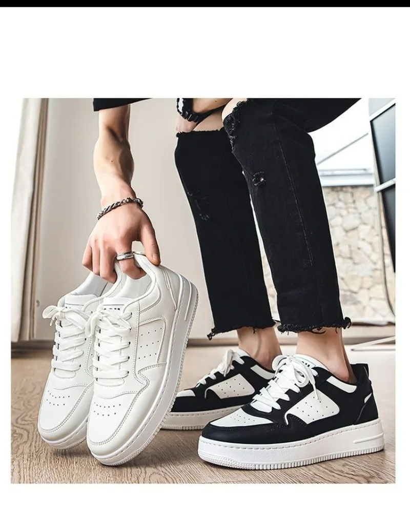 Men's Shoes Fashion White Sneakers For Men Lace up Skateboard Board Shoe Thick Sole Versatile Vulcanized Shoes Zapatillas Hombre