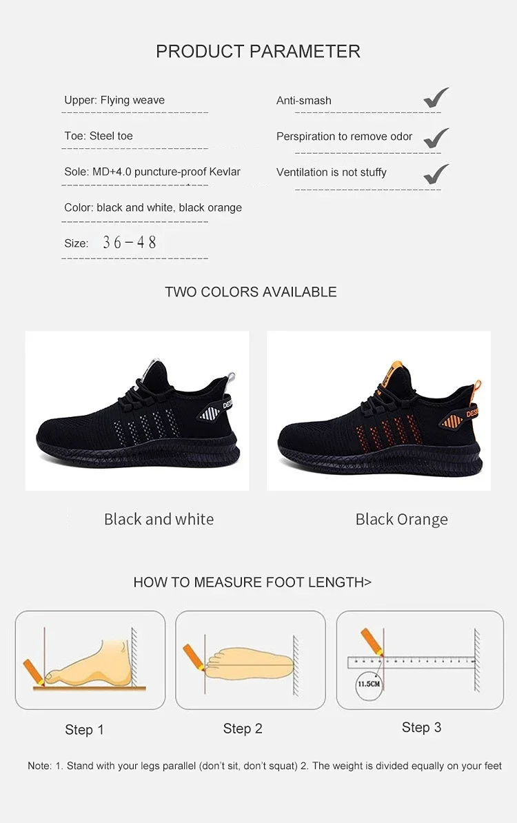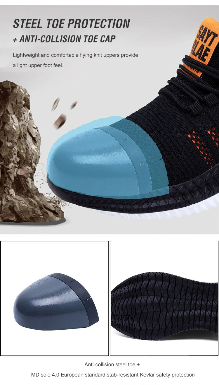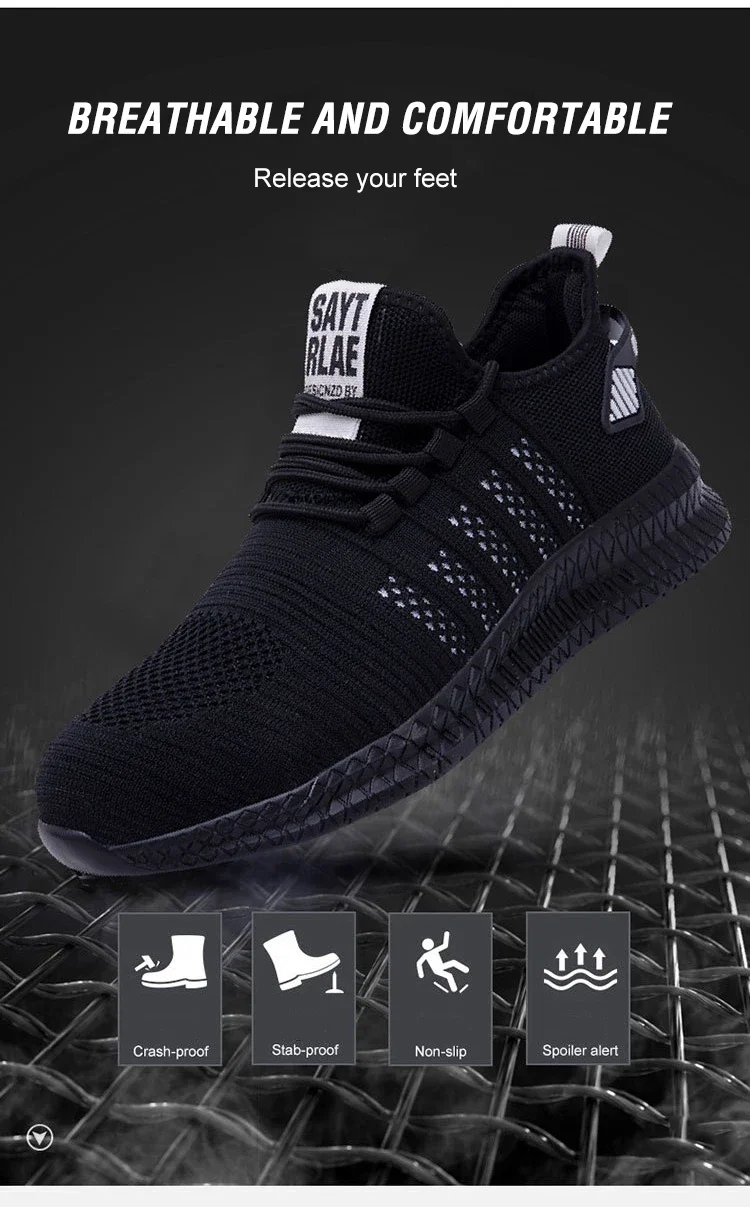 Indestructible Safety Work Shoes Men/Women Fashion Punctureproof Steel Toe Shoe Lightweight Breathable Non-slip Shoes Plus Size