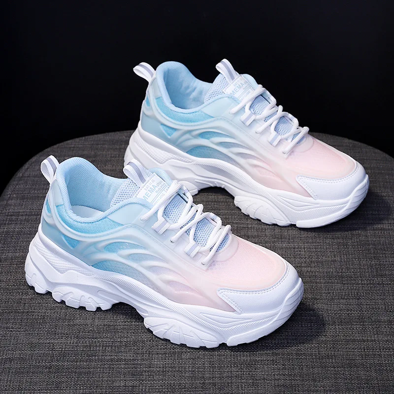Mixed Colors Breathable Platform Sneakers 2023 New Casual All-match Mesh Lightweight Sports Running Shoes Fashion Spring Autumn