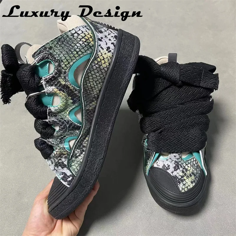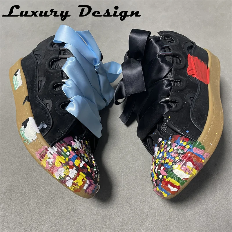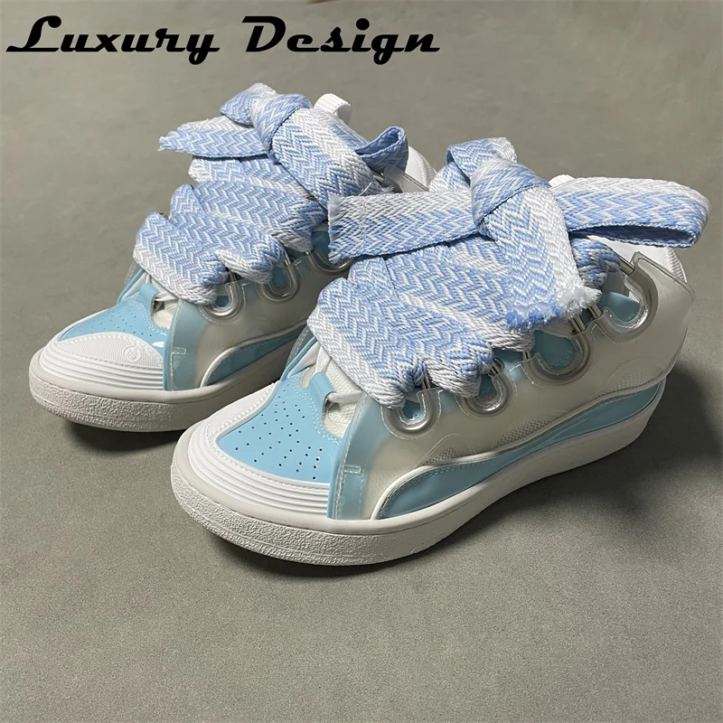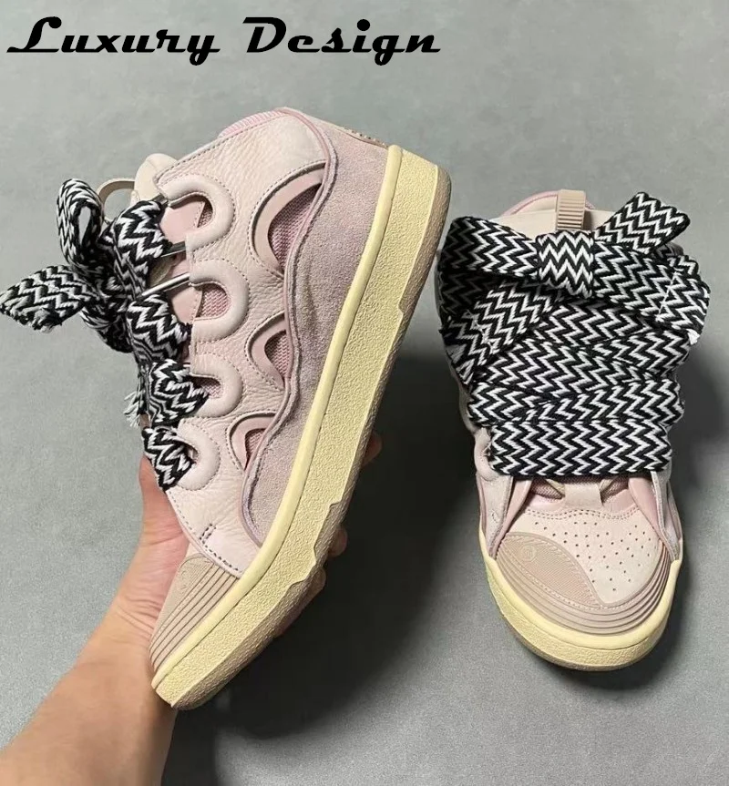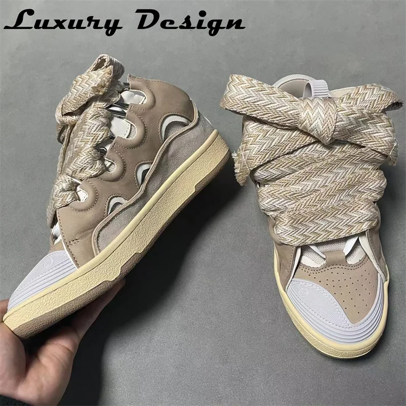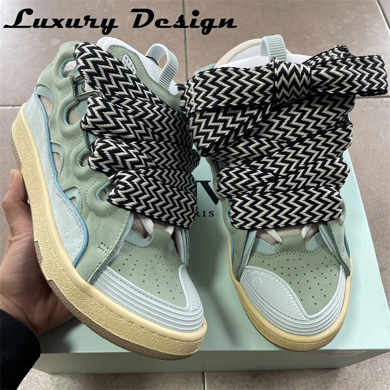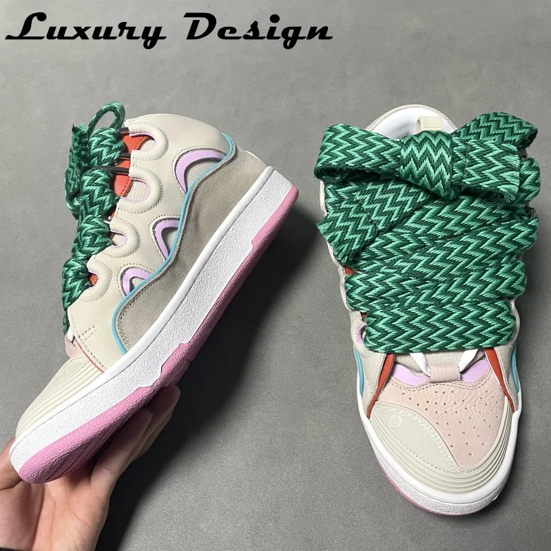 New Designer Sneakers Suede Patchwork Flat Shoes Women Sneakers Lace Up Round Toe Men High Quality Thick Laces Skateboard Shoes