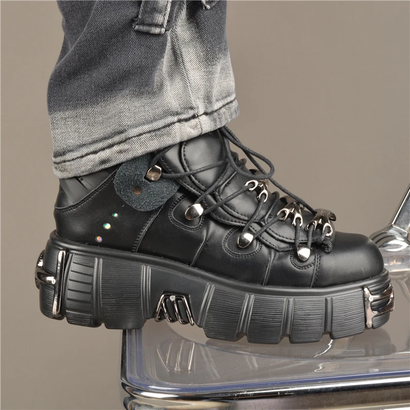 Platform Metal Toe Chunky Sneakers Women's Gothic Punk Style Sneakers Rock Design Black Walking Shoes Casual Female Runway Shoes