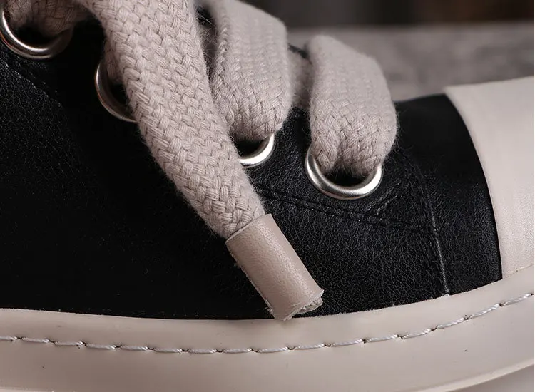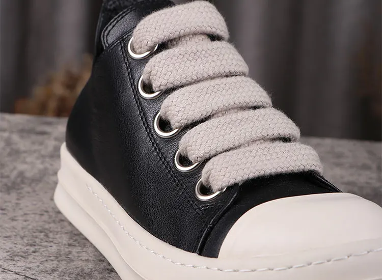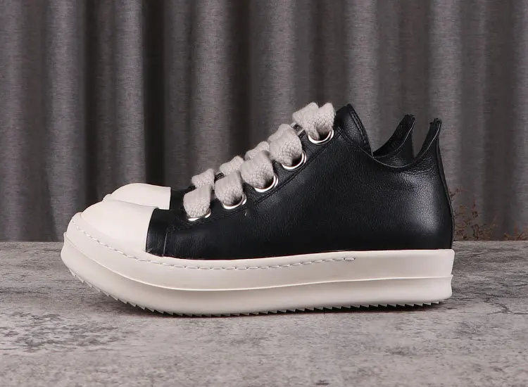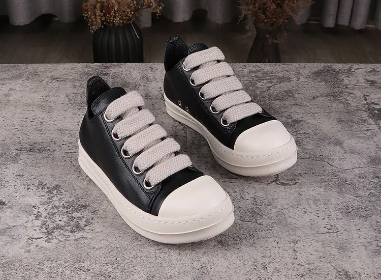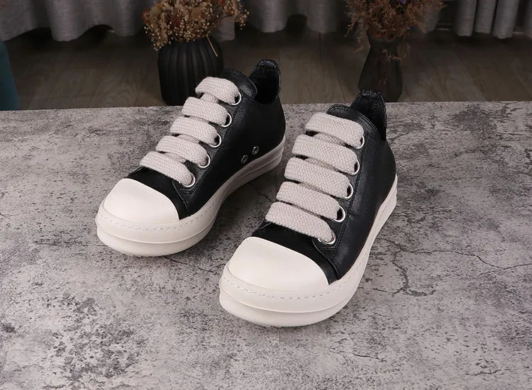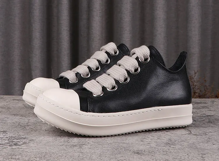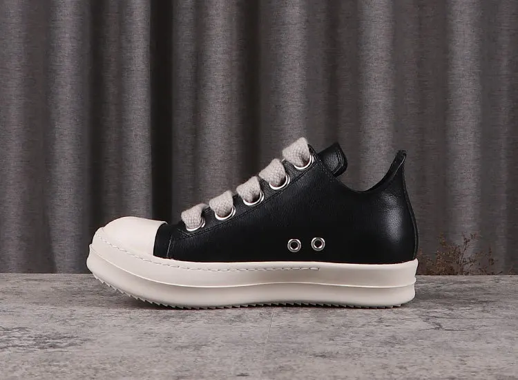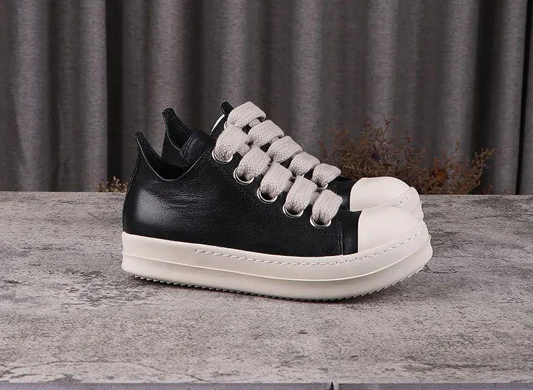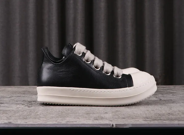 Rick Vintage Men Jumbo Laces Casual Shoes Real Leather Flats Low Top Black Sneakers Women Luxury Round Toe Flats Designer Unisx
