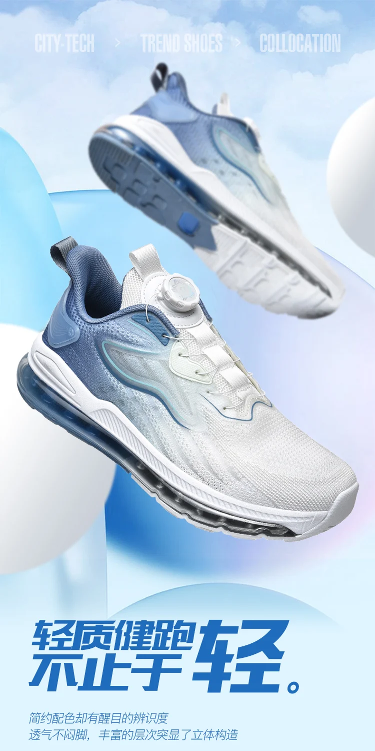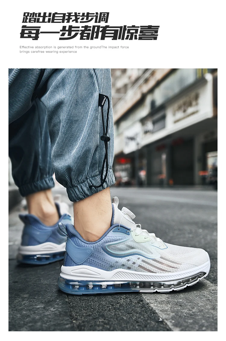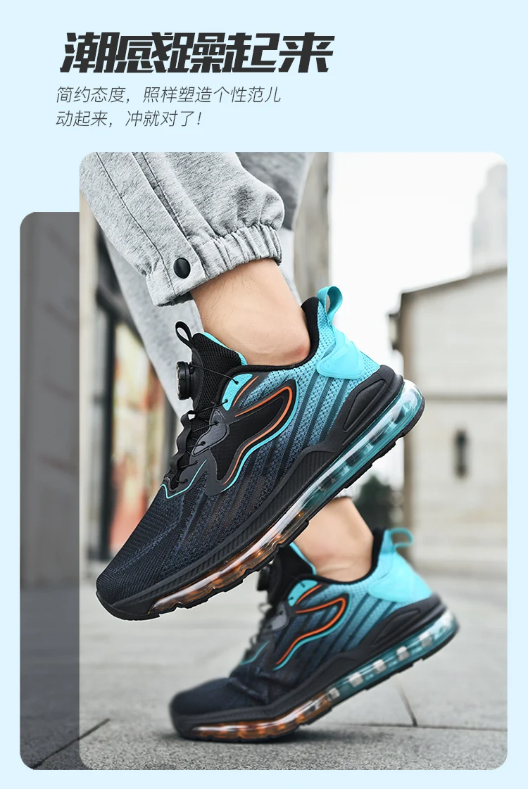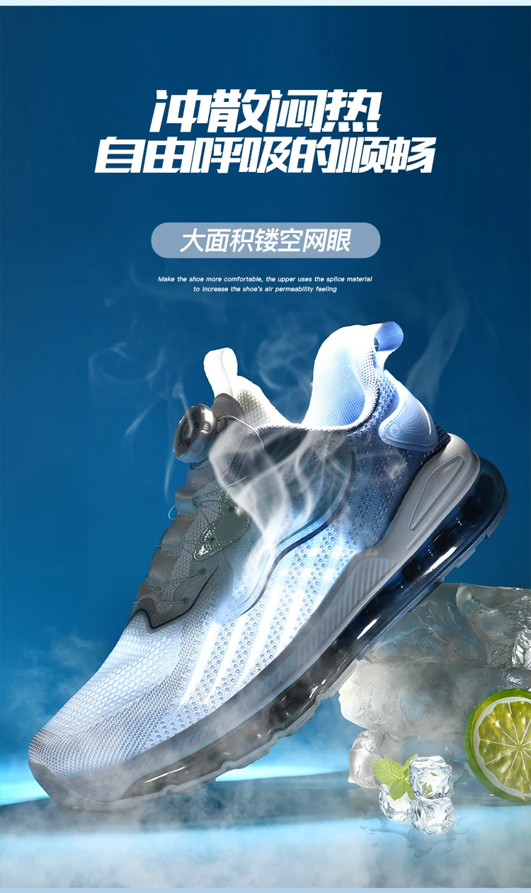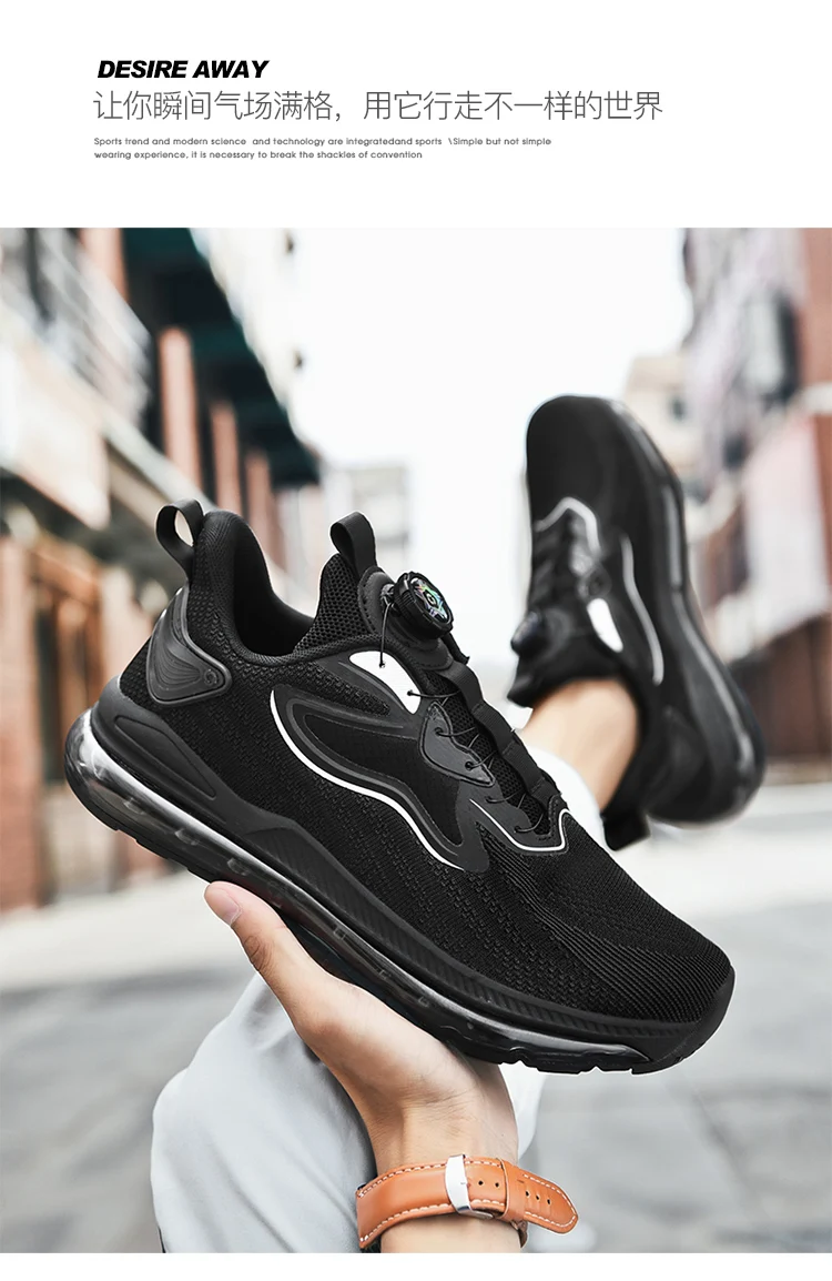 Rotating Button Knitted Air Cushion Extra Large Men's Shoes Four Seasons Anti Slip Wear Resistant Sneaker Outdoor Running Shoes