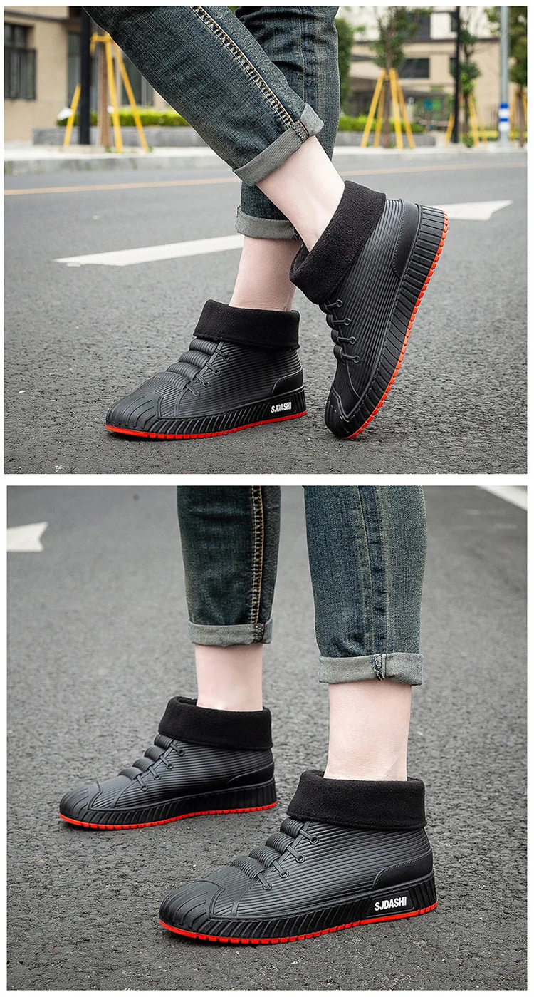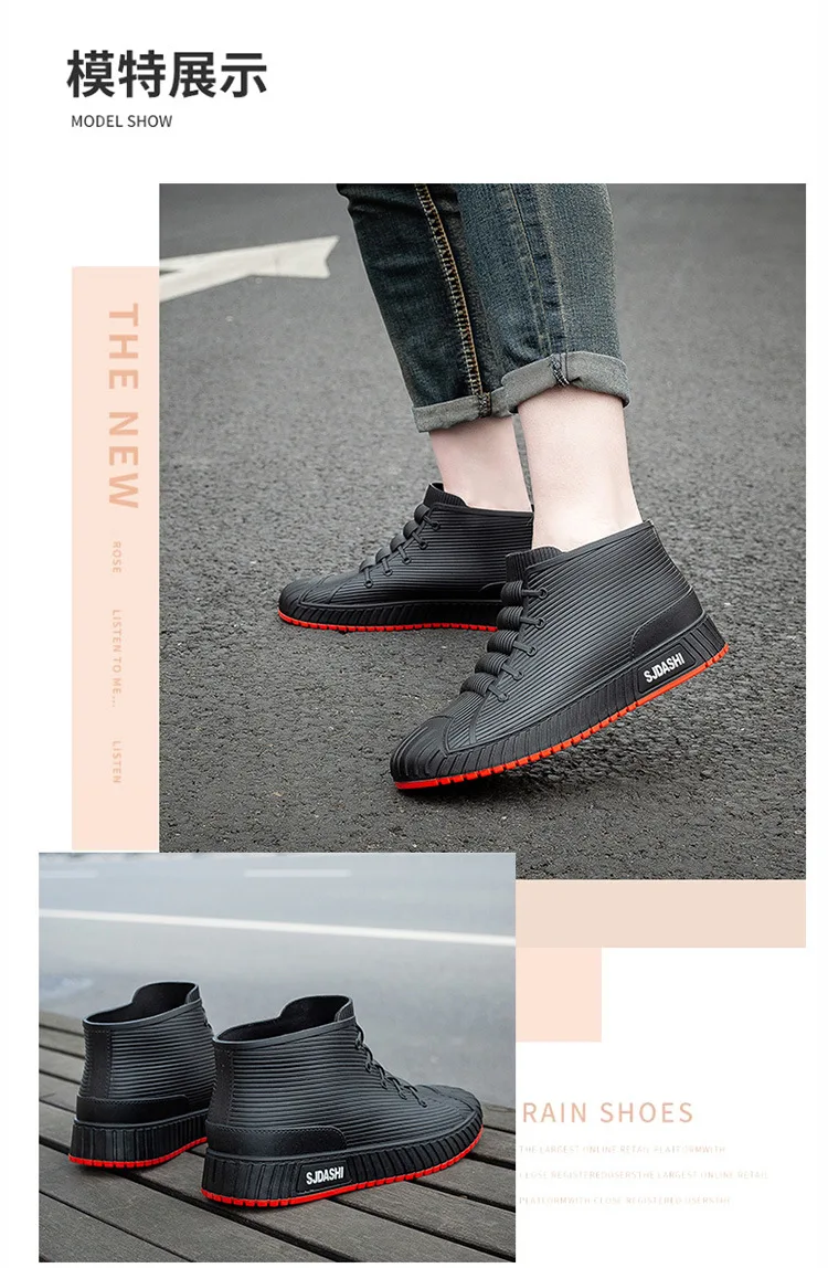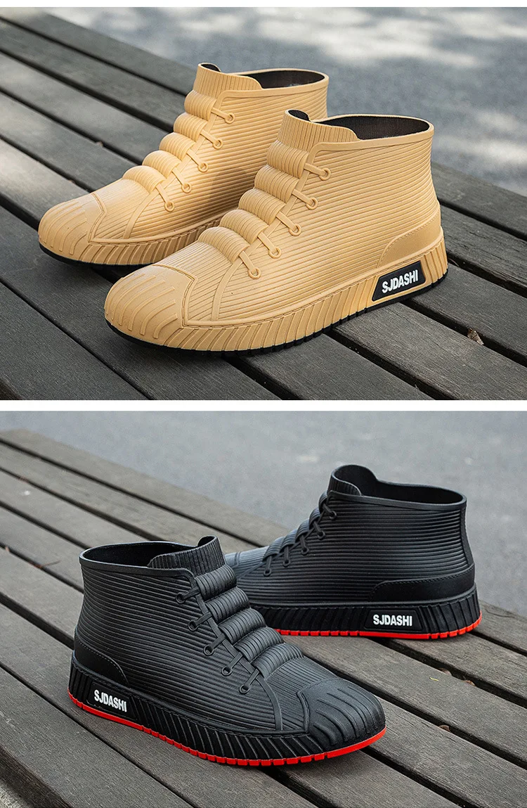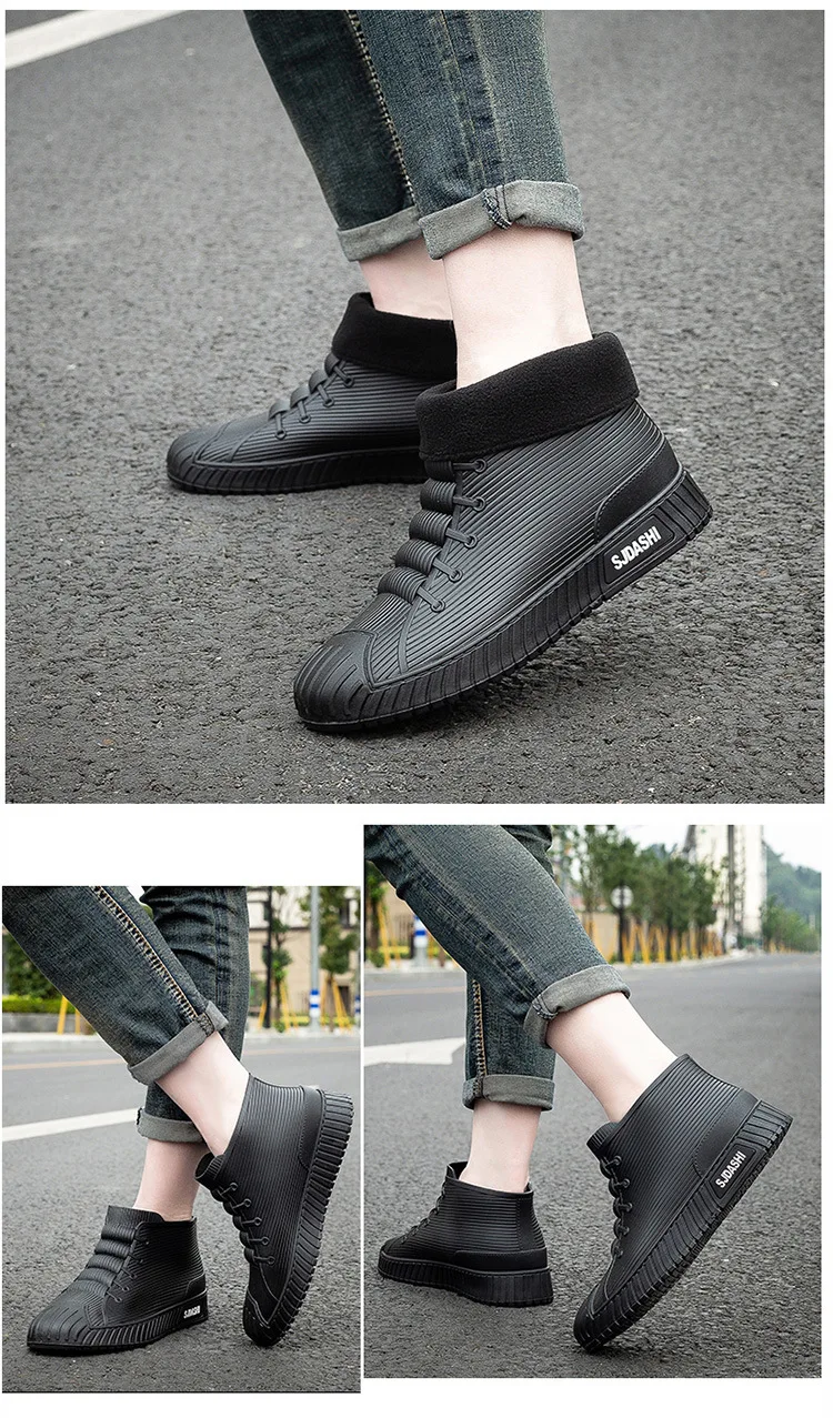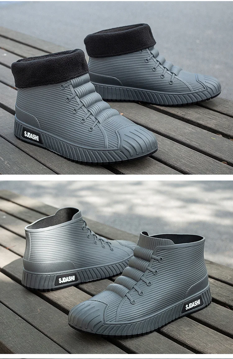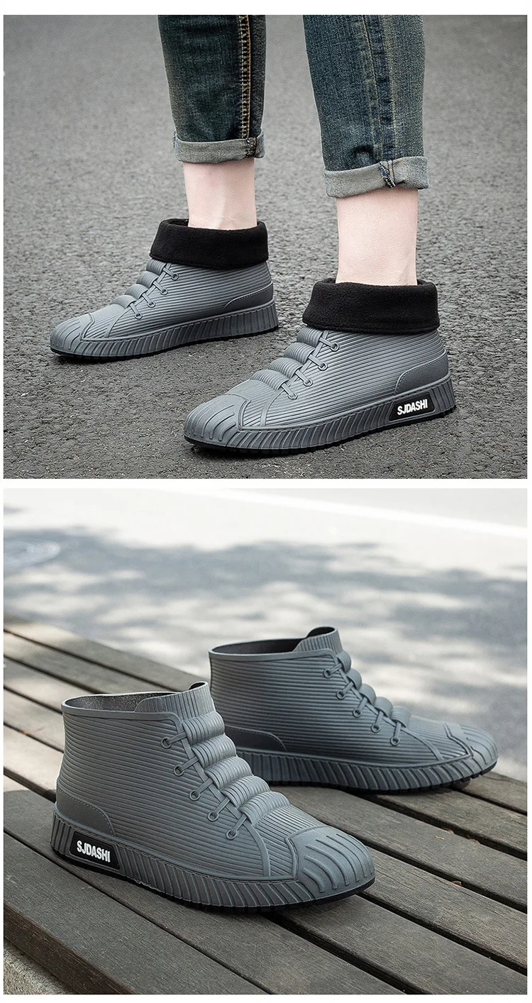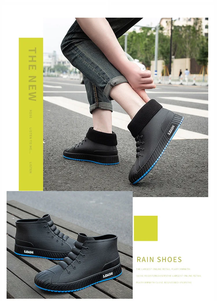 Rubber Men Rain Boots Fashion Slip on Mid-calf Gumboots for Men on-slip Fishing Shoe Platform Outdoor Men Shoe botas para lluvia
