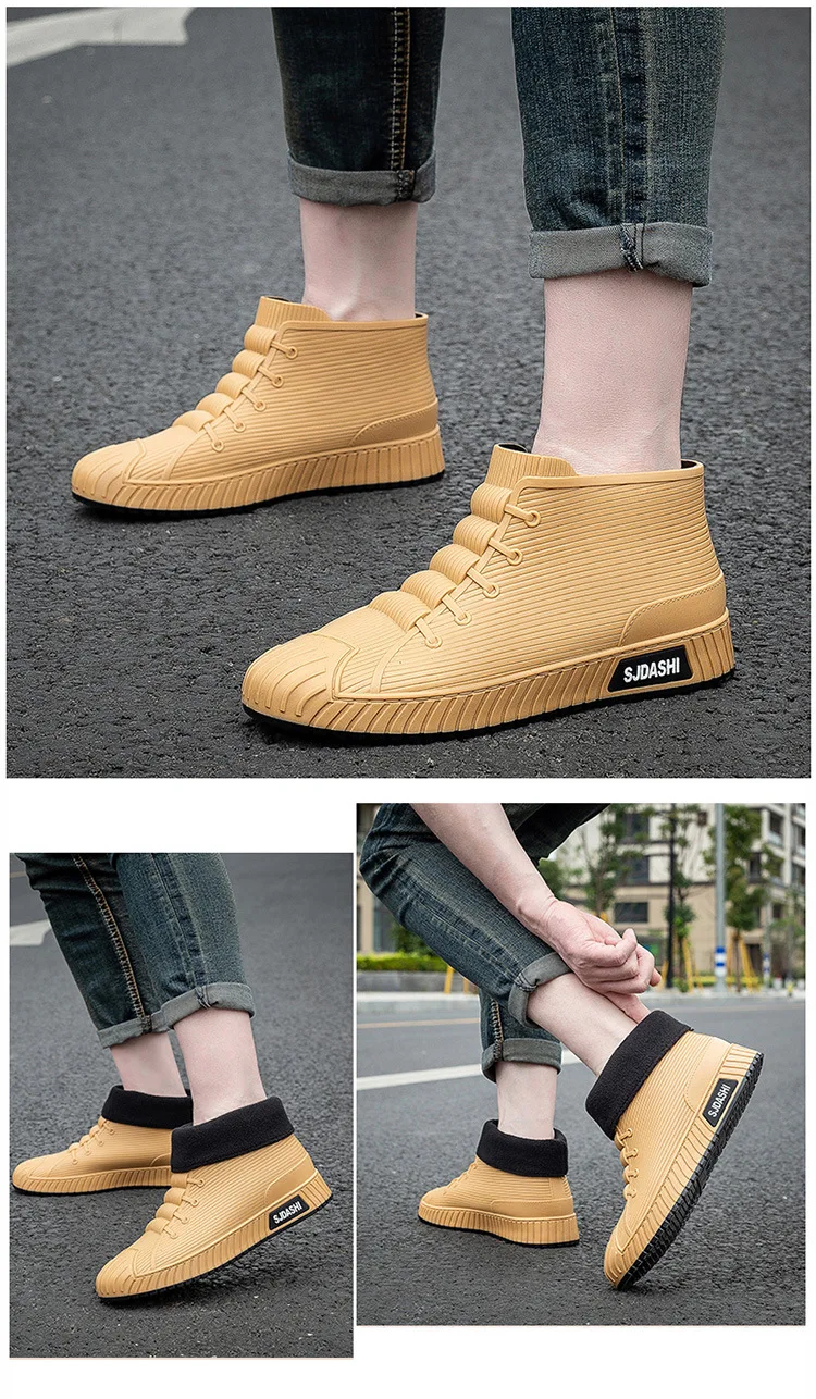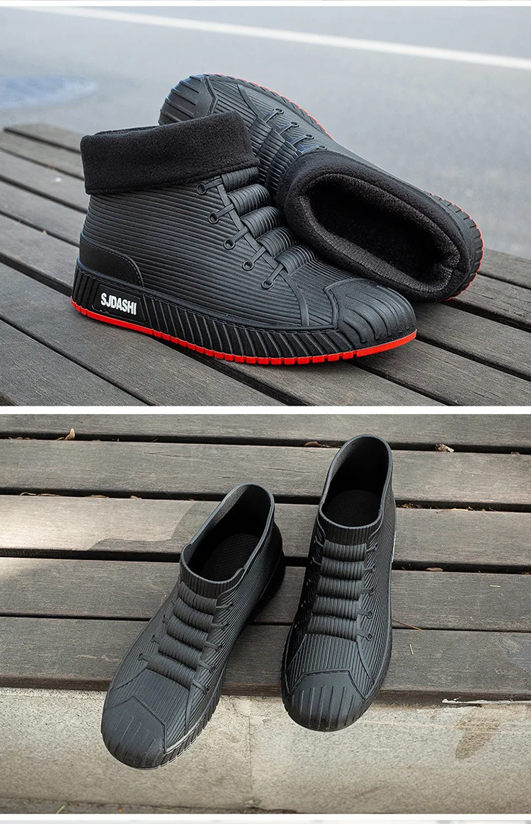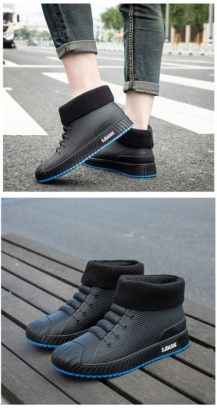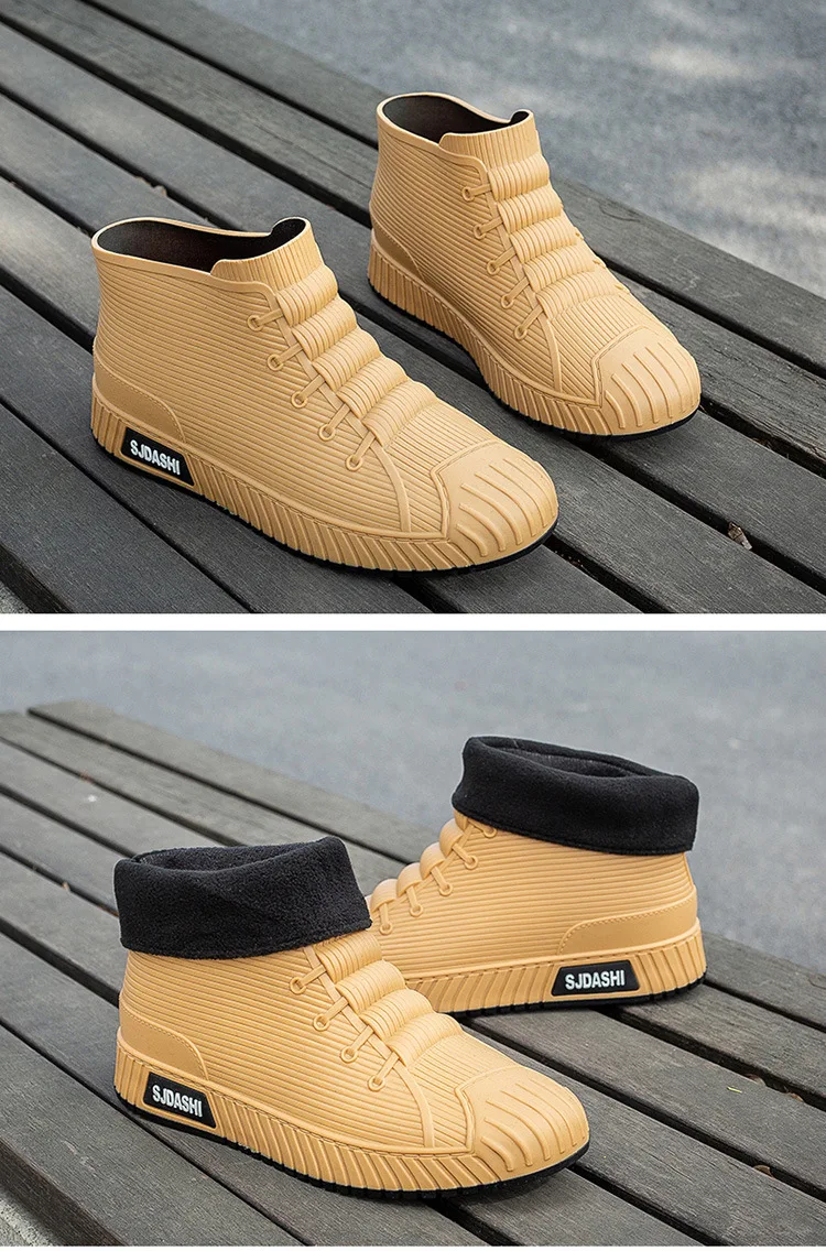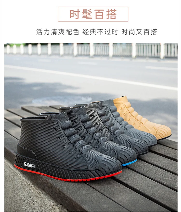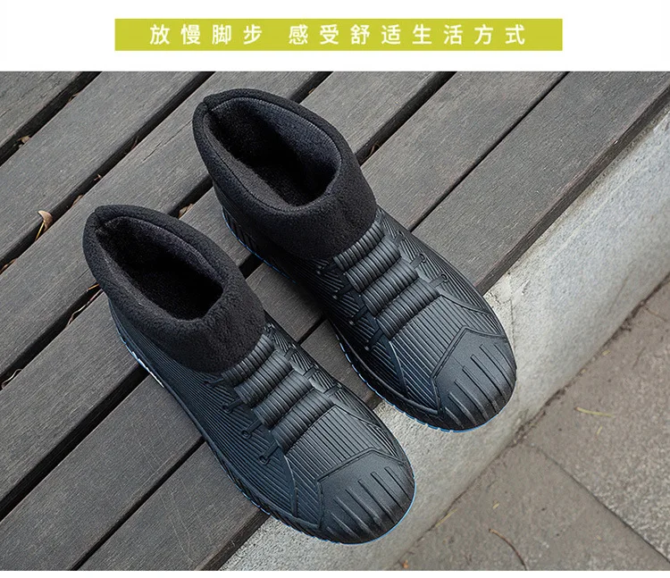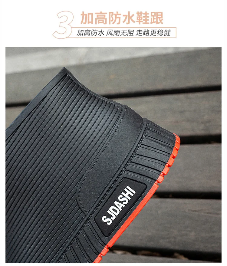Rubber Men Rain Boots Fashion Slip on Mid-calf Gumboots for Men on-slip Fishing Shoe Platform Outdoor Men Shoe botas para lluvia