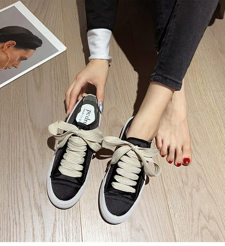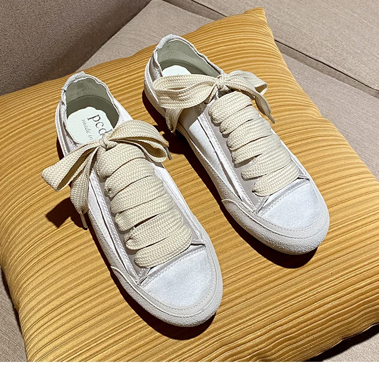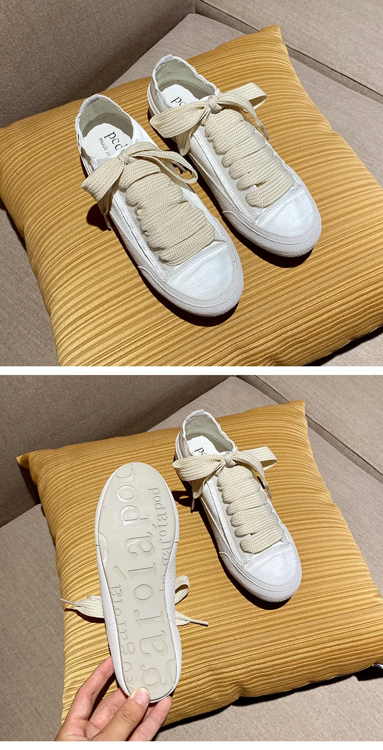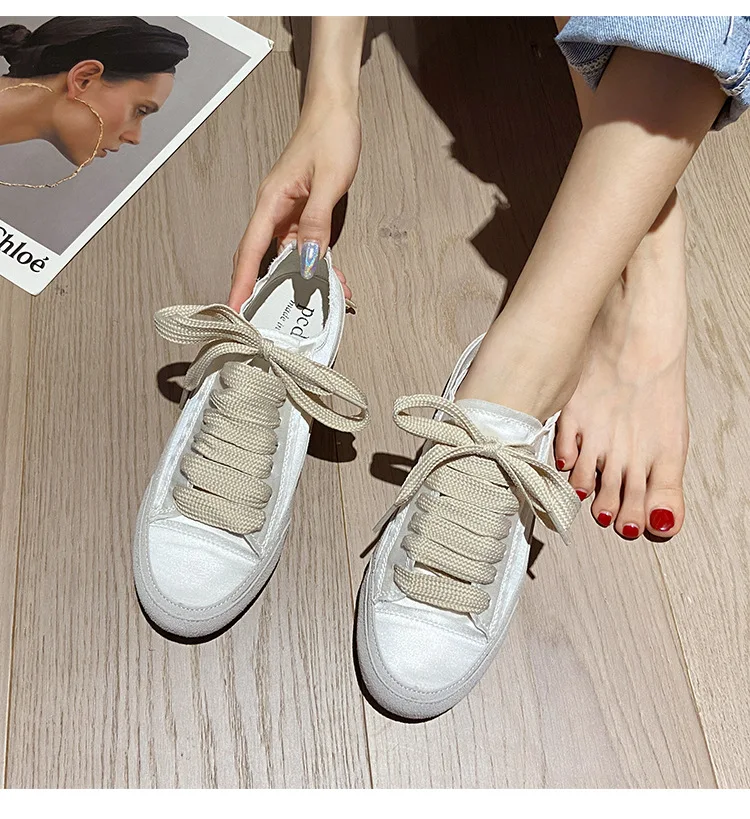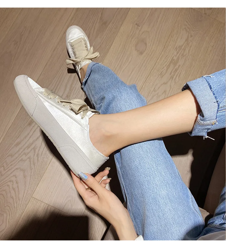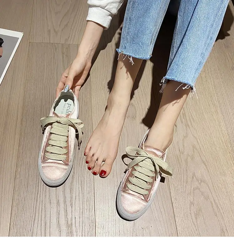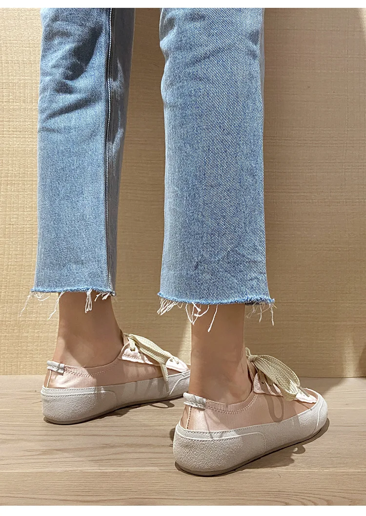 Satin White Flats Shoes Women New Fashion Canvas Casual Sneakers For Women