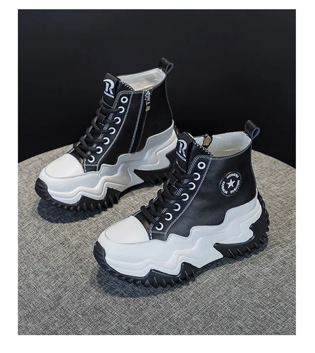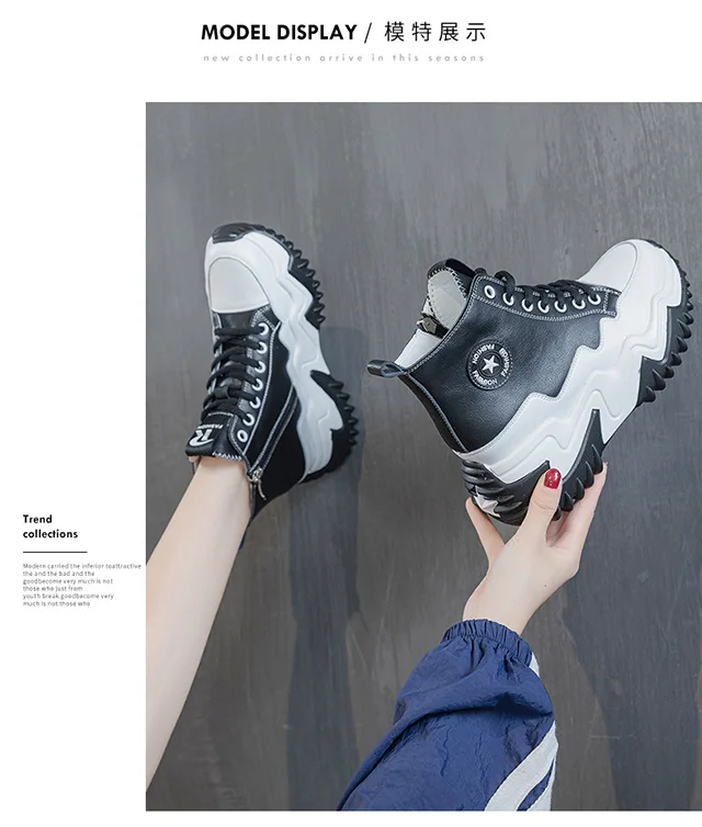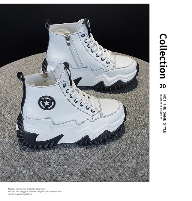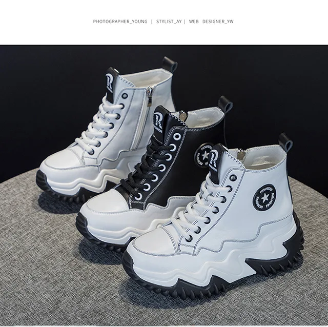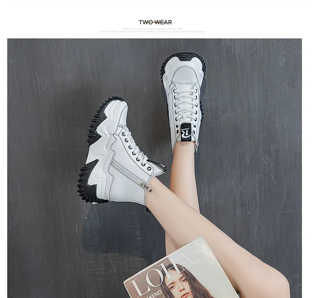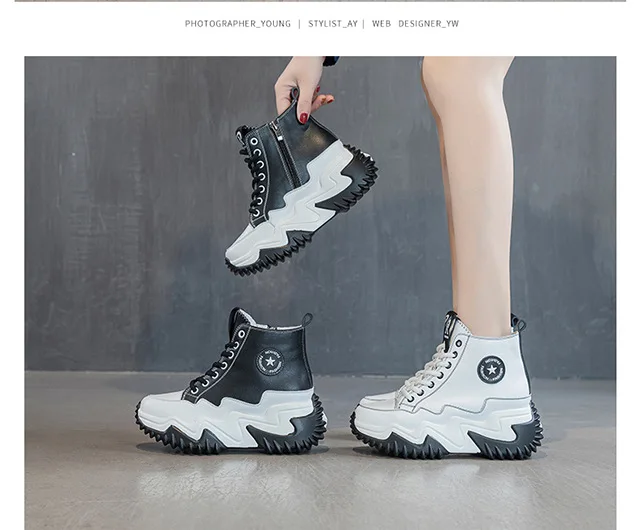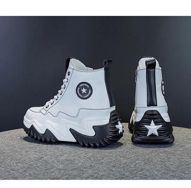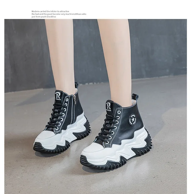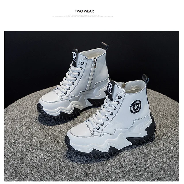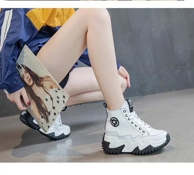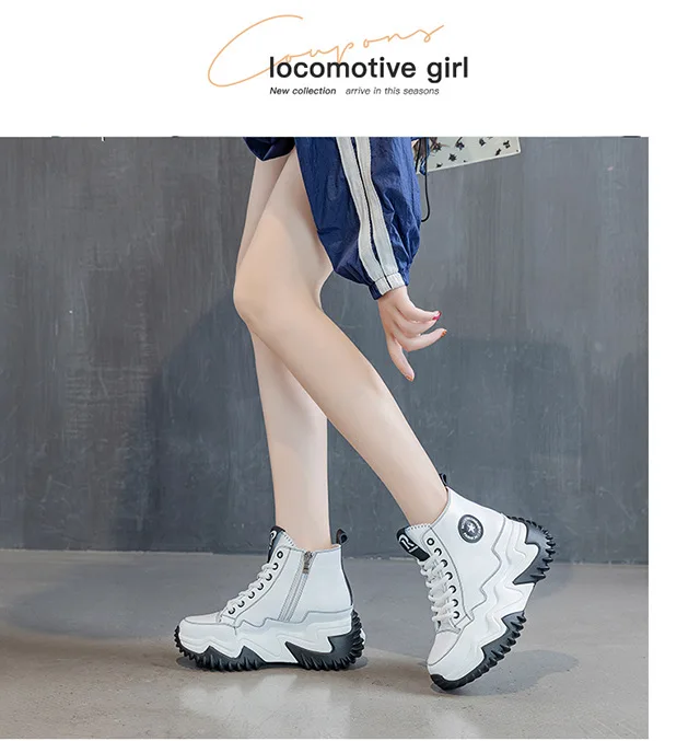 Shoes Woman Women's Sports Shoes 8CM Increase Leather White Shoe Autumn Casual Sneaker Platform Women Running Shoes Ladies Shoes