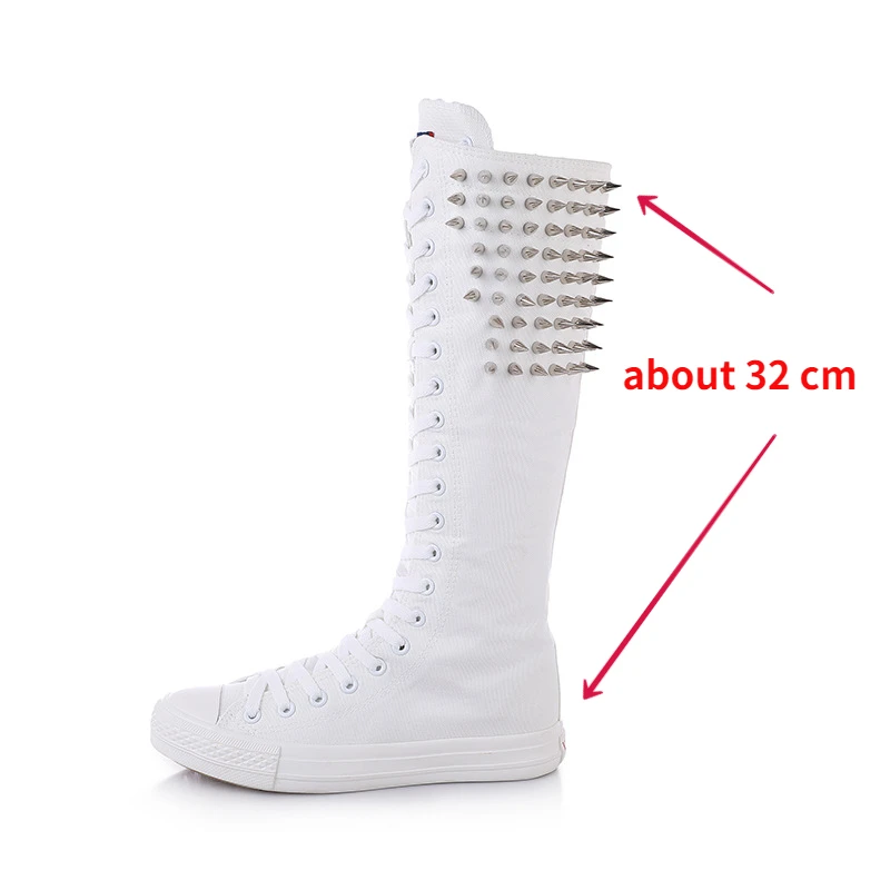 Spiked Rivet Shoes High Top Side Zipper Student Canvas Shoes Punk Boots High Tube Casual Shoes Sneakers Tenis Feminino