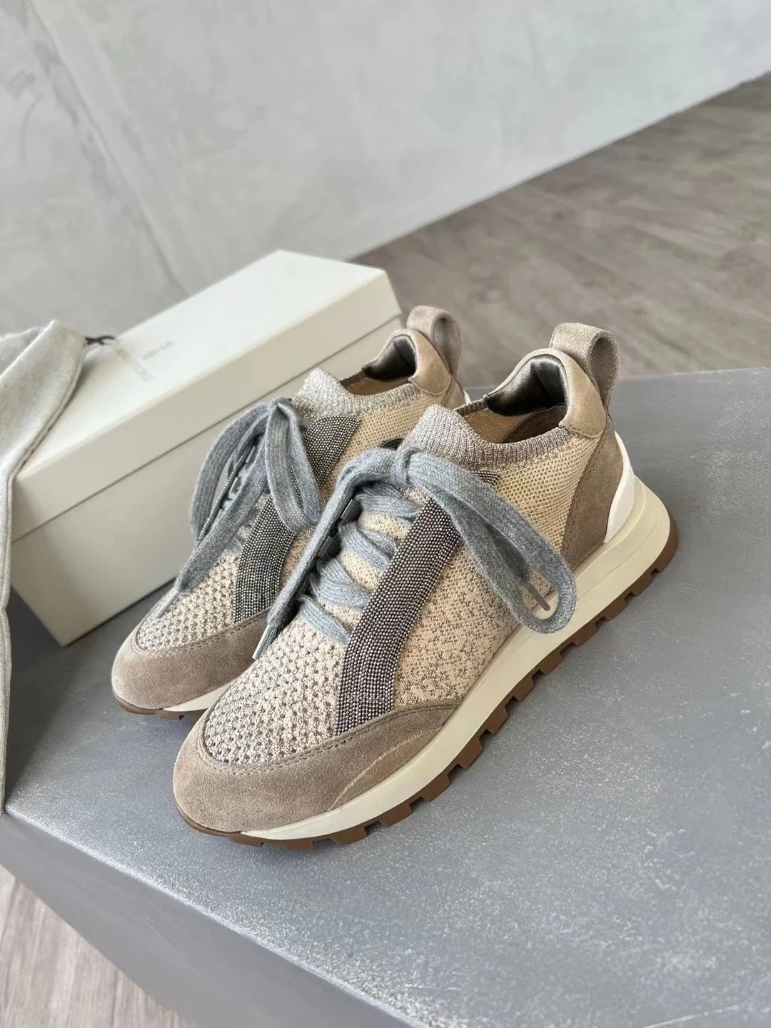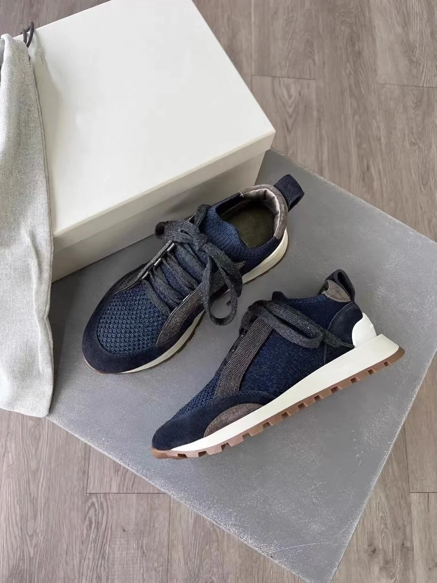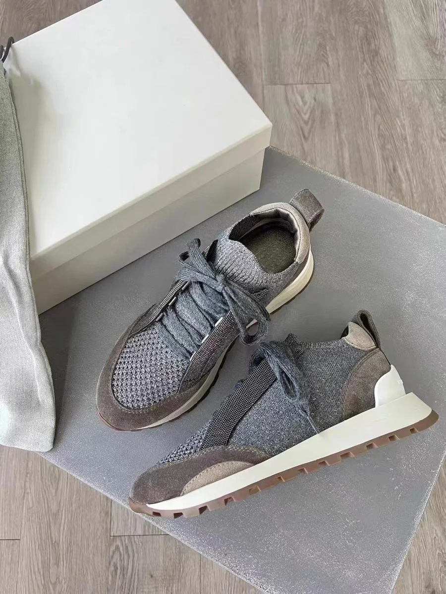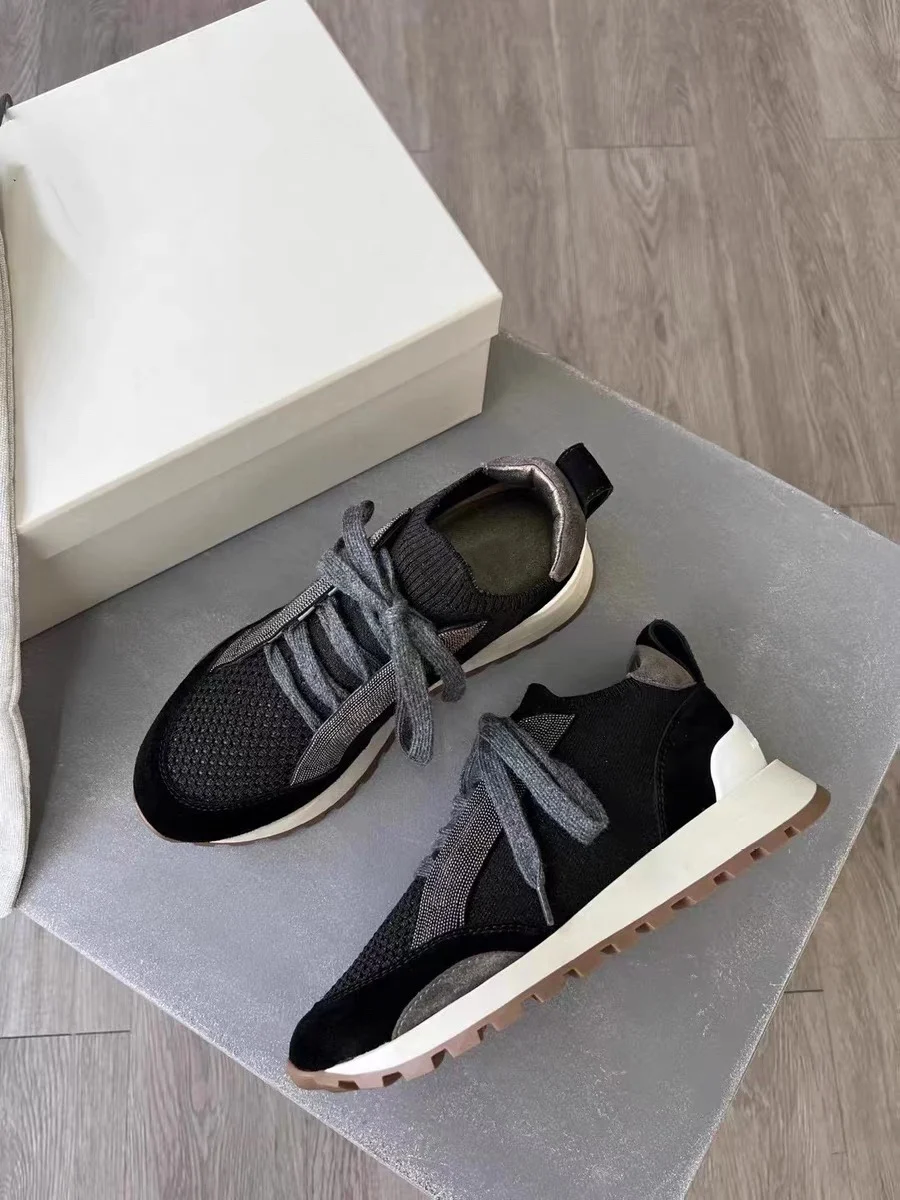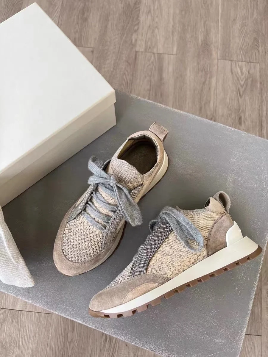 Spring Fall B*C Women's Sneakers Real Leather Shine Bead Chain Woman Casual Running Shoes