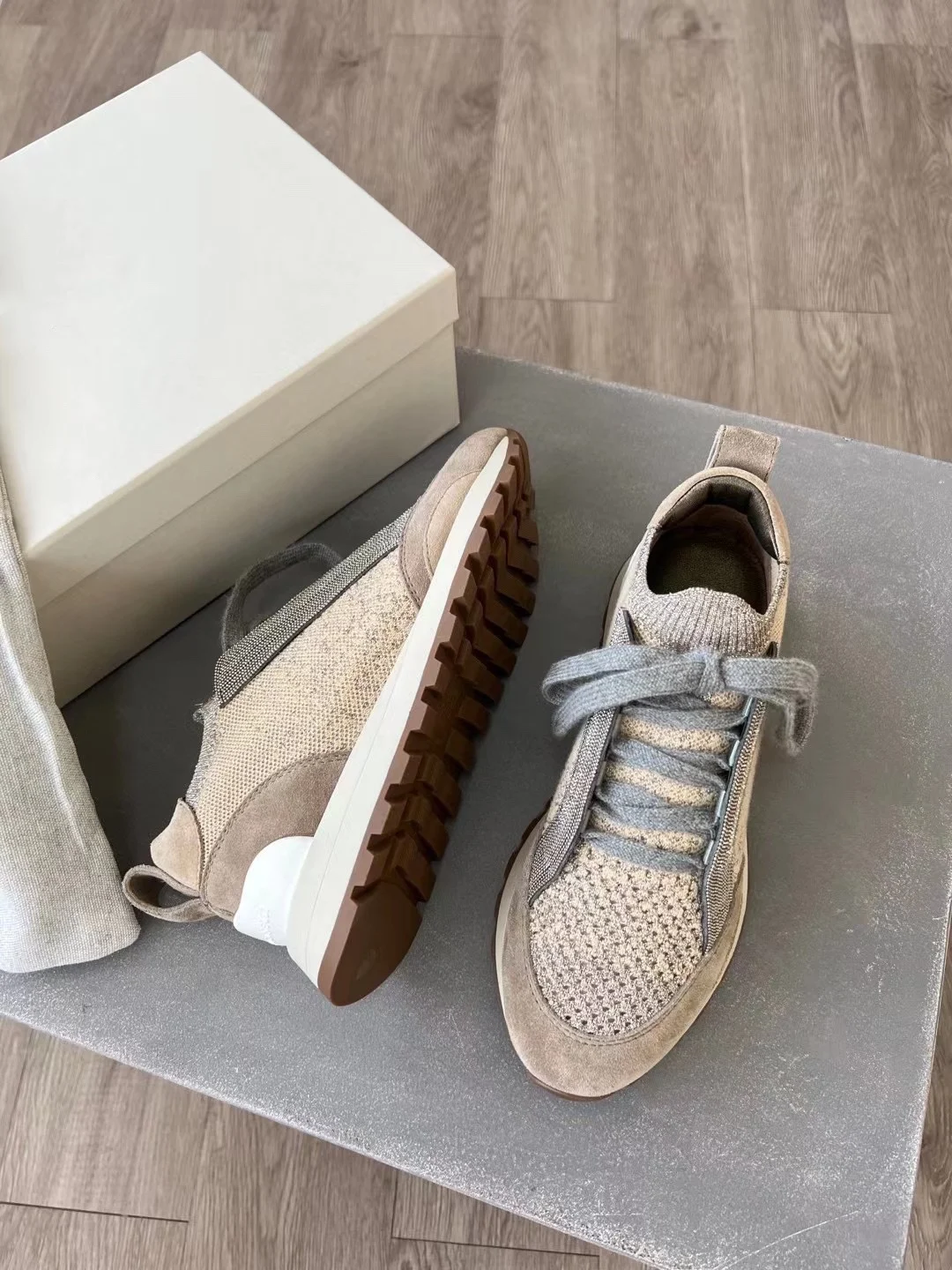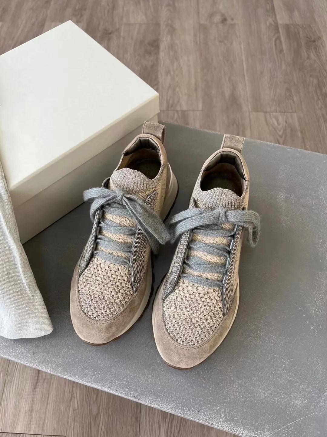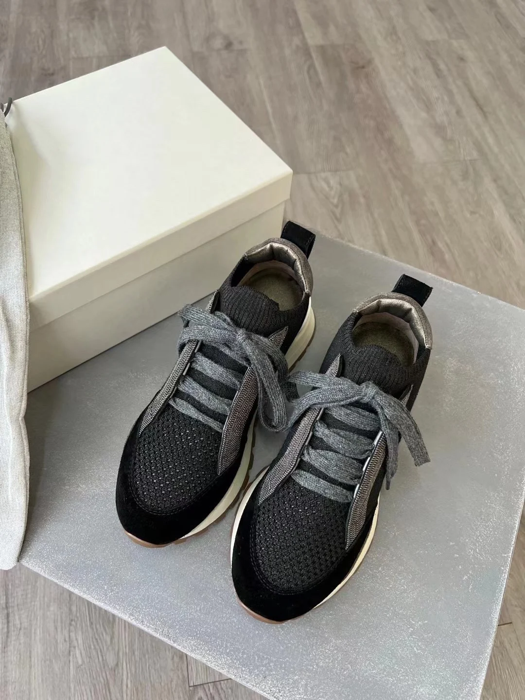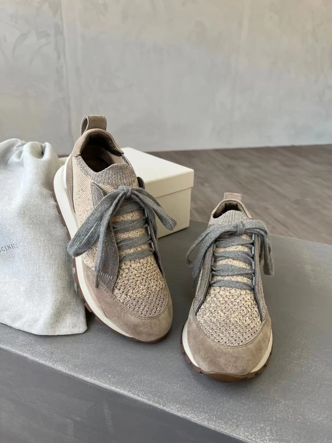 Spring Fall B*C Women's Sneakers Real Leather Shine Bead Chain Woman Casual Running Shoes