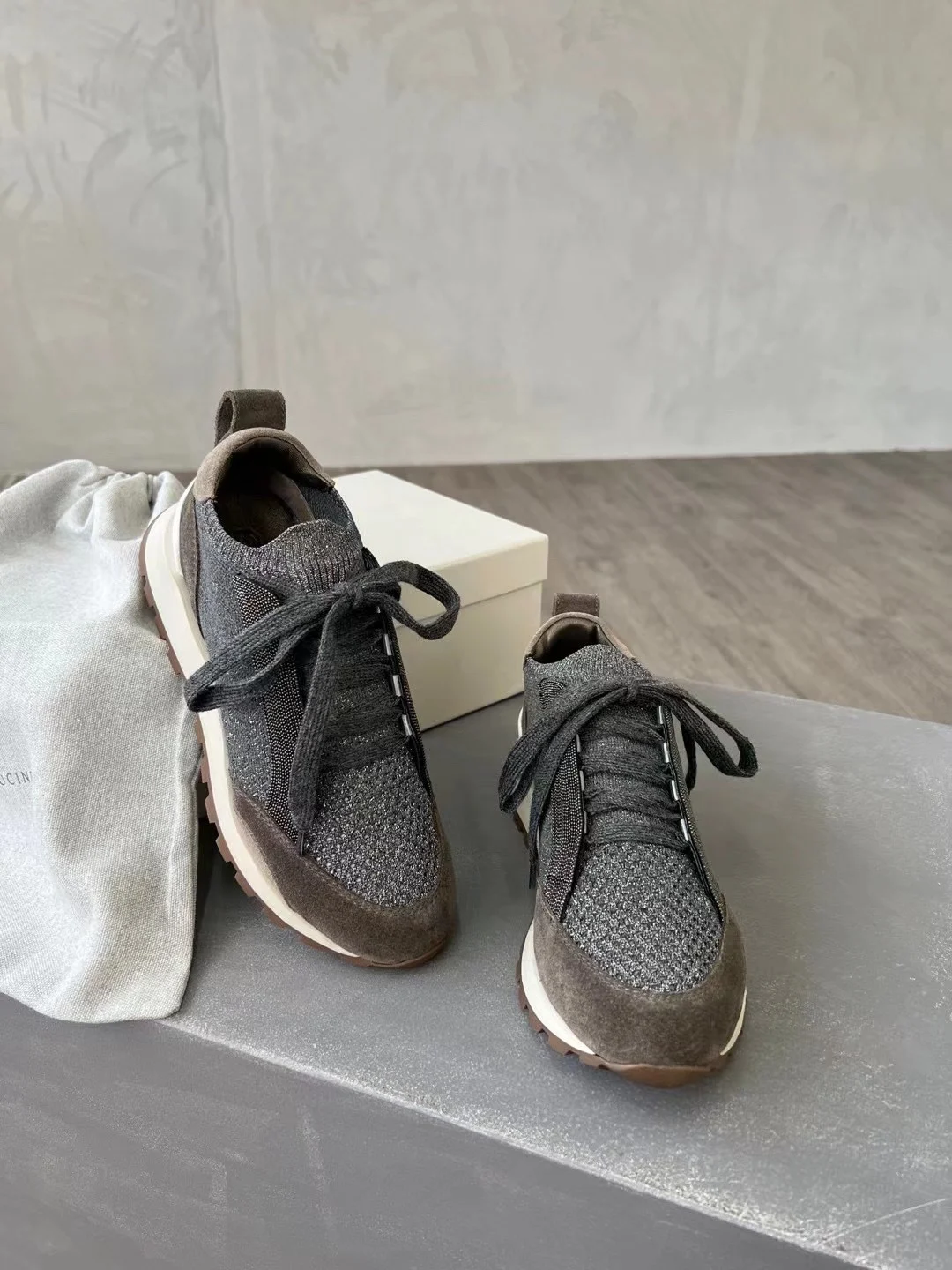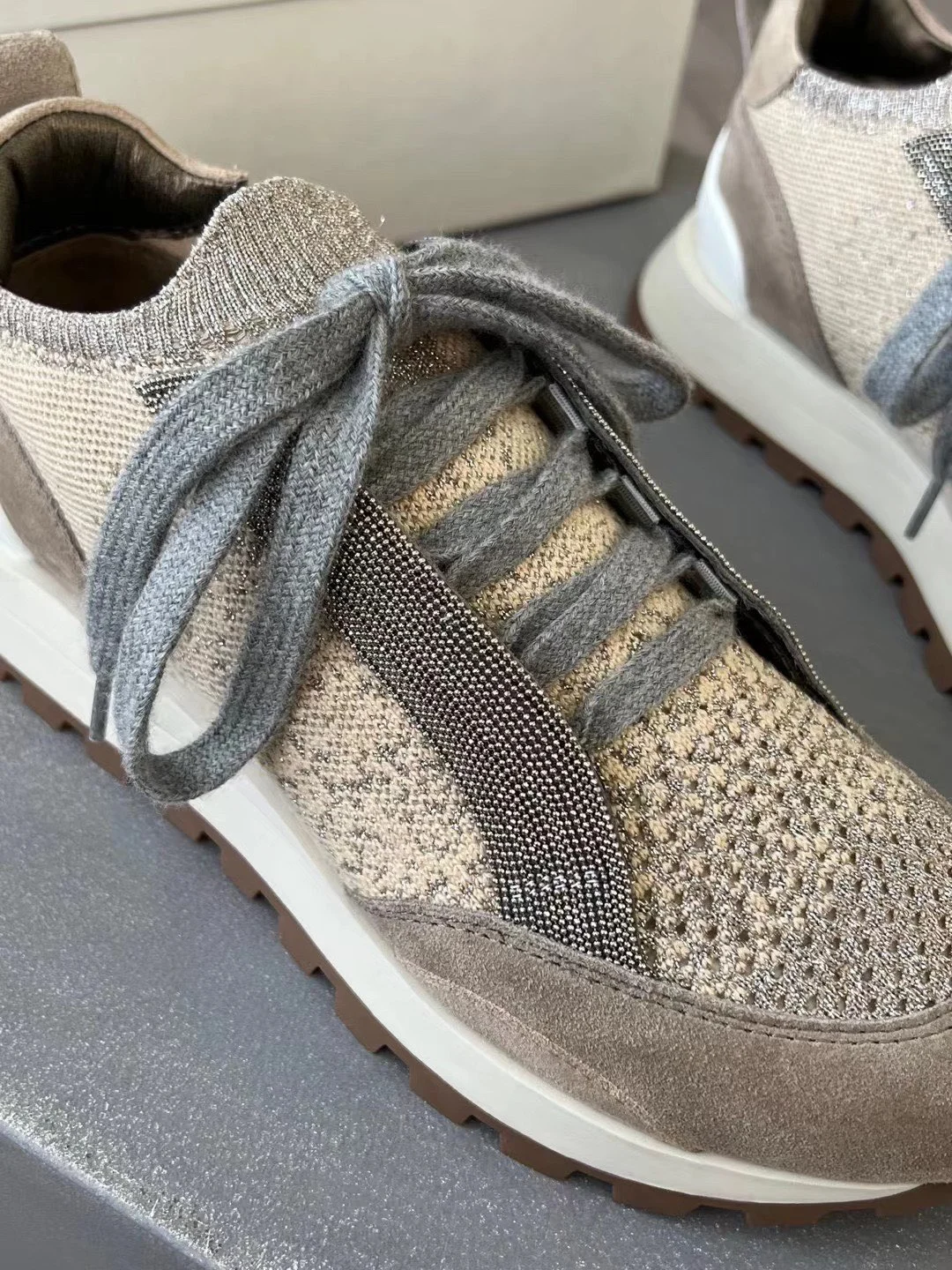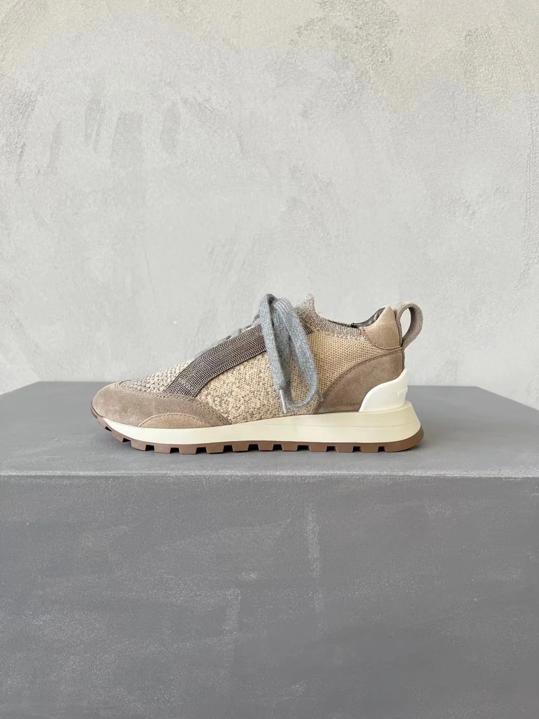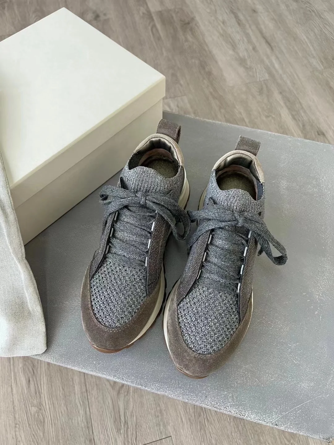 Spring Fall B*C Women's Sneakers Real Leather Shine Bead Chain Woman Casual Running Shoes