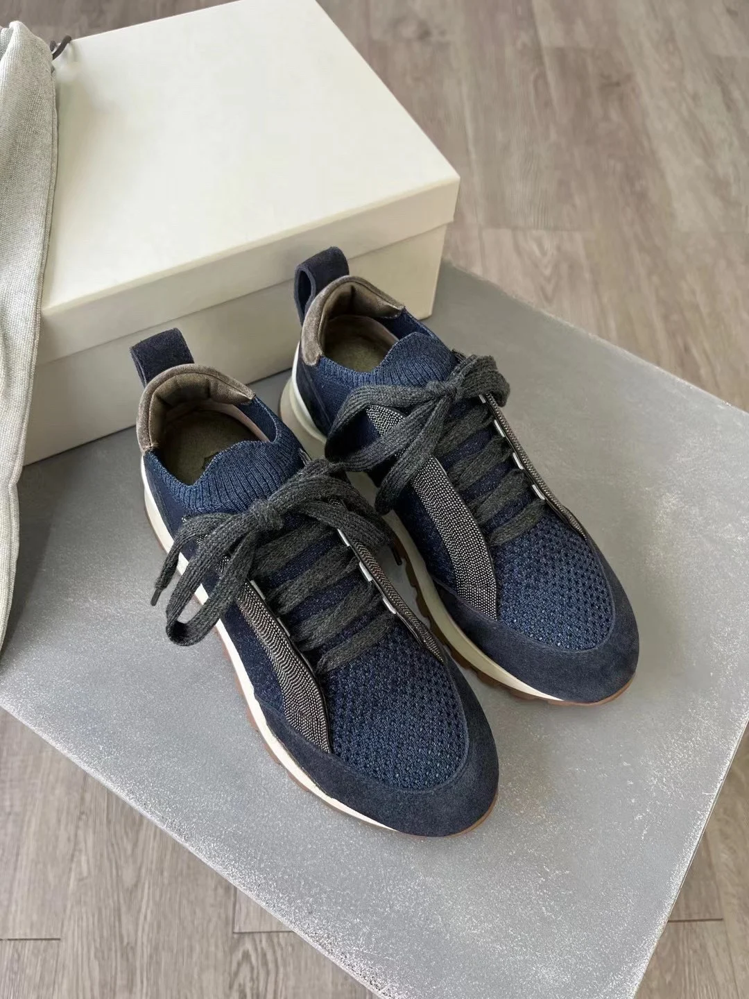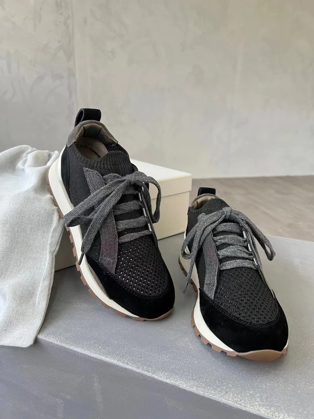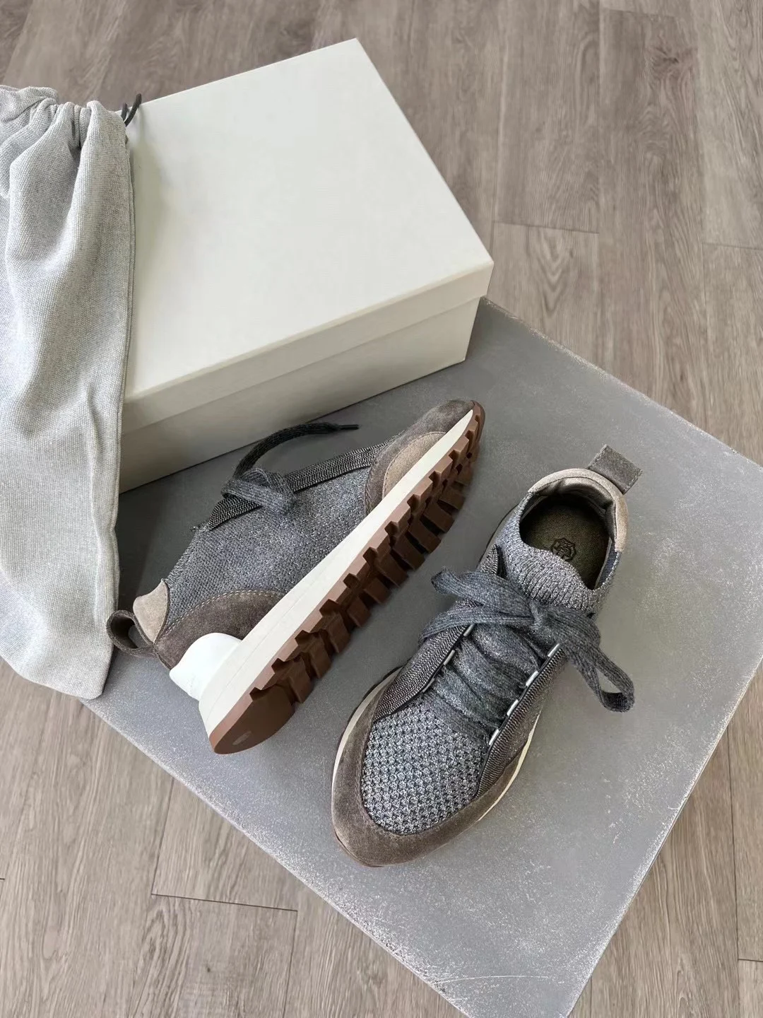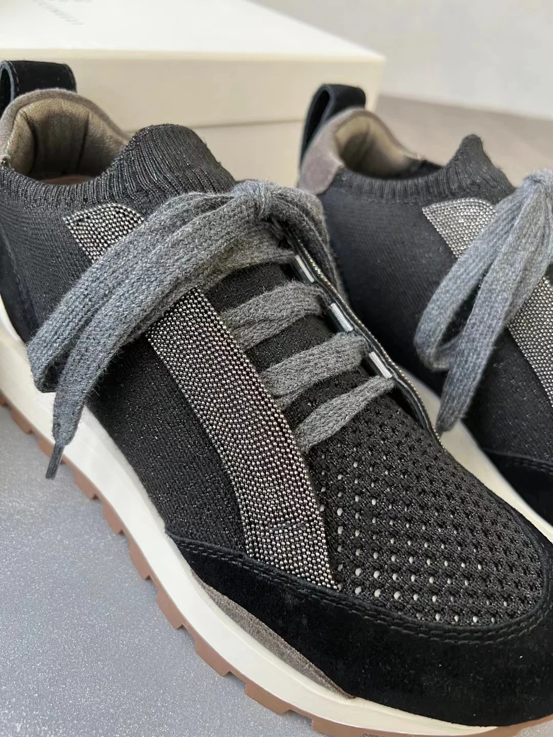 Spring Fall B*C Women's Sneakers Real Leather Shine Bead Chain Woman Casual Running Shoes