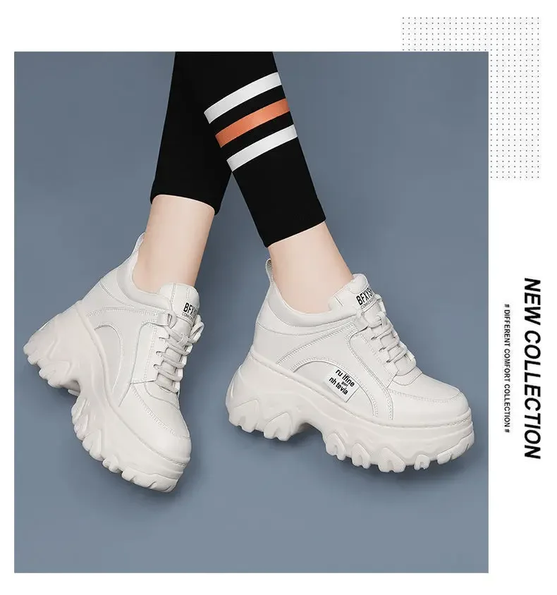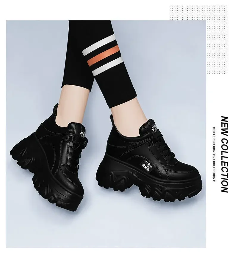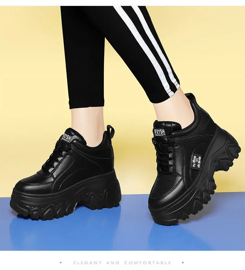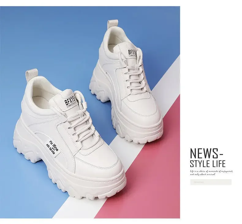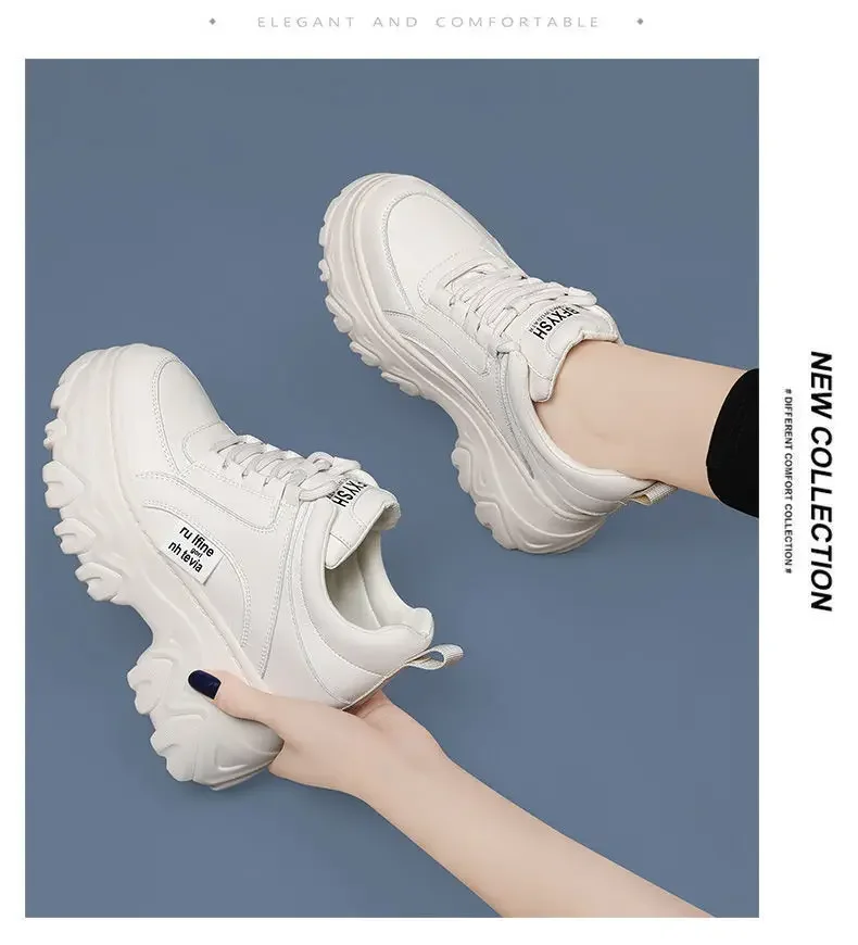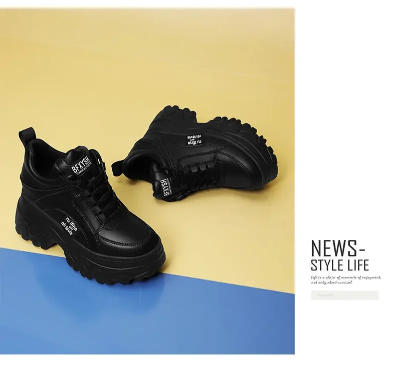 White Black Chunky Sneakers Women Spring Autumn Thick Bottom Dad Shoes Woman Fashion PU Leather Platform Sneakers Ladies2024