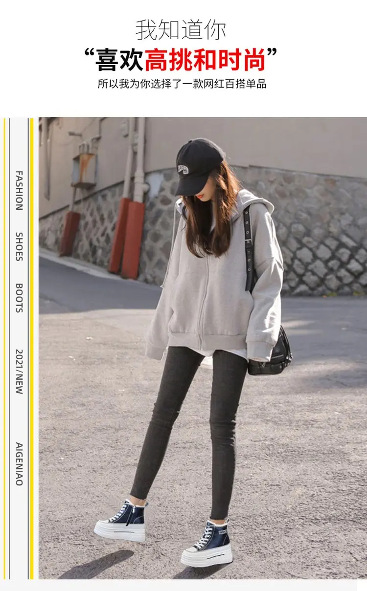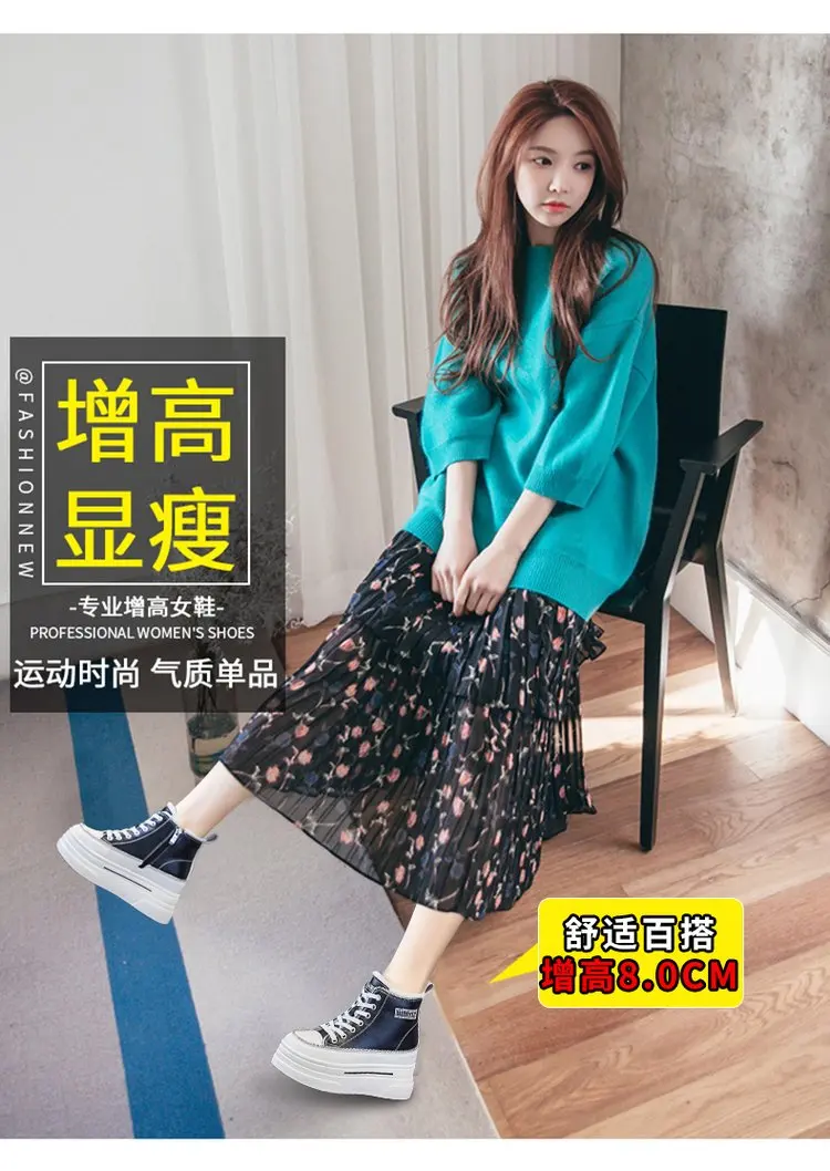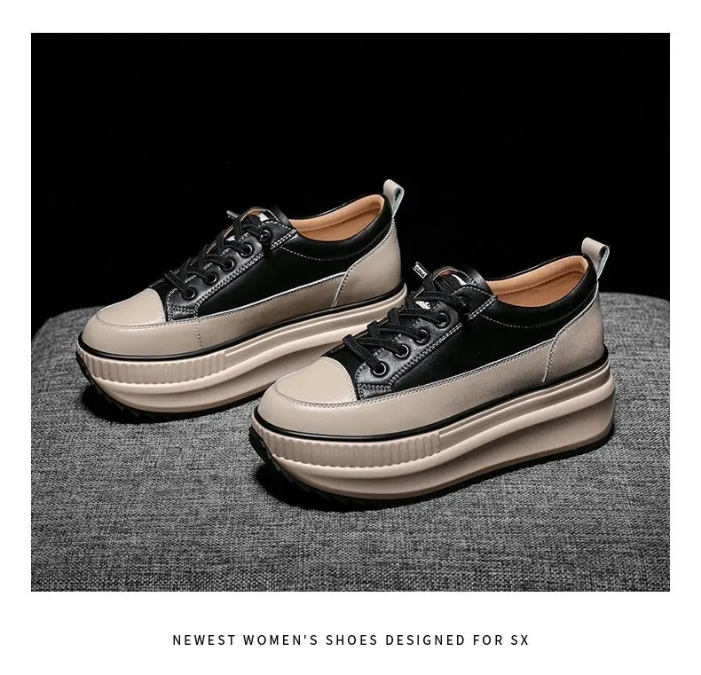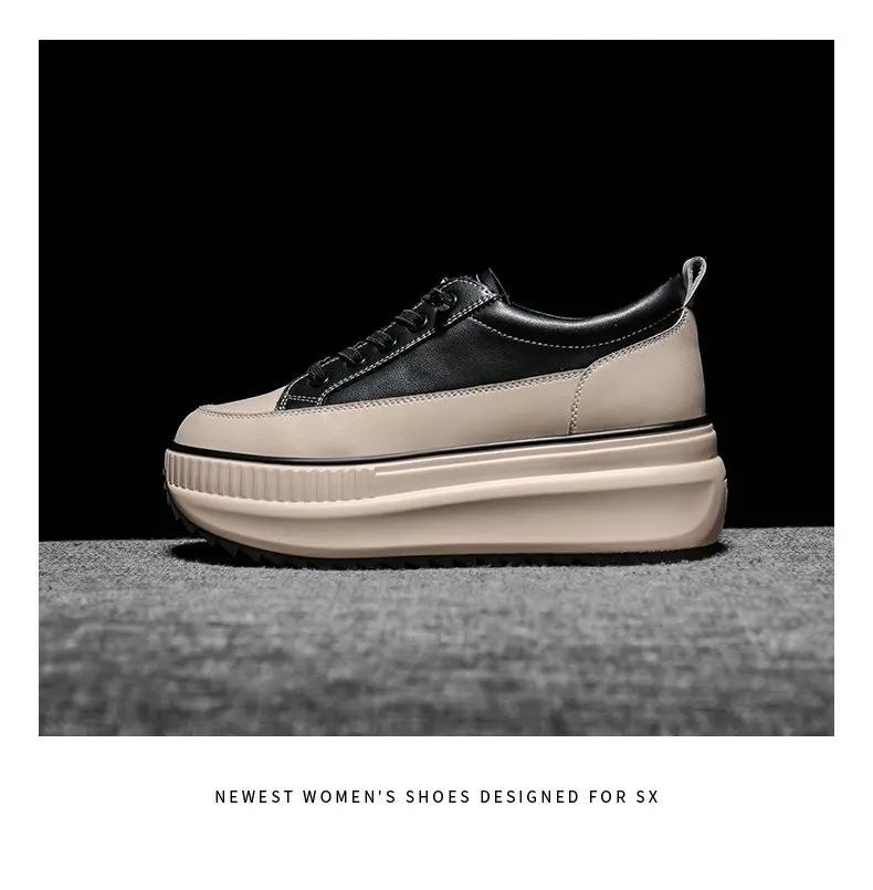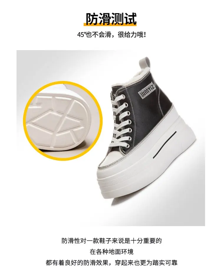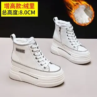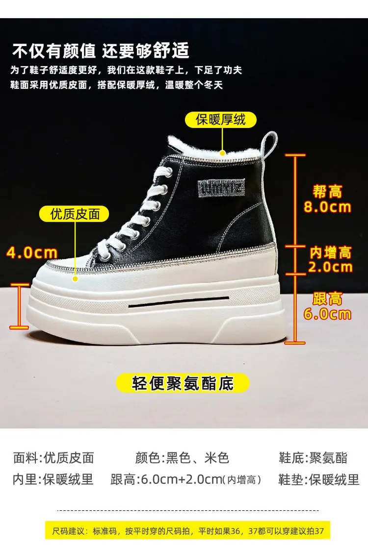Winter Chunky Sneakers Warm Casual Vulcanized Shoes Woman High Platform Boots 7CM Lace Up High Top Leather Sneakers Women Mujer