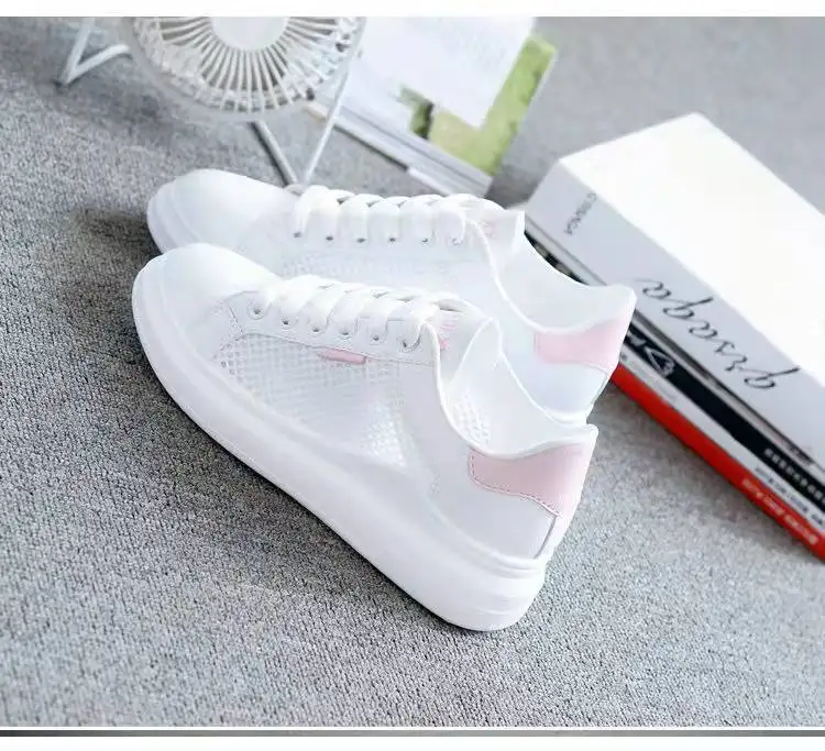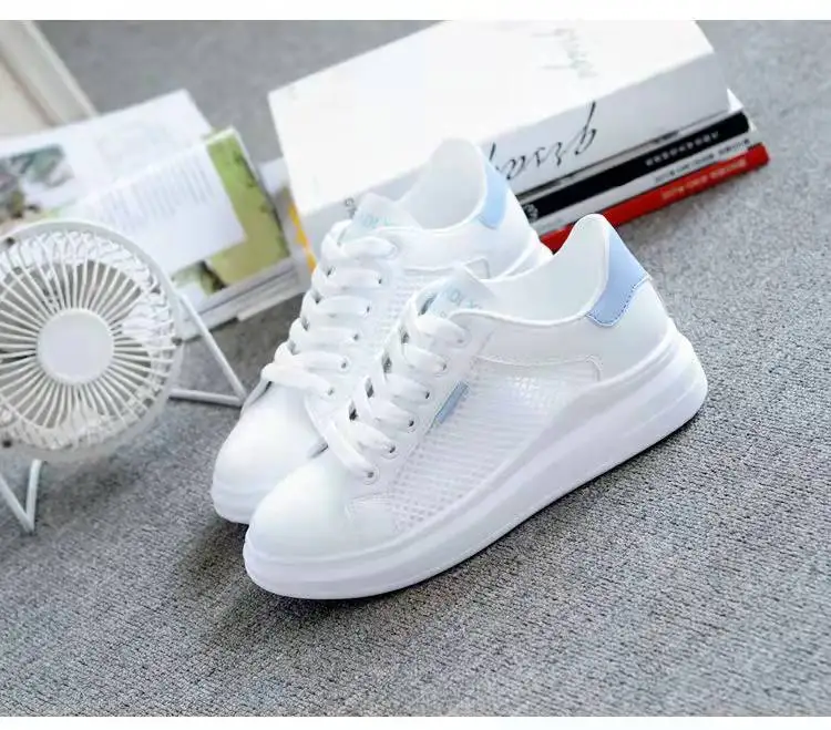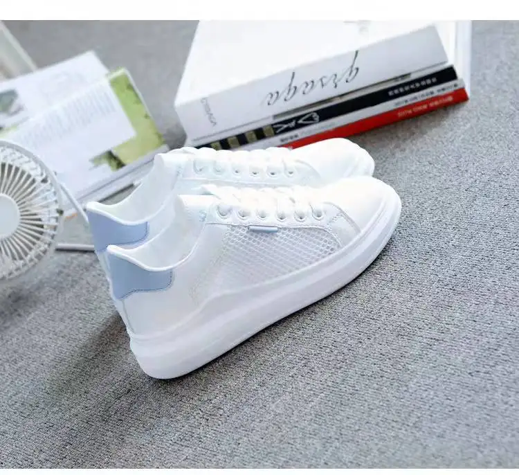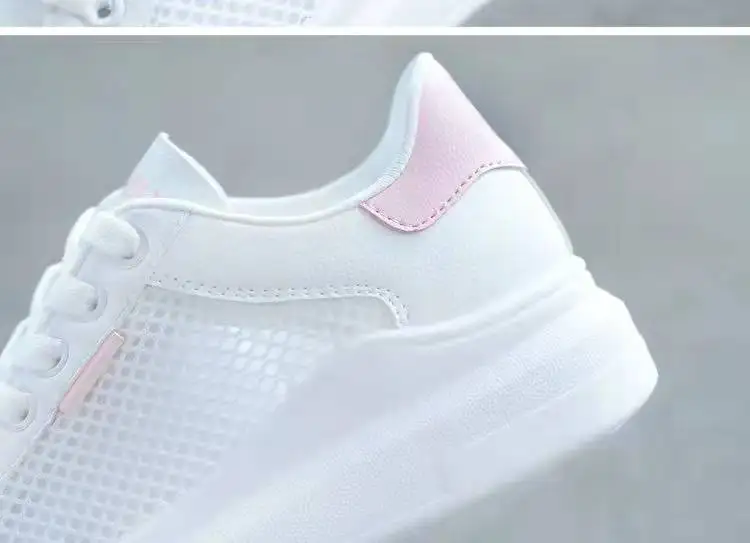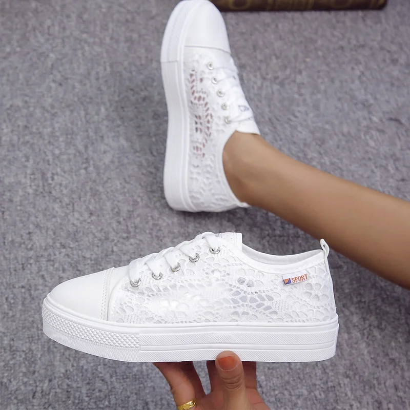 Women Shoes 2022 Fashion Summer Casual White Shoes Cutouts Lace Canvas Hollow Breathable Platform Flat Sneakers Zapatillas Mujer