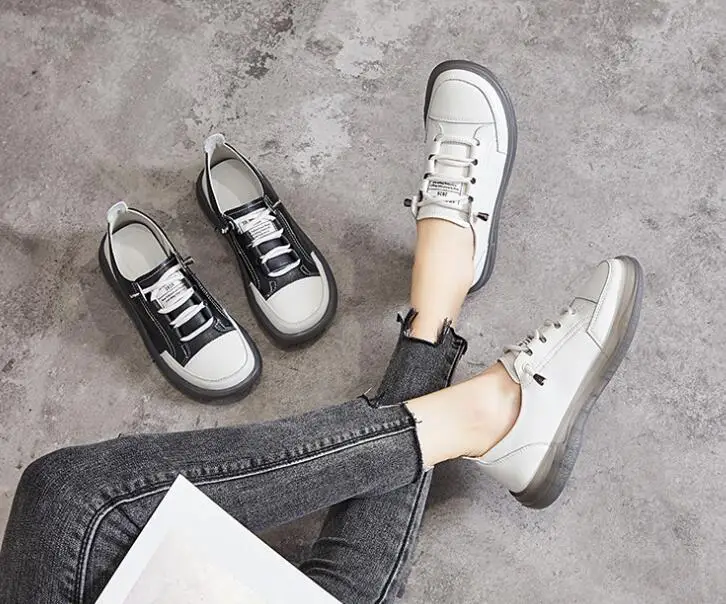 Women Sneakers Shoes Summer Breathable Casual Shoes Ladies Soft Bottom Genuine Leather Flats Sport Shoes