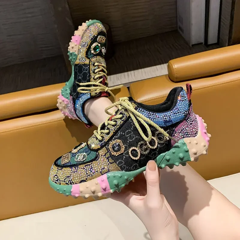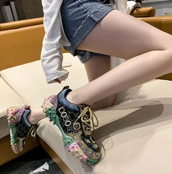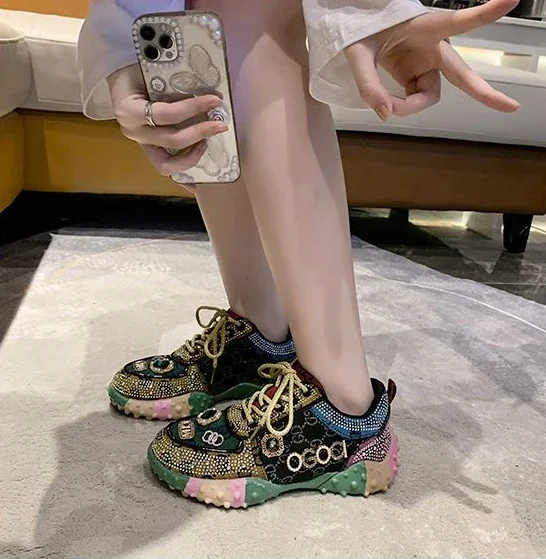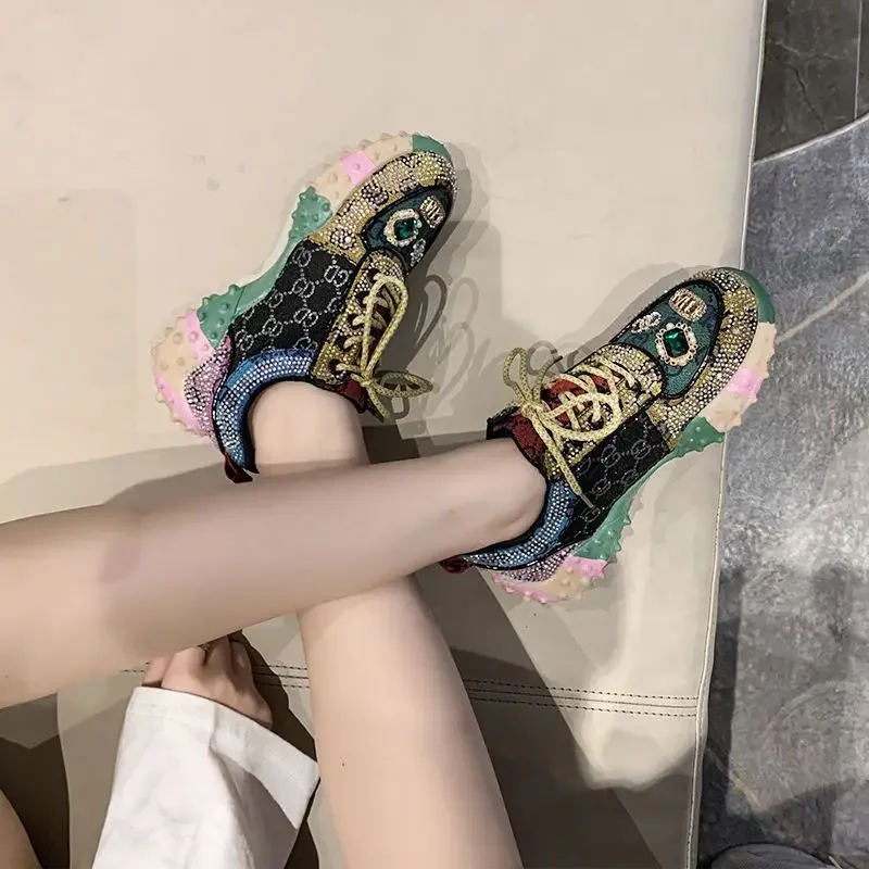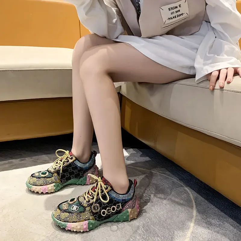 Women Sports Shoes Trend 2023 Rhinestone Sneaker Tennis Female Casual Mirror Luxury Designer Elegant Fashion Shoes for Women