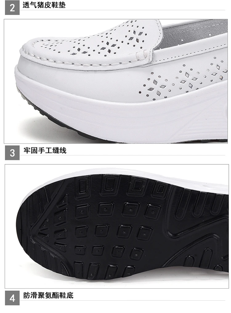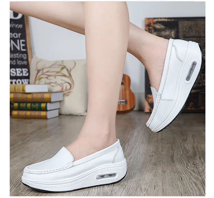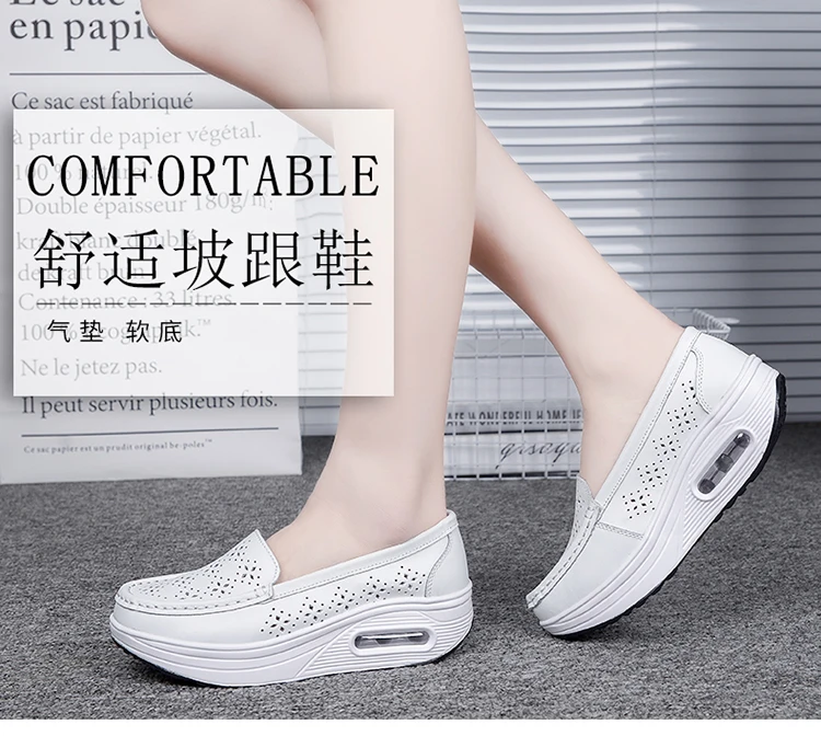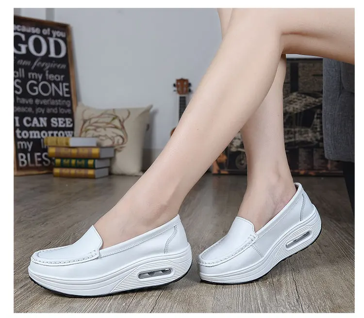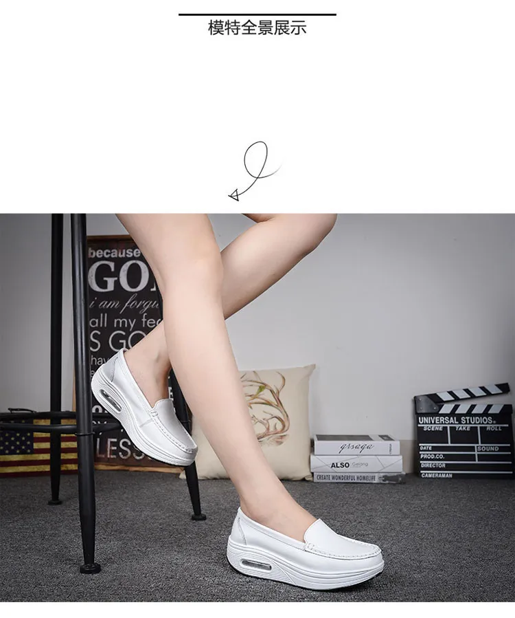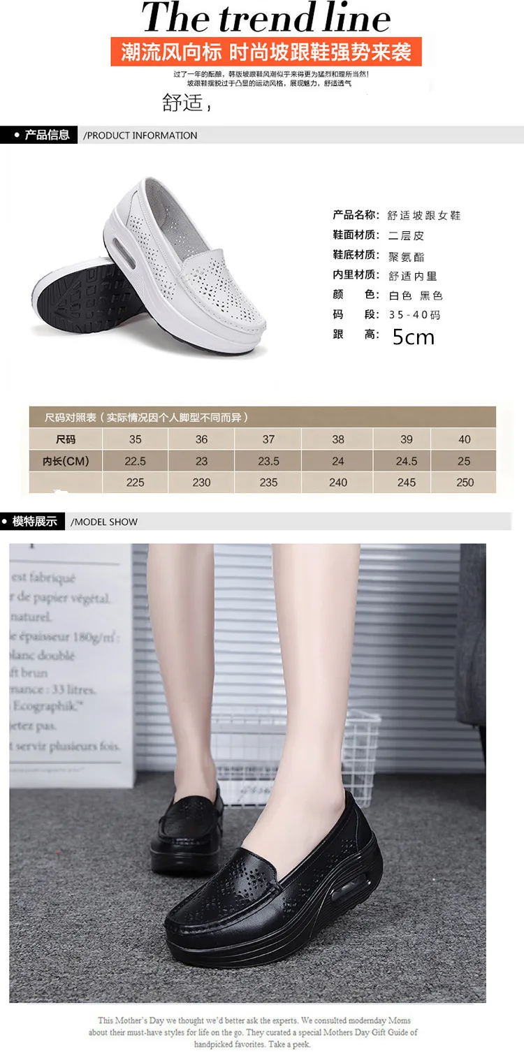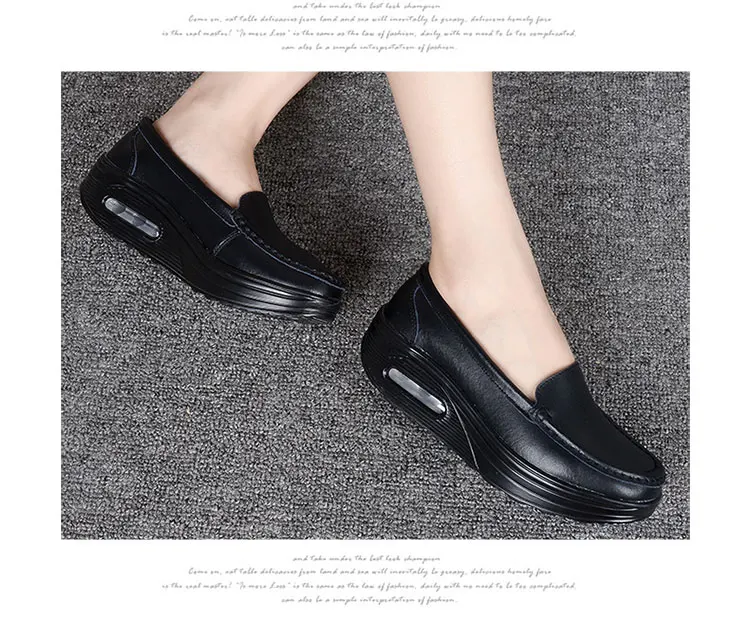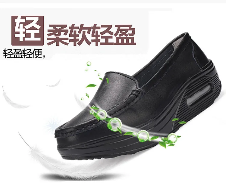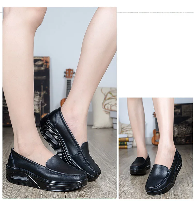 Women's shoes Spring autumn leather soft-soled work shoes women black thick-soled cushion shoes wedge single professional shoes