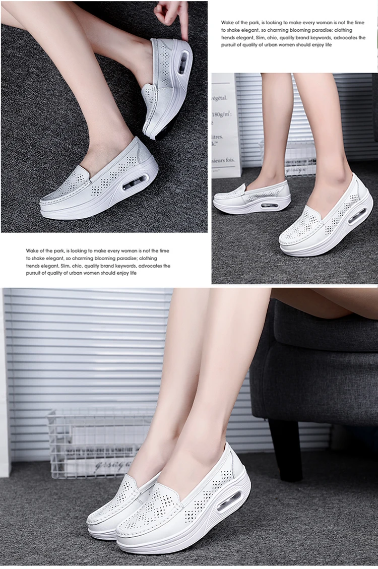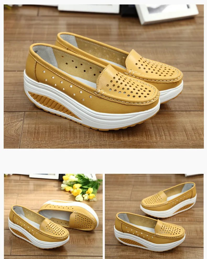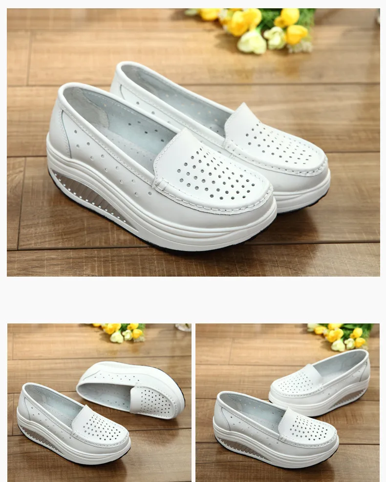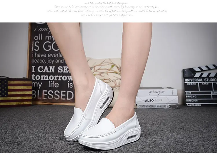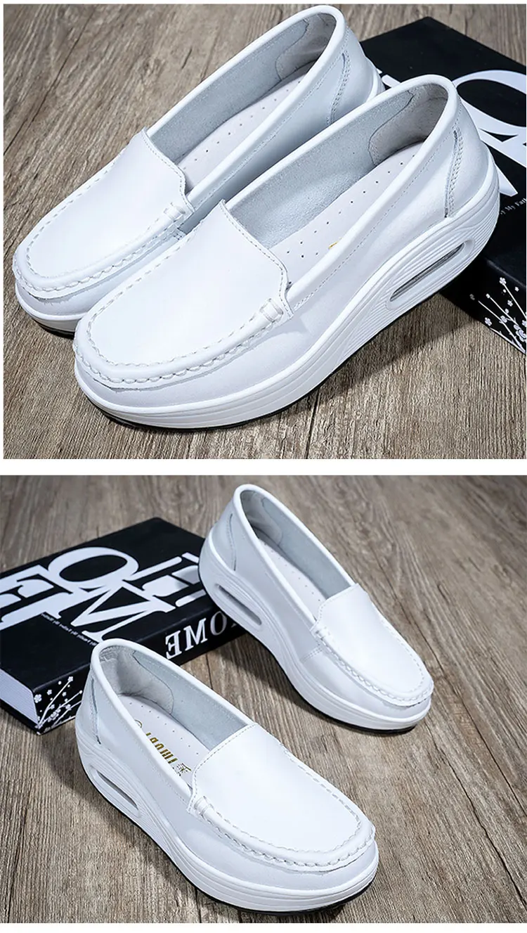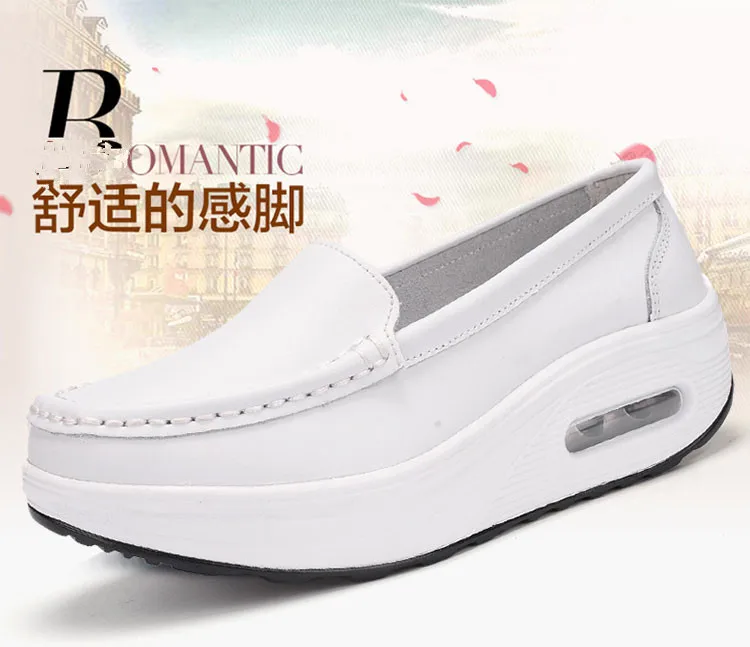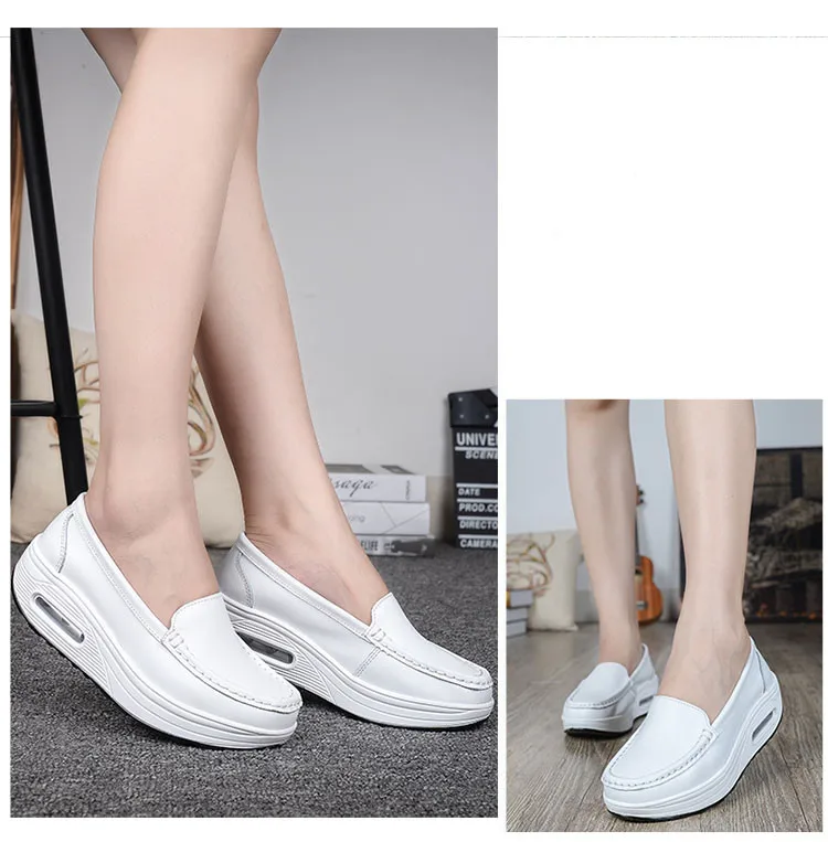 Women's shoes Spring autumn leather soft-soled work shoes women black thick-soled cushion shoes wedge single professional shoes